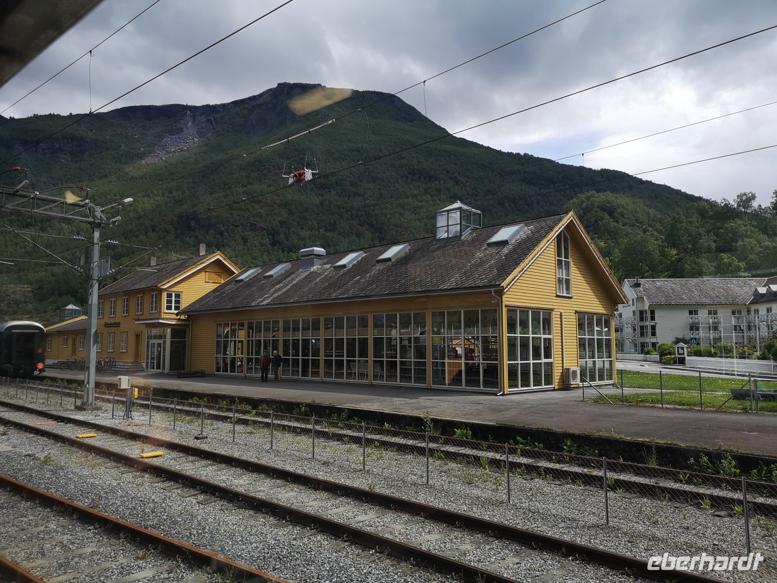 In Flam hatten wir noch genügend Zeit für persönliche Erkundigung vor Ort, schließlich befinden sich die wichtigen Gebäude alle auf ein paar m2 – Bahnhof, Bahnmuseum, ein Geschäft, mehreren Souvenirgeschäfte, Bäckerei und Brauerei. Ob man alles gesehen hat, bezweifele ich, weil wir, so wie viele chinesische Touristen, unsere Bahntour mitmachten. Auch den Wagon teilten wir mit etwas lauten Chinesen, die genauso begeistert waren wie wir über die Natur rings herum und der Umgebung dieser Strecke. Auch die Huldra mit ihrer Tanzeinlage nebst dem Kjosfossen fehlte nicht.