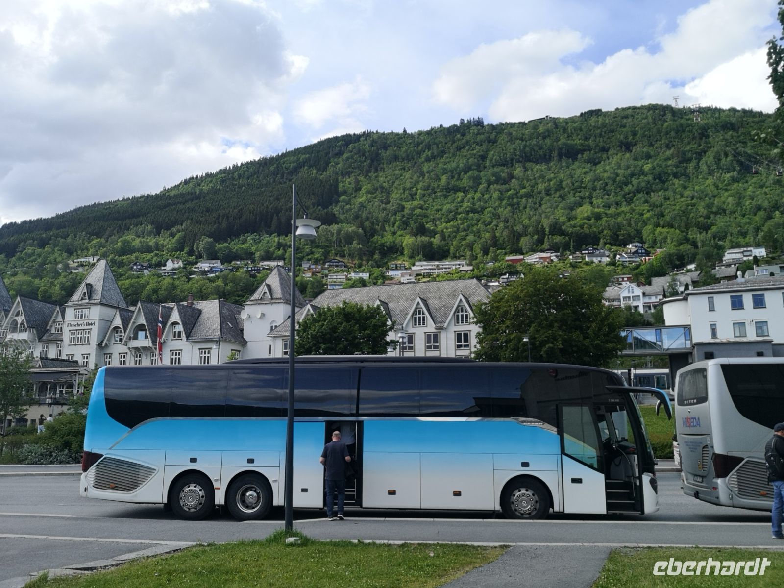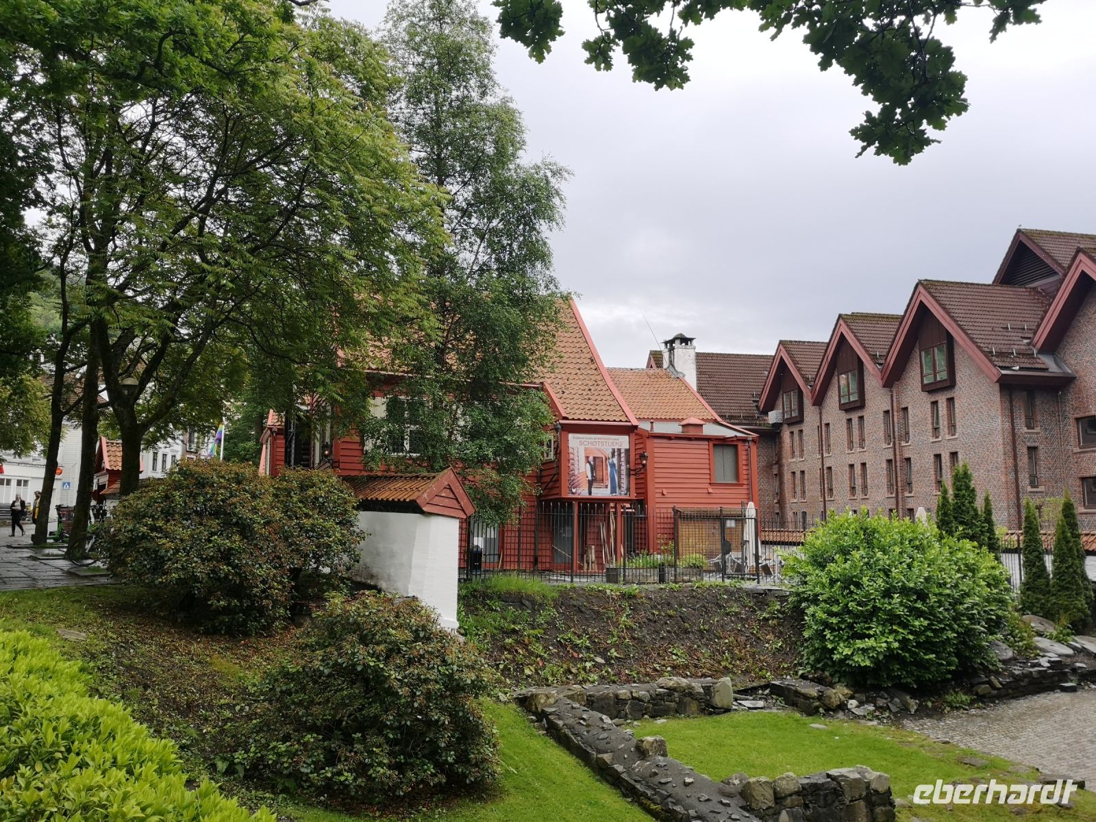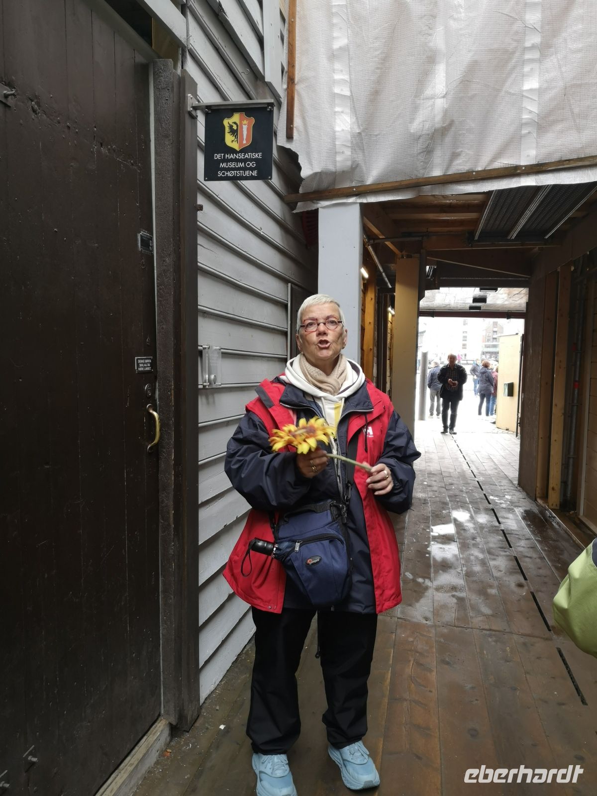 Mit der Bergenbahn kamen wir nach Voss, wo auf uns, genauso sicher wie das Amen in der Kirche, Jan mit seinem Bus wartete und uns schließlich beim heftigen Regenguss nach Bergen zu unserem Hotel brachte. Einige schafften es nach dem Abendessen noch mit der Floyenbahn hoch über die Stadt oder machten einfach einen ruhigen Spaziergang durch die, um dieser Zeit menschenlosen Stadt……….