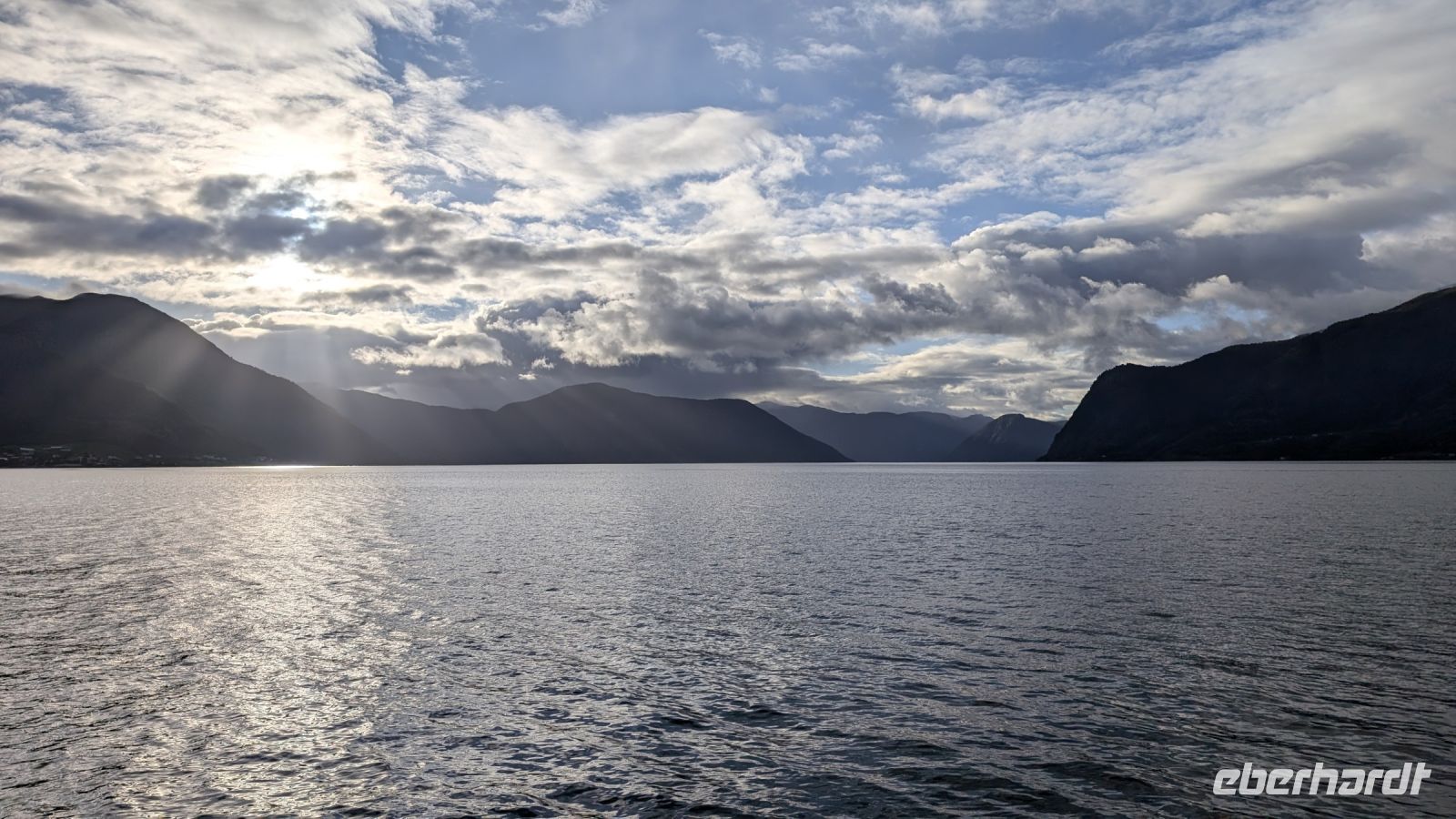 Unsere Elektrofähre Future of Norway glitt lautlos über den Fjord, der dem Gott des Handelns und des Segelns geweiht wurde.