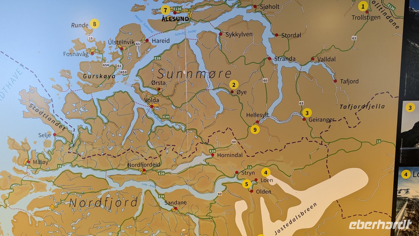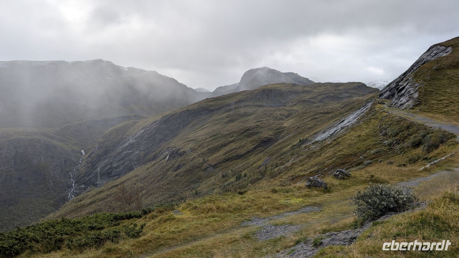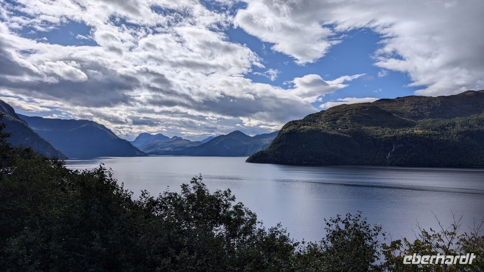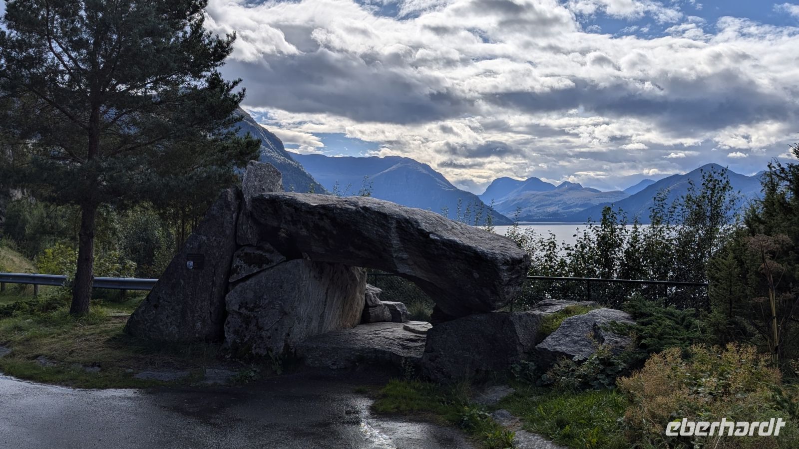 Leider wurde der Trollstigen wegen Steinschalg für das ganze Jahr gesperrt. Dies bescherte uns einen Umweg von etwa 150Km. Aber dafür wurden wir am Kokarsteinen mit einem herrlichen Ausblick auf den Storfjord belohnt.