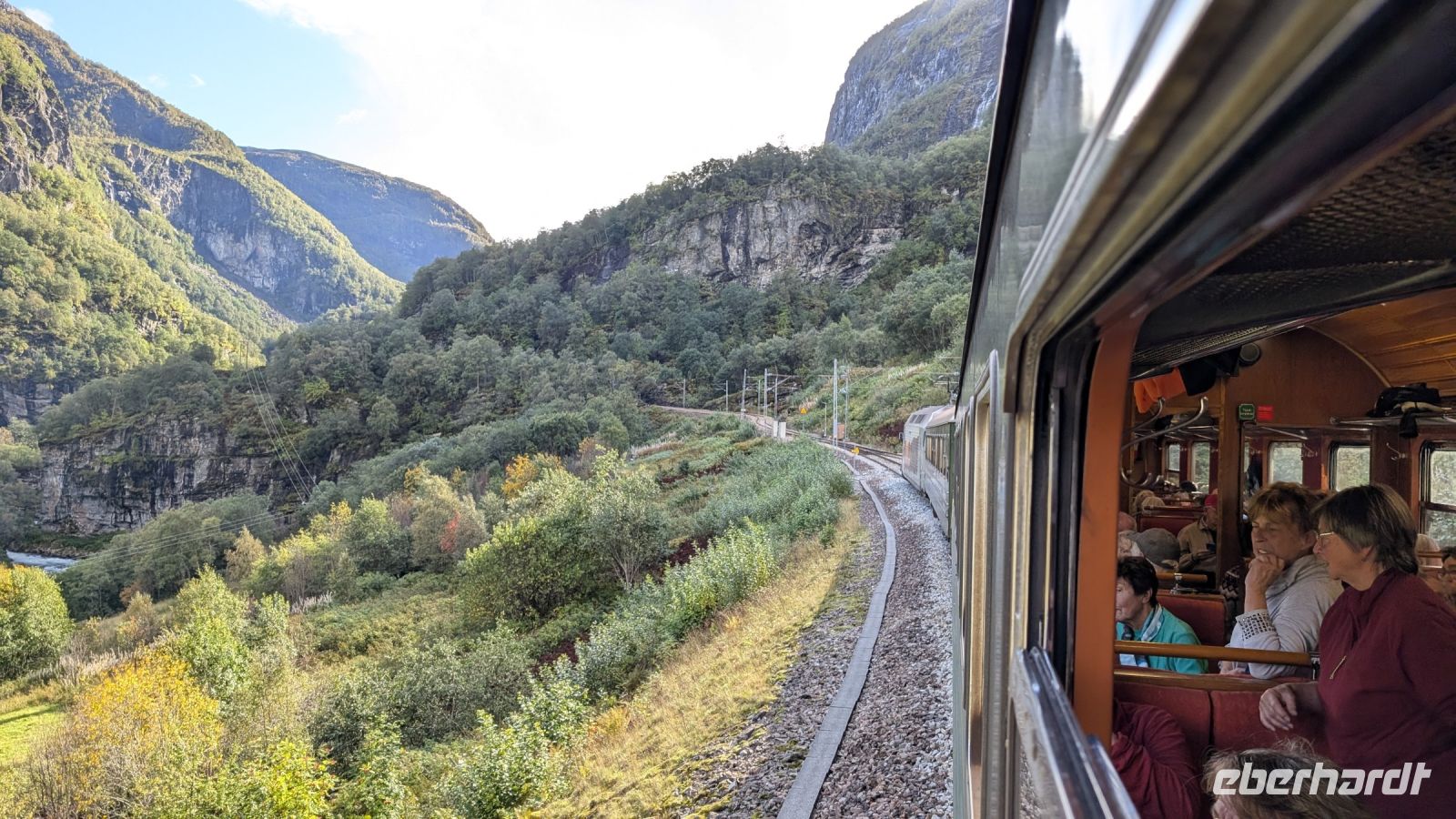 Auf eine der schönsten Bahnstrecken der Welt gings 900m hinauf nach Myrdal. Durch atemberaubende Landschaften, vorbei grandiosen Wasserfällen, den Serpentinen des Rallavegen hinauf zur Huldra, eine blonde Schönheit, die mit Ihrem Gesang versucht, ledige Männer in ihr Reich zu entführen.
