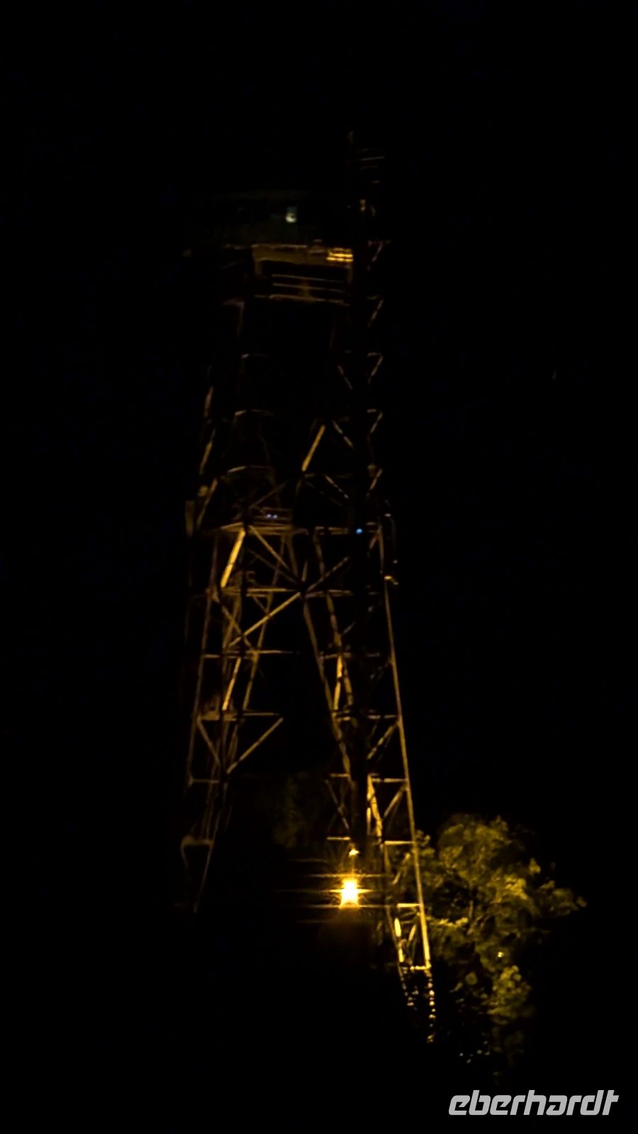 Stockfinstere Nacht, 2 kleine Augen blicken in die Dunkelheit.