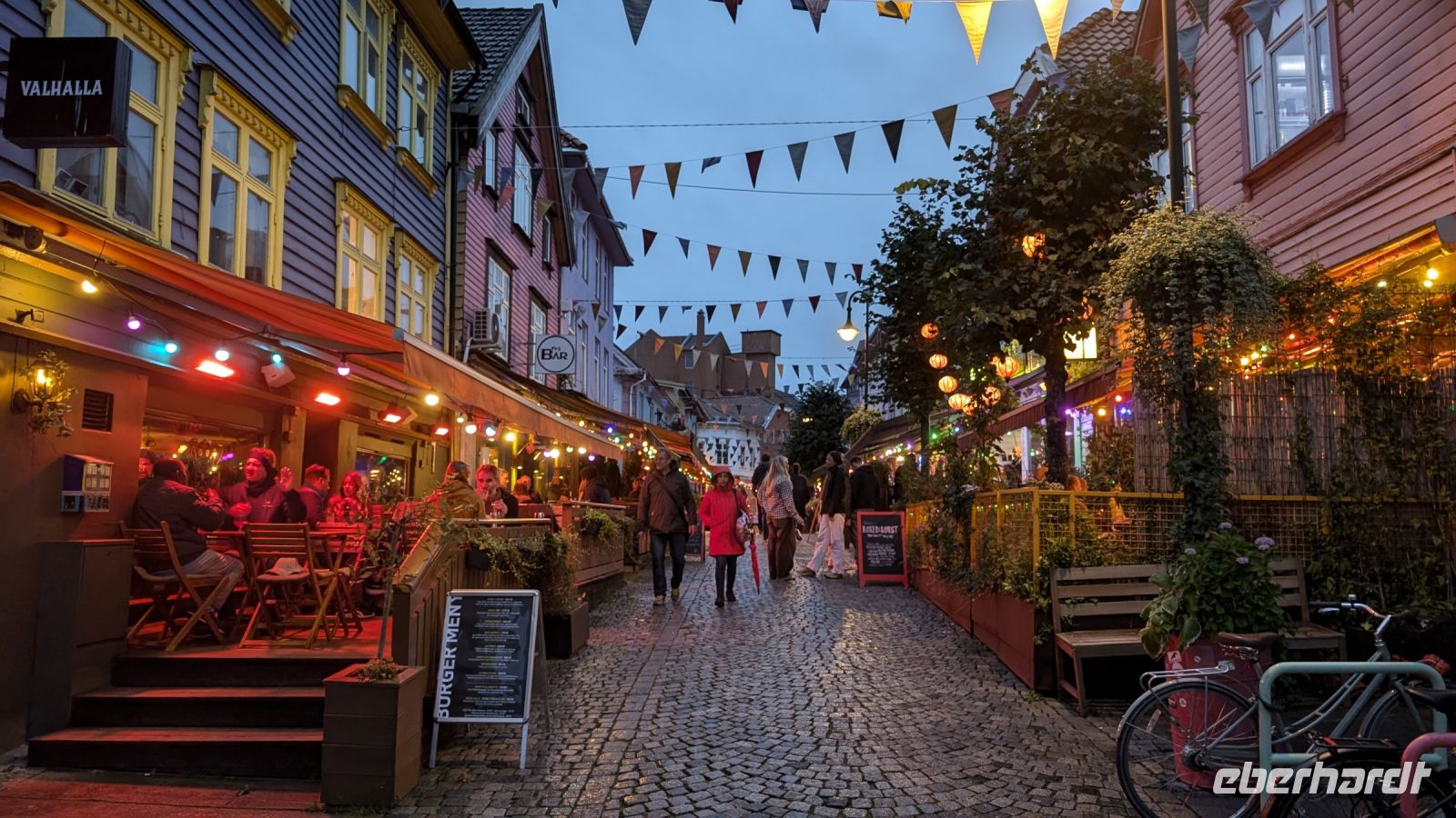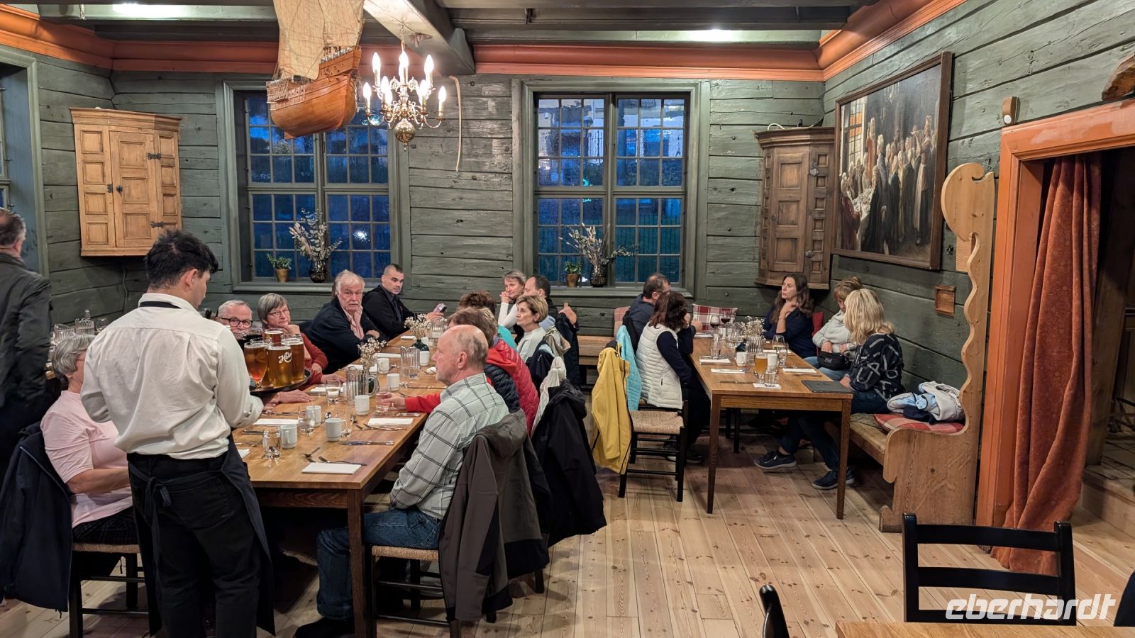 Das Essen war diesmal außerhalb, im Tracteursted bei den Bryggen. Das Ambiente des Restaurants entführte uns in jene Zeit der Hanse und der reichen Kaufleute.