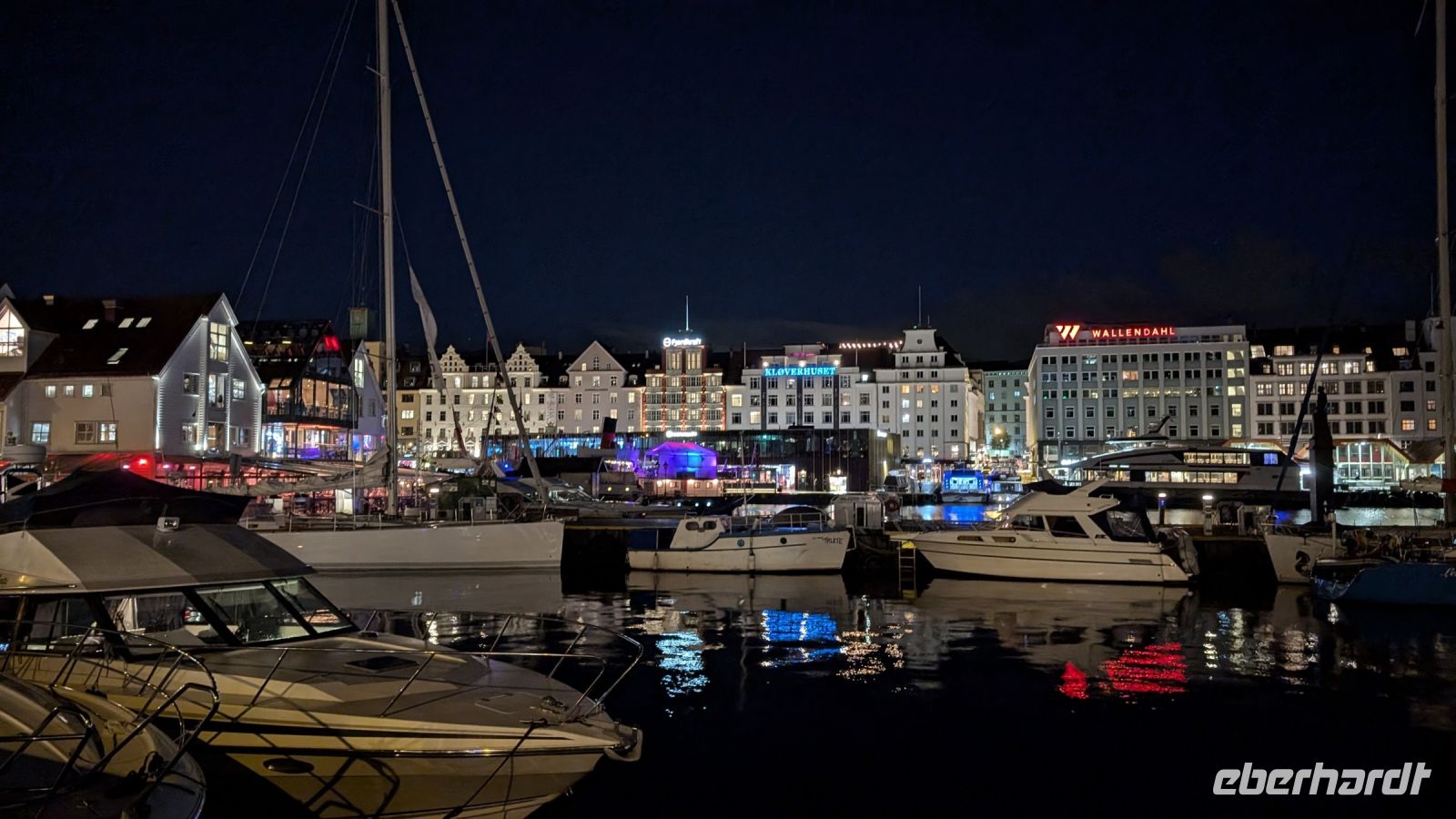 Der Tag klang mit einem edlen Buffet aus und der Abend begann mit einem Stadtspaziergang in das nächtliche Stavanger. Die bunte Straße und der lebhafte Fischmarkt. Samstag Abend, da ist immer was los.