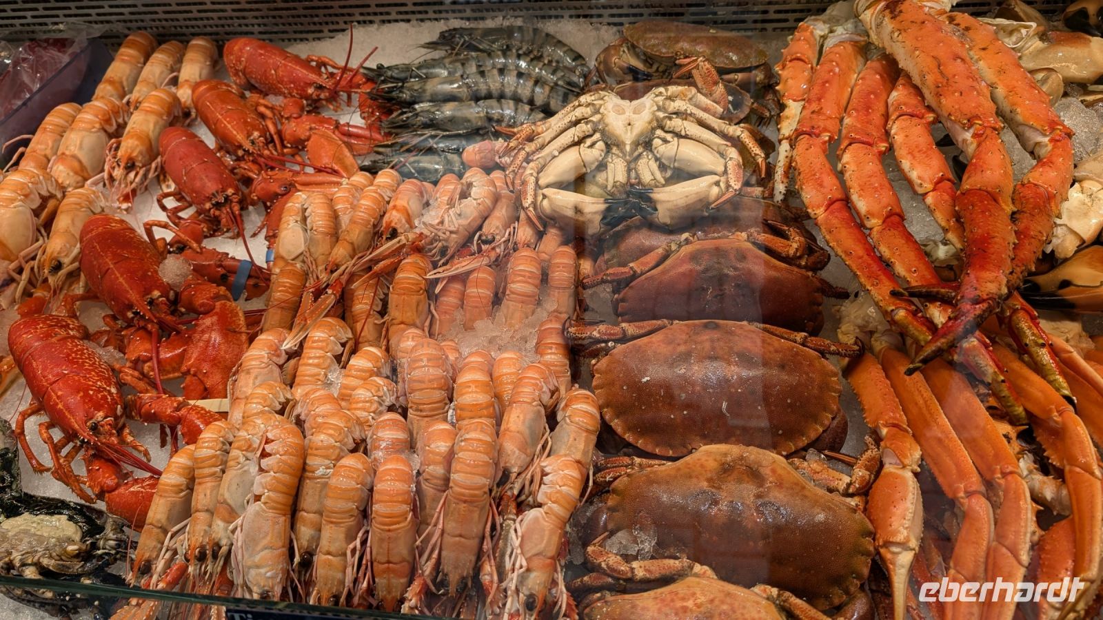 Rojenna zeigte uns am Morgen ihr Bergen, ihre Stadt umgeben von 7 Bergen. Teils mit dem Bus, teils zu Fuß. Am Fischmarkt endete die Füphrung und wer die Plätze kennt, weiß, wo es die beste Rentier- und Elchsalamai gibt. Ebenso den berühmten Braunkäse vom Bauern. Alles aus handwerklicher Herstellung, keine Industrieware.