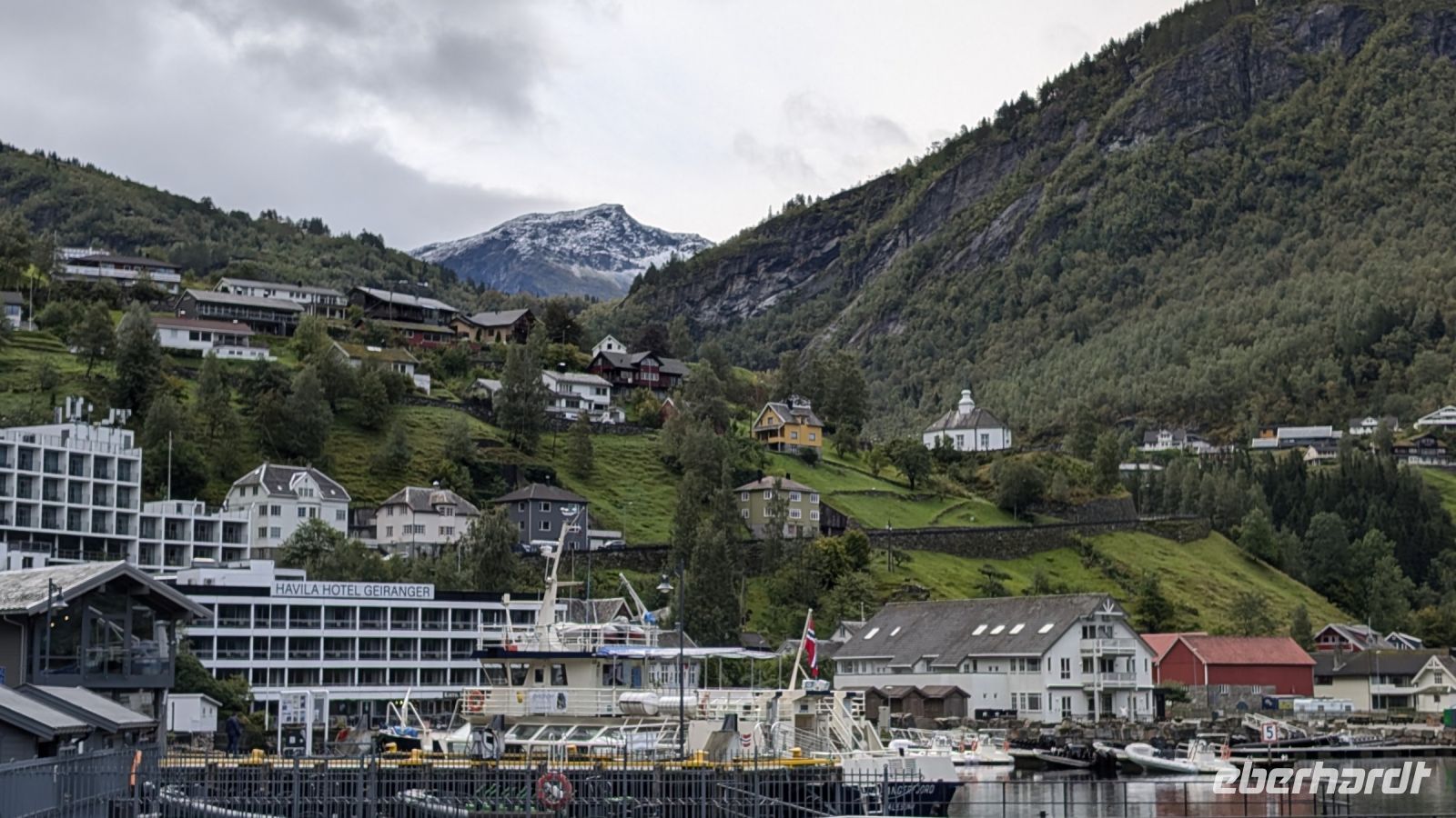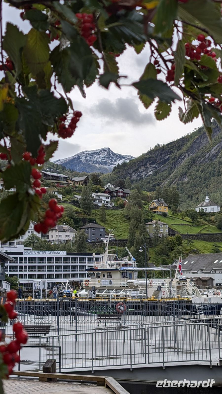 Wieder mal ein bißchen länger schlafen. Um 10.00 Uhr legte die Fähre nach Hellesylt ab. Da konnte man vorher noch einen Bummel durch Geiranger machen und etwas shoppen gehen.