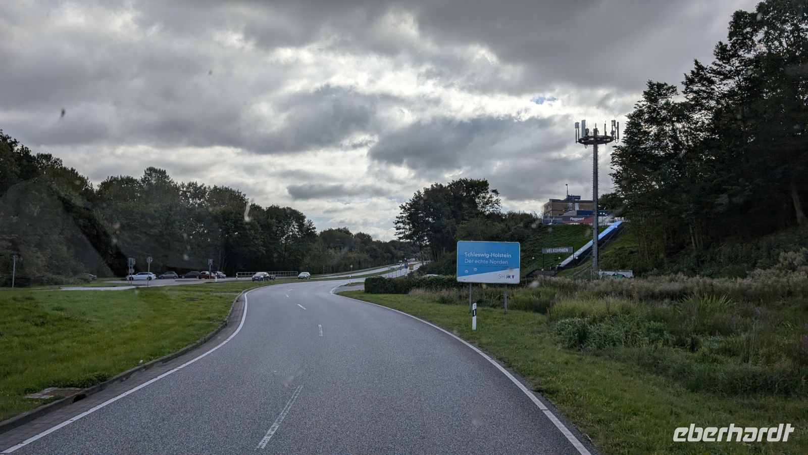 Baustelle in Kiel, Umleitungen und eine knappe Brückendurchfahrt mit abgesenktem Bus ermöglichte uns in letzter Sekunde, dass wir unsere Color Magic noch rechtzeitig erreichten.