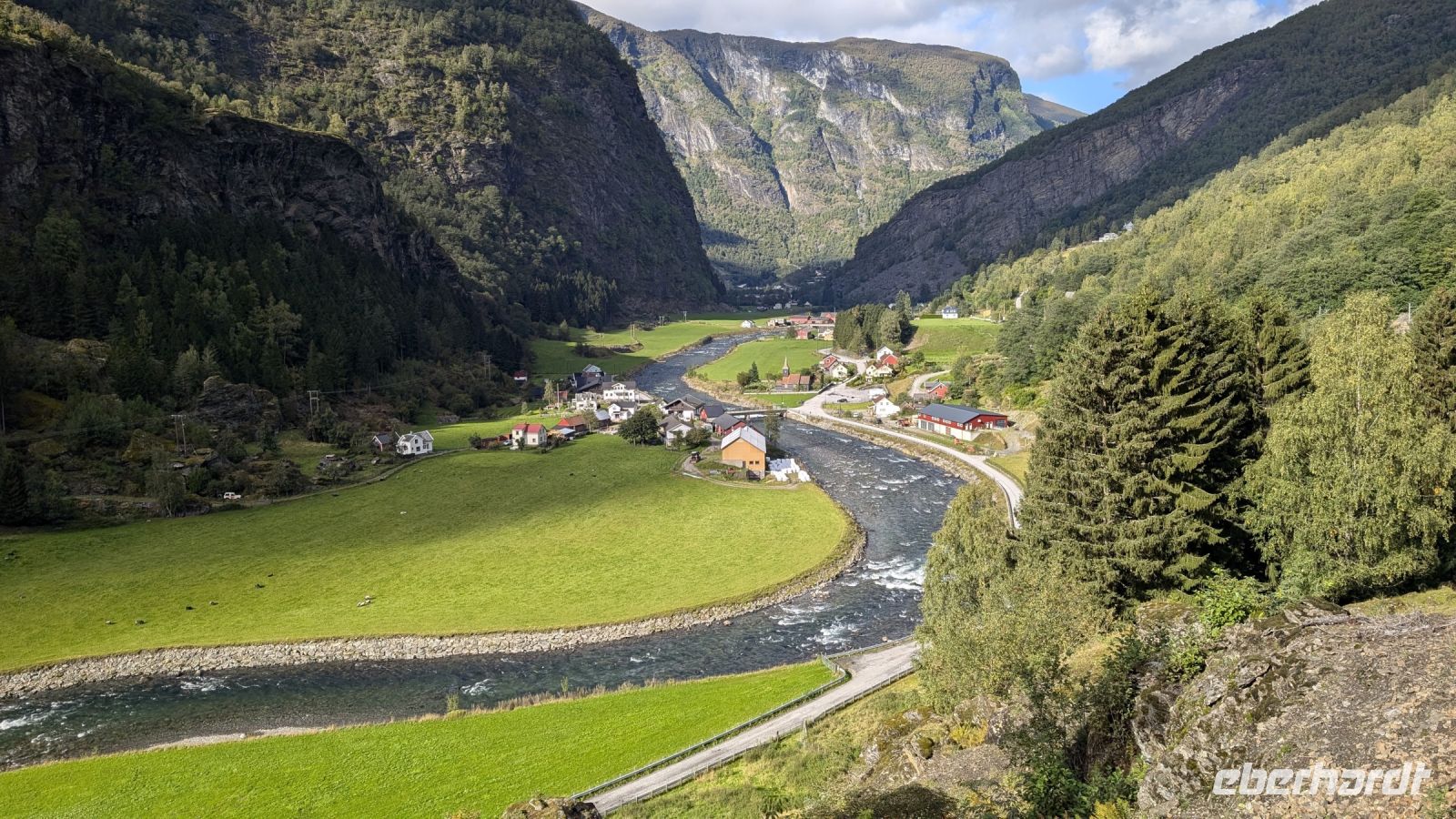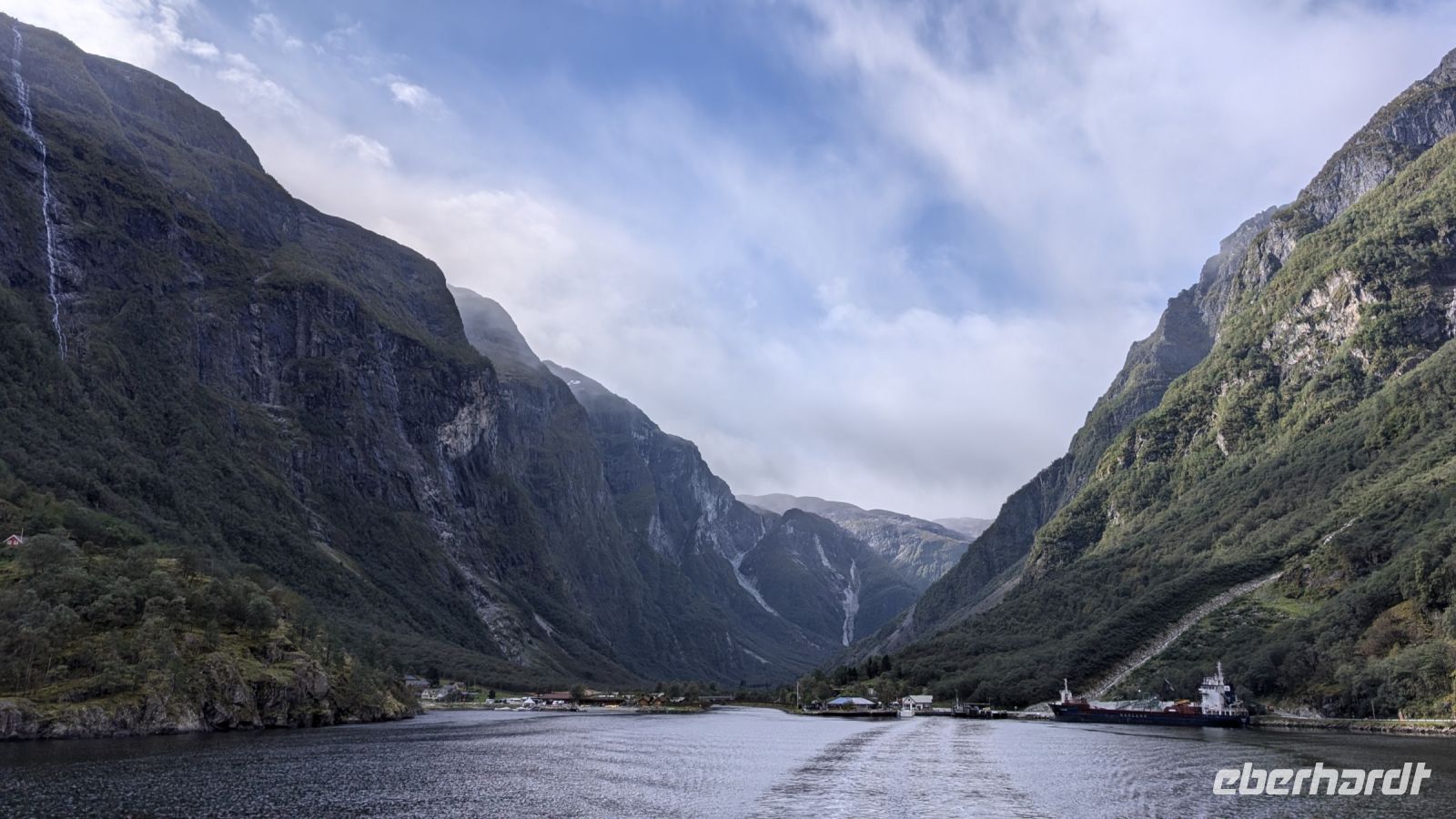 Übers Vikafjell erreichte wir das Wikingerdorf Gudvangen am Naeroyfjord. Punktlandung: ankommen, an Bord gehen, ablegen. Keine 10 Minuten. Jan erwartete uns 4 Stunden später in Voss.