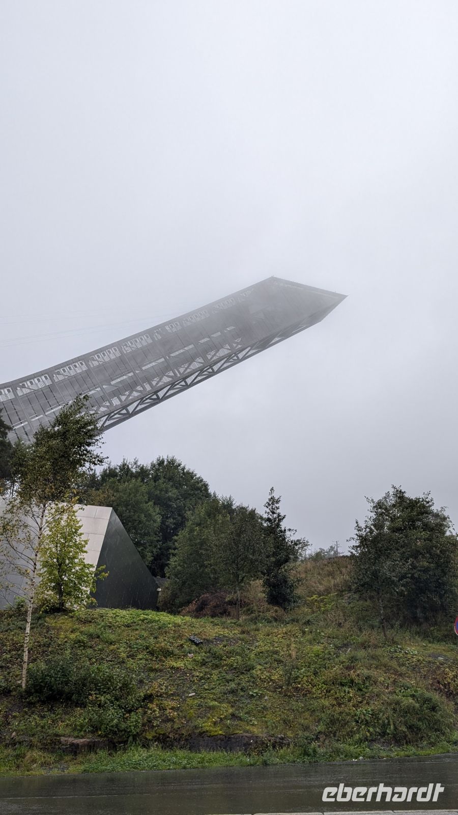 Der Holmenkollen lag im Nebel, aber dafür konnte man im Simulator einen Sprung über die Schanze machen und einen Abfahrtslauf vom Kvitfjell live miterleben.