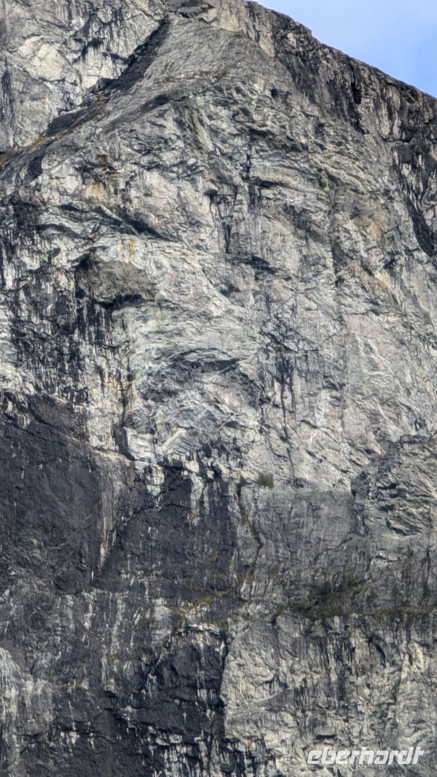 Uns er Augen wurden in den letzten Tagen schon sehr auf Trolle geschult und so entdeckten wir unzählige kuriose Gestalten in den Felswänden. Aber einer überragte alle. König Njord. Stolz auf seinen Thron sitzend bewacht er seinen Fjord.