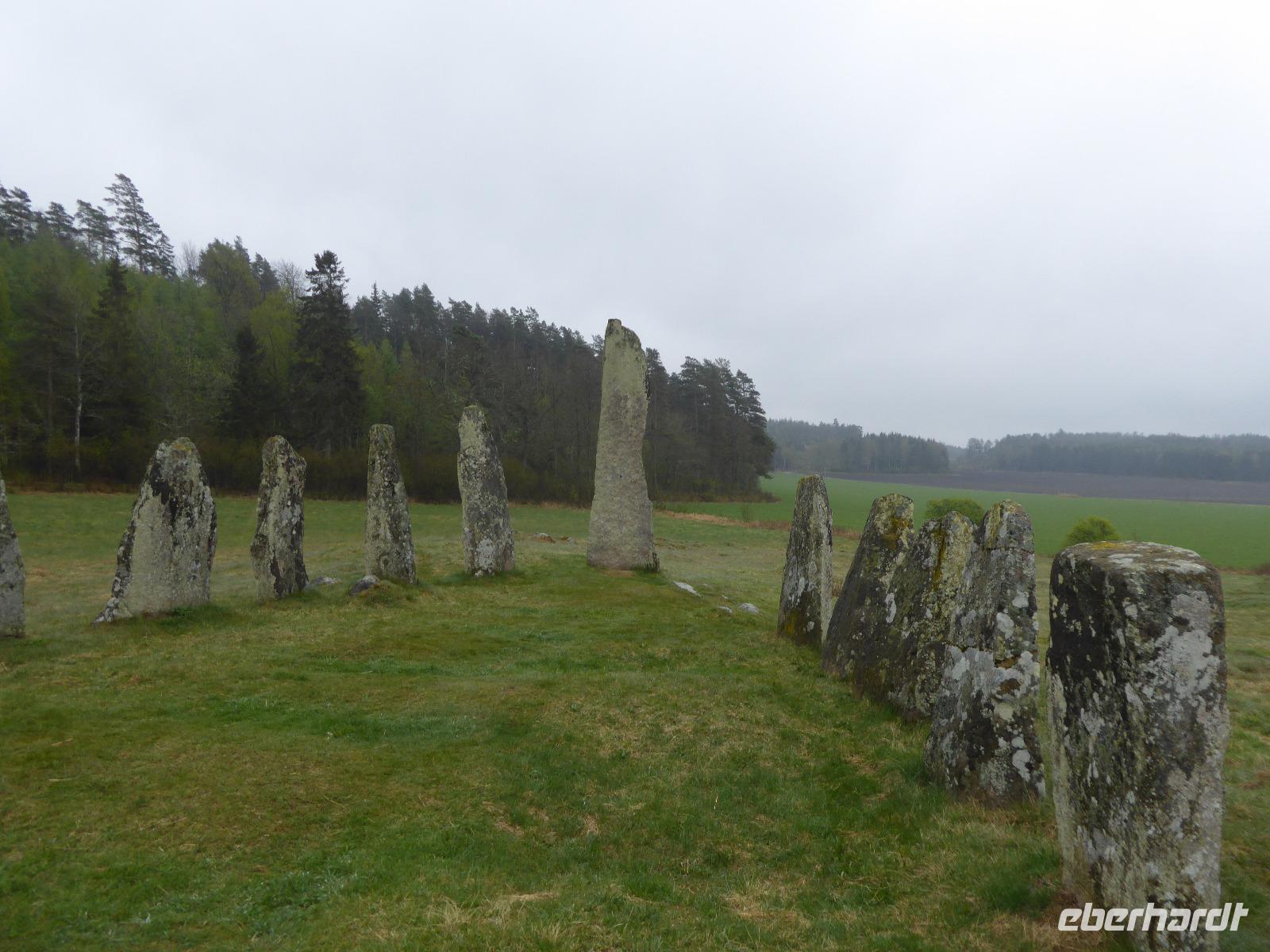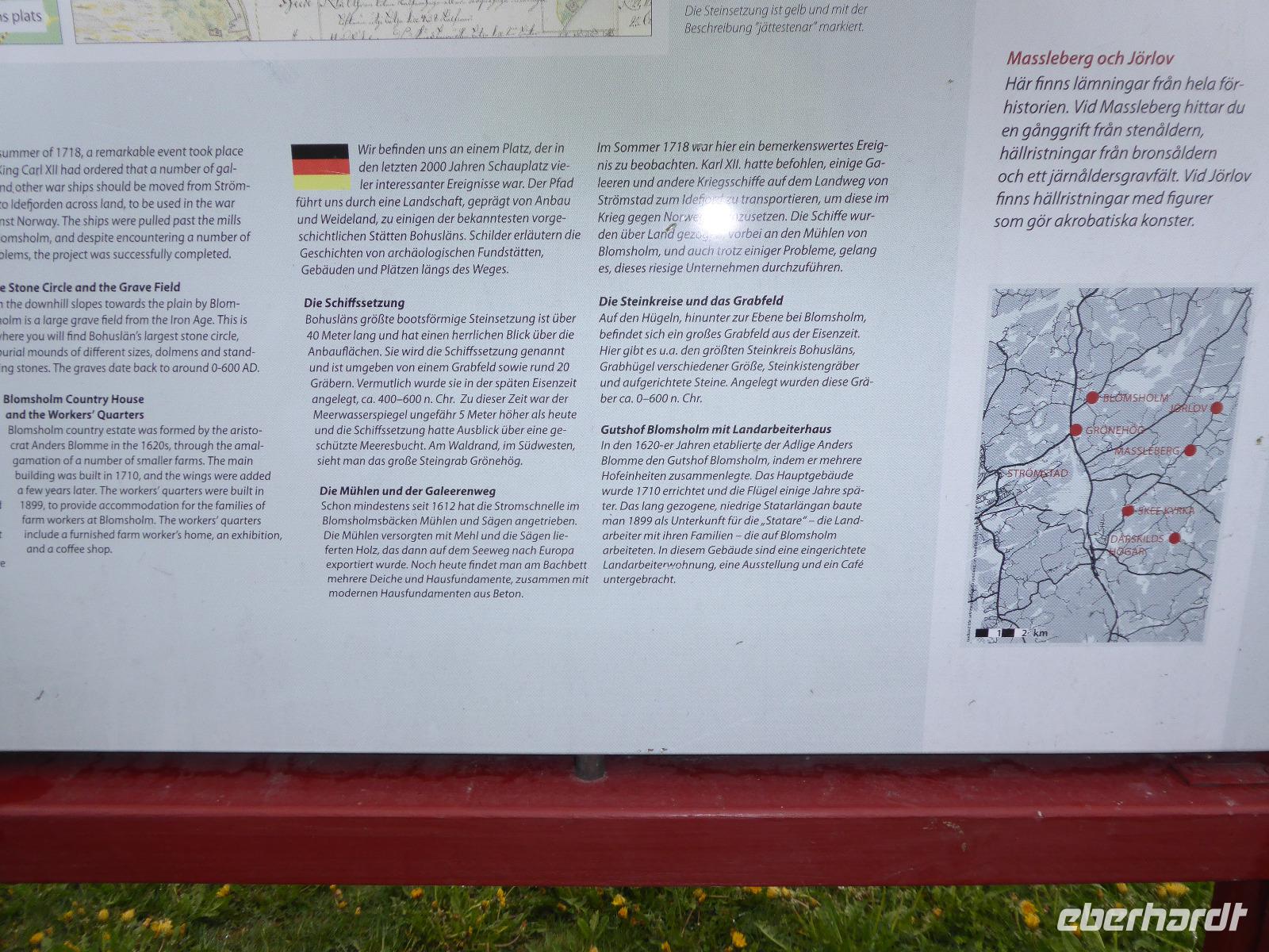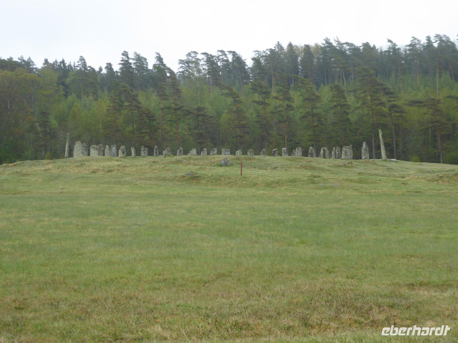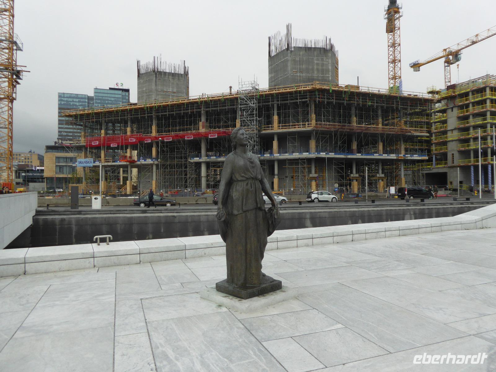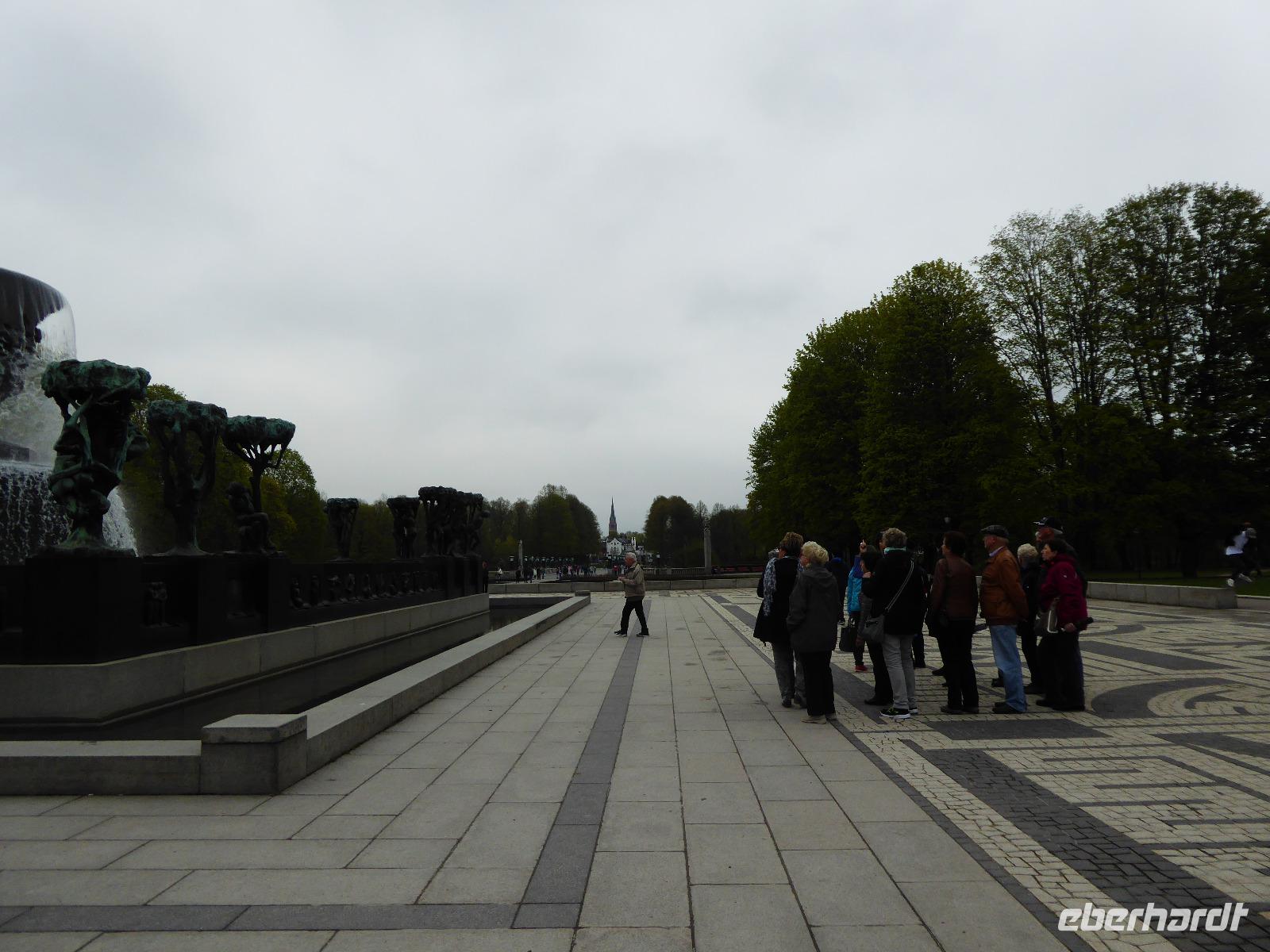 Ein überaus leckeres Frühstückbuffet erwartet uns am Morgen auf der Fähre. Pünktlich um 9.15 Uhr kommen wir in Göteborg an. Mit dem Bus durchqueren wir historische Provinzen Schwedens. Zunächst fahren wir durch Bohuslän. Für die Felsritzungen, die sich in und um Tanumshede befinden und zum Weltkulturerbe gehören, haben wir leider keine Zeit. Aber wir können uns diese auf Bildern anschauen. Interessant ist, dass die Region immer dann einen wirtschaftlichen Aufschwung erlebte, wenn es viele Heringe gab. Leider kam das nur alle paar hundert Jahre vor. Die größte Stadt der Region, Uddevalla, lassen wir rechts liegen. Jedoch wissen wir, dass die Stadt oft angegriffen und mehrmals von Feinden niedergebrannt wurde. Auch von der Geschichte des Volvo-Werks, dass ein einmaliges soziales Experiment war, hören wir. Am Gullmansfjord fahren wir vorbei und wissen nun, dass sich hier eine der ältesten Meeresforschungsstationen der Welt befindet. Die nächste Region, die wir durchqueren, ist Dalsland. Über 5000 archäologische Funde gab es hier. Nun erreichen wir Blomsholm. Ein bisschen abenteuerlich gestaltet sich die Suche nach diesem frühgeschichtlichen Monument. Aber mit Hilfe von google finden wir es schließlich doch. Spannend sind die Geschichten, die sich um dieses Gräberfeld ranken. Erforscht ist es nicht. Vielleicht wurde hier ein Brautpaar begraben, vielleicht aber auch ein Wikingerkönig. Wer weiß. Unterwegs nach Oslo stillen wir unseren inzwischen recht kräftigen Hunger mit leckeren Wienern und Bockwurst vom Bus. Gegen 14.30 Uhr kommen wir in Oslo an. Schneller als gedacht, findet sich auch unsere Stadtführerin Stine ein. Sie zeigt uns Oslo bei einer Rundfahrt durch die Stadt. An der Oper, die durch Angela Merkels Dekolleté bekannt wurde, legen wir einen Stopp ein. Weiter fahren wir zum Holmenkollen, wo sich Wagemutige an einem Seil in die Tiefe stürzen. Ein kollektiver Aufschrei erfolgt, als sich sogar ein Typ mit dem Fallschirm in die Tiefe stürzt. Wir unternehmen einen Spaziergang durch den Vigelandpark. Beeindruckend sind hier die ausdrucksstarken Figuren, die den Lauf des Lebens versinnbildlichen. Müde und geschafft, aber mit vielen neuen Eindrücken, kommen wir am Abend im Hotel Fornebu an. Das Drei-Gänge-Menü, das uns serviert wird, schmeckt vorzüglich, das Fleisch ist butterzart. Nur einen Wermutstropfen müssen wir schlucken, die Getränke beim Abendessen können nur mit Kreditkarte bezahlt werden. Naja, dann trinken wir eben Gänsewein, der ist inklusive.