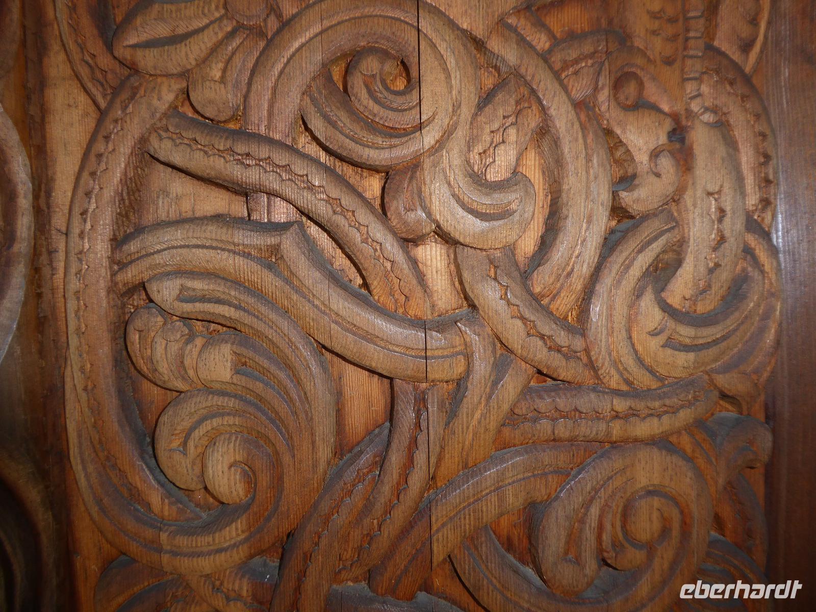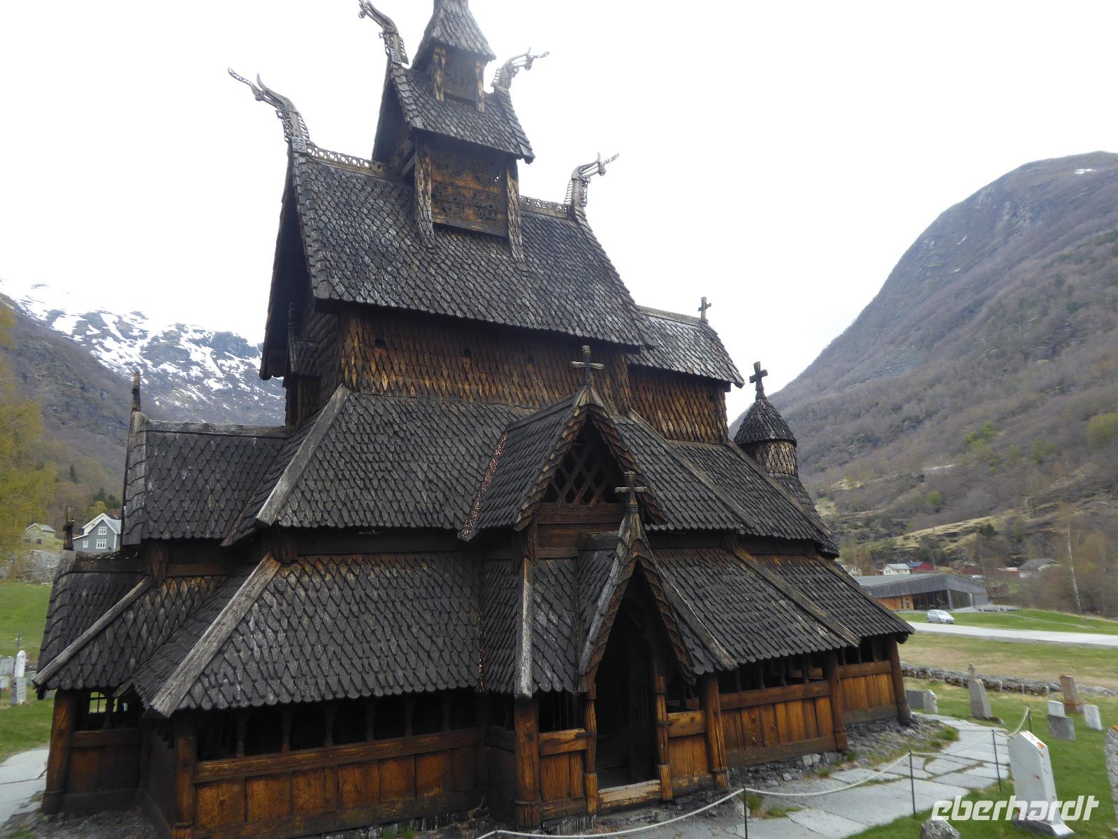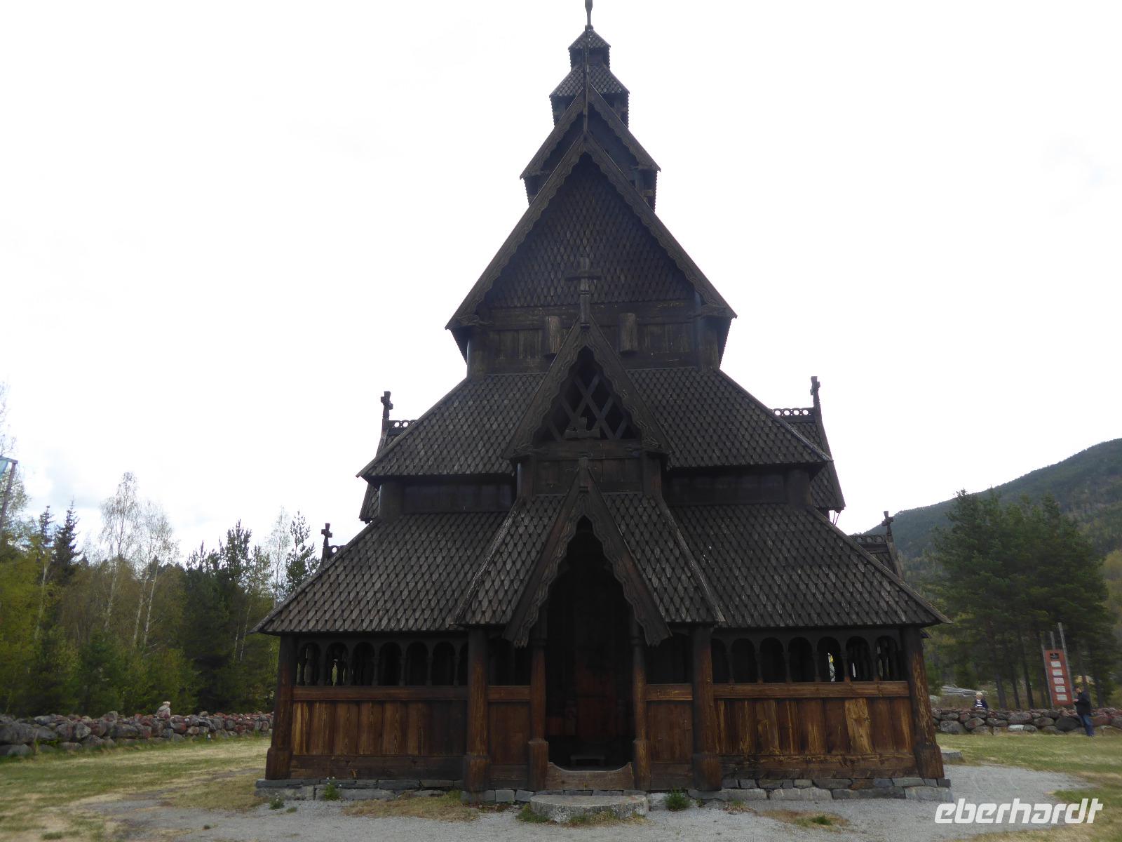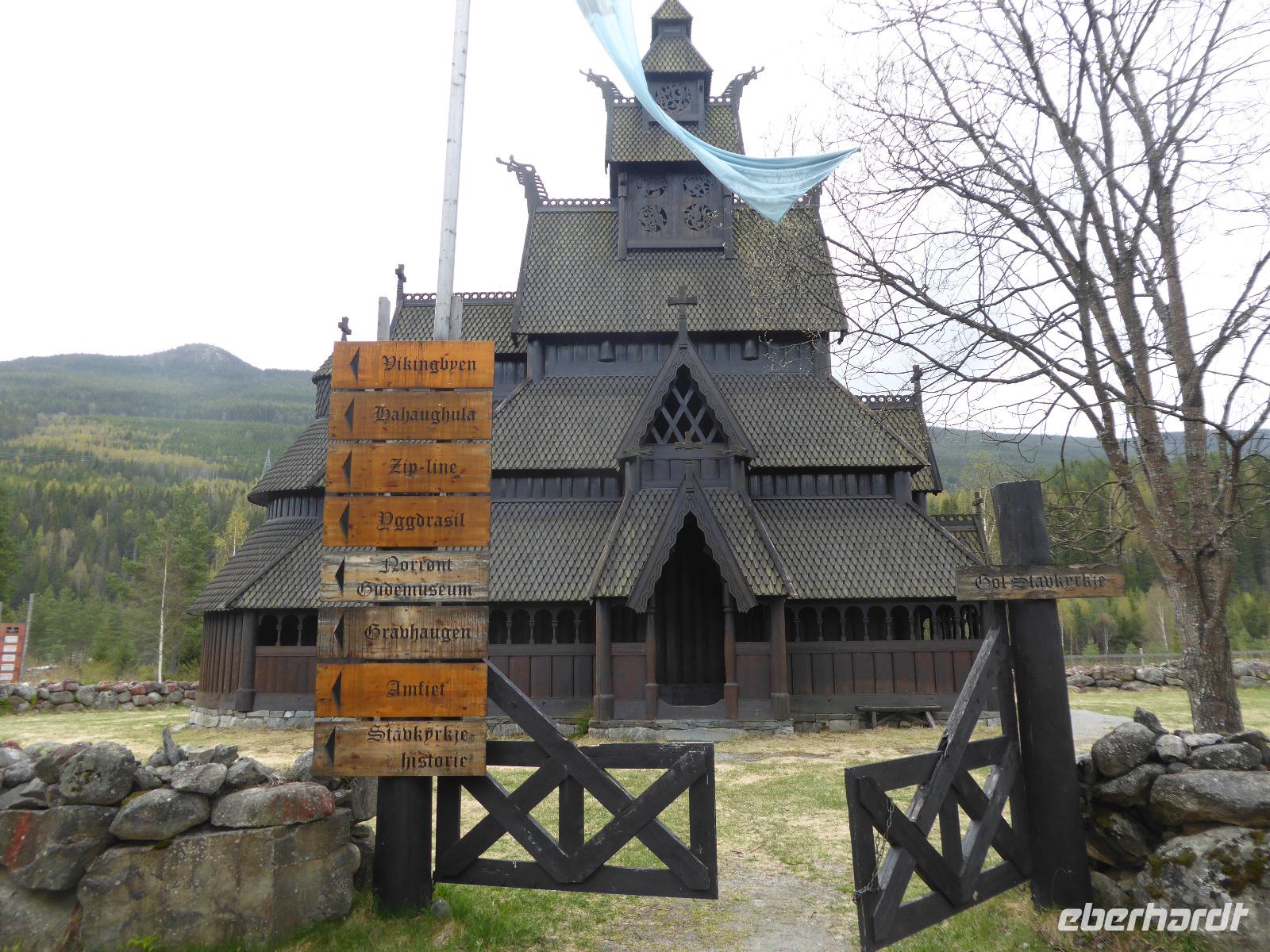 Nach einem leckeren Frühstücksbuffet starten wir kurz vor Neun. Unsere Fahrt führt uns nördlich aus Oslo heraus. Wir streifen den Tyrifjorden, den größten Binnensee Norwegens. Vorbei an Honefoss, dem Glasbläserparadies Norwegens, geht es weiter bis zum Hallingdal. Die einzigartige Natur, die uns umgibt, wird von Vivaldis Violinenkonzert Vier Jahreszeiten untermalt. In Gol besuchen wir eine Stabkirche. Allerdings handelt es sich hier um einen Nachbau. Das Original befindet sich in Oslo im Nationalmuseum. Eine Stunde später kommen wir nach Borgund. Nach einem kleinen Abstecher durch den Ort, wo wir feststellen, dass sich die Stabkirche dort nicht befindet, kommen wir wenig später am Besucherzentrum an. Nun stillen wir erst einmal die irdischen Bedürfnisse. Es gibt etwas zu Essen und ein WC. Danach steht uns wieder der Sinn nach Kultur und Geschichte. Die Stabkirche von Borgund ist einzigartig. Sie gehört zu den Hauptattraktionen Norwegens. In der Hochsaison müssen Besucher wegen Überfüllung lange auf Einlass warten. Wir heute nicht, denn wir sind ganz allein hier. Wahrscheinlich wurde die Stabkirche Ende des 12. Jahrhunderts gebaut als noch heidnischer Glaube und Christentum nebeneinander existierten. Man bekommt eine Gänsehaut vom Anblick dieses wunderschönen Gebäudes. Und wenn man hineingeht, stehen die Nackenhaare zu Berge, so viel Geschichte atmet diese kleine Kirche. Was sich hier wohl alles angespielt hat? Die Runen der Wikinger müssen wir uns zeigen lassen, trotz Beschreibung sind sie so versteckt, dass wir sie nicht finden können. Der junge Guide zeigt uns gleich noch die vielen Einkerbungen in der Kirchentür. Diese sind aber keinesfalls auf die Wikinger zurückzuführen, sondern stammen von Bauern, die hier jahrhundertelang den Gottesdienst besuchten. Das Holz für die Kirche wurde nachweislich im Winter 1180 geschlagen. Man vermutet, dass die Kirche kurz danach errichtet wurde. Erbauer waren fahrende Handwerkergruppen, die viel Können und Erfahrungen mitbrachten. Die meisten Stabkirchen in Norwegen wurden um 1130 bis 1350 erbaut. Dann kam die Pest und die Bautätigkeit wurde beendet. In anderen europäischen Ländern gab es ähnliche Kirchen, aber nur in Norwegen sind sie erhalten geblieben. Einst waren es mindestens eintausend, 28 existieren noch. Die Stabkirche von Borgund hat ohne größere Änderungen überlebt. Warum? Sie wurde auf einem steinernen Sockel gebaut. So kam sie nicht in Berührung mit feuchtem Boden und faulte nicht.