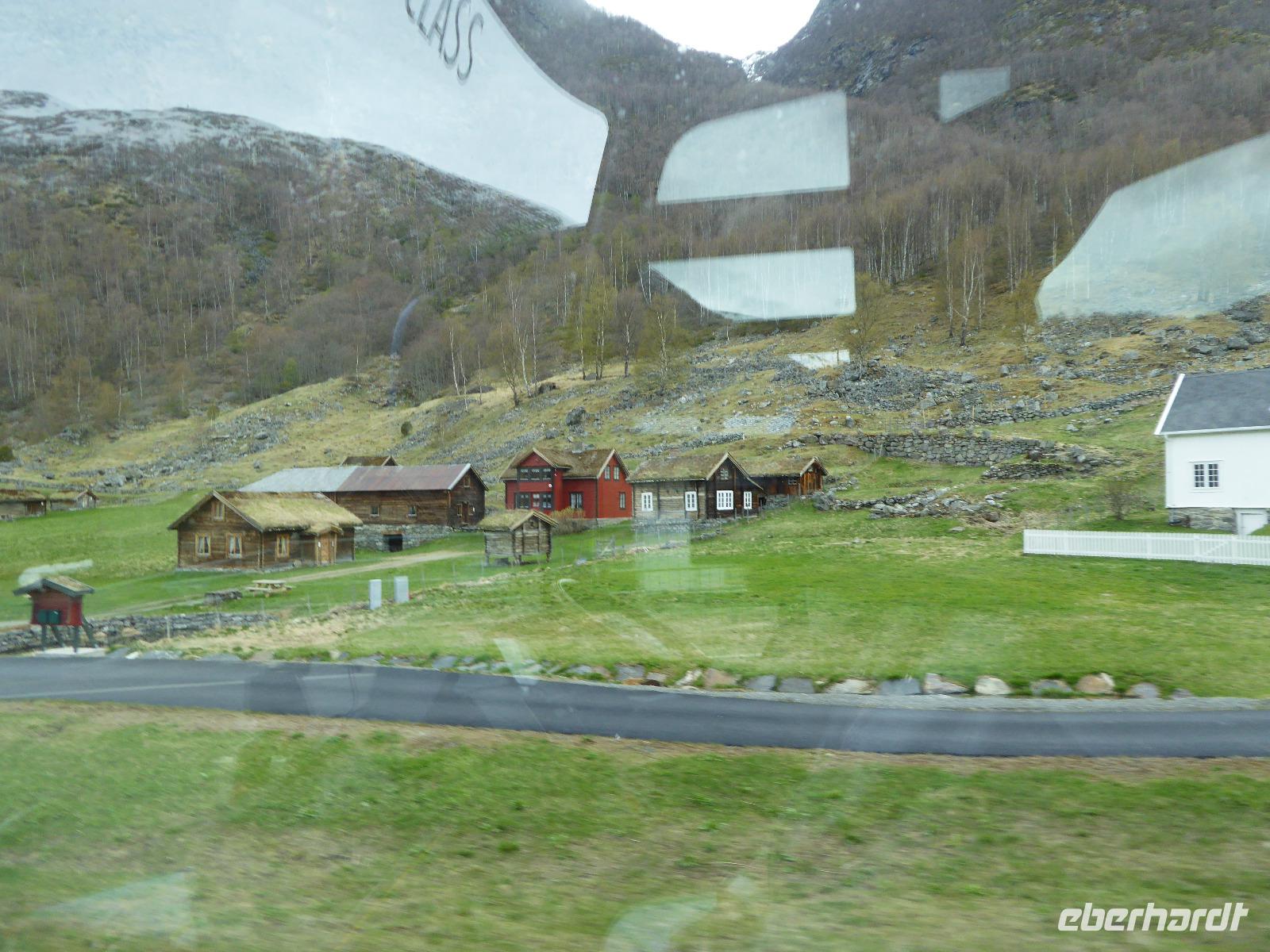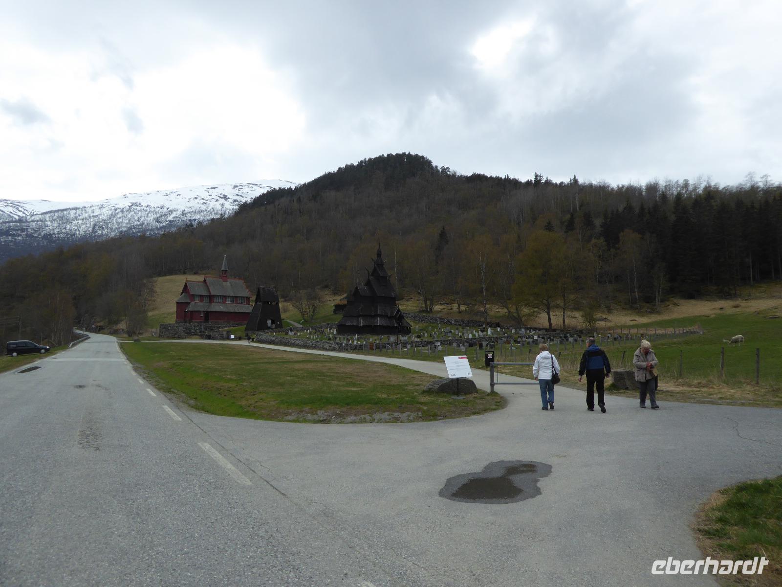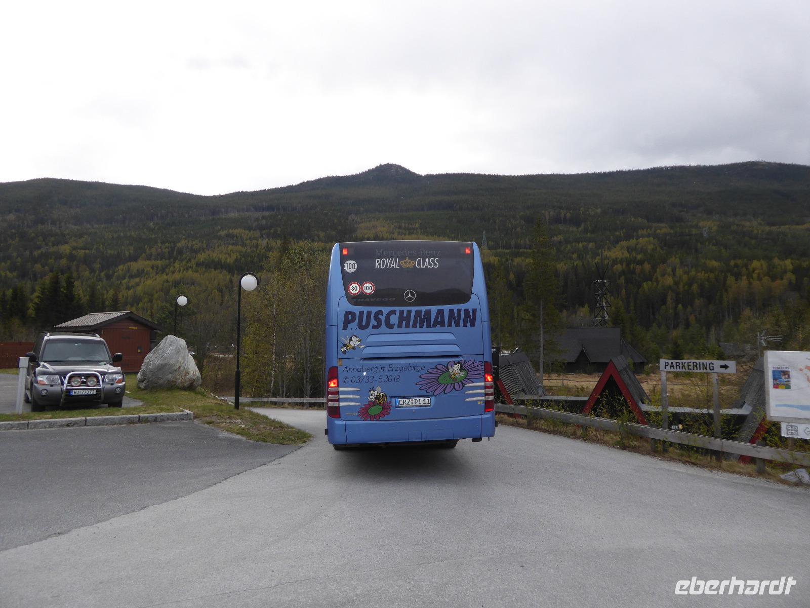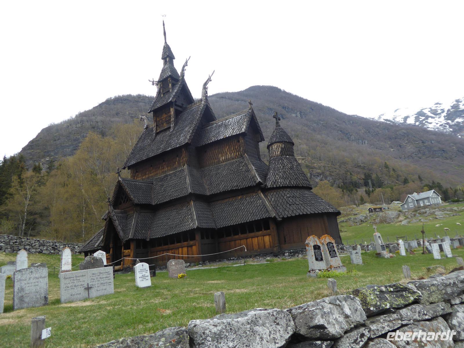 Nach einem leckeren Frühstücksbuffet starten wir kurz vor Neun. Unsere Fahrt führt uns nördlich aus Oslo heraus. Wir streifen den Tyrifjorden, den größten Binnensee Norwegens. Vorbei an Honefoss, dem Glasbläserparadies Norwegens, geht es weiter bis zum Hallingdal. Die einzigartige Natur, die uns umgibt, wird von Vivaldis Violinenkonzert Vier Jahreszeiten untermalt. In Gol besuchen wir eine Stabkirche. Allerdings handelt es sich hier um einen Nachbau. Das Original befindet sich in Oslo im Nationalmuseum. Eine Stunde später kommen wir nach Borgund. Nach einem kleinen Abstecher durch den Ort, wo wir feststellen, dass sich die Stabkirche dort nicht befindet, kommen wir wenig später am Besucherzentrum an. Nun stillen wir erst einmal die irdischen Bedürfnisse. Es gibt etwas zu Essen und ein WC. Danach steht uns wieder der Sinn nach Kultur und Geschichte. Die Stabkirche von Borgund ist einzigartig. Sie gehört zu den Hauptattraktionen Norwegens. In der Hochsaison müssen Besucher wegen Überfüllung lange auf Einlass warten. Wir heute nicht, denn wir sind ganz allein hier. Wahrscheinlich wurde die Stabkirche Ende des 12. Jahrhunderts gebaut als noch heidnischer Glaube und Christentum nebeneinander existierten. Man bekommt eine Gänsehaut vom Anblick dieses wunderschönen Gebäudes. Und wenn man hineingeht, stehen die Nackenhaare zu Berge, so viel Geschichte atmet diese kleine Kirche. Was sich hier wohl alles angespielt hat? Die Runen der Wikinger müssen wir uns zeigen lassen, trotz Beschreibung sind sie so versteckt, dass wir sie nicht finden können. Der junge Guide zeigt uns gleich noch die vielen Einkerbungen in der Kirchentür. Diese sind aber keinesfalls auf die Wikinger zurückzuführen, sondern stammen von Bauern, die hier jahrhundertelang den Gottesdienst besuchten. Das Holz für die Kirche wurde nachweislich im Winter 1180 geschlagen. Man vermutet, dass die Kirche kurz danach errichtet wurde. Erbauer waren fahrende Handwerkergruppen, die viel Können und Erfahrungen mitbrachten. Die meisten Stabkirchen in Norwegen wurden um 1130 bis 1350 erbaut. Dann kam die Pest und die Bautätigkeit wurde beendet. In anderen europäischen Ländern gab es ähnliche Kirchen, aber nur in Norwegen sind sie erhalten geblieben. Einst waren es mindestens eintausend, 28 existieren noch. Die Stabkirche von Borgund hat ohne größere Änderungen überlebt. Warum? Sie wurde auf einem steinernen Sockel gebaut. So kam sie nicht in Berührung mit feuchtem Boden und faulte nicht.