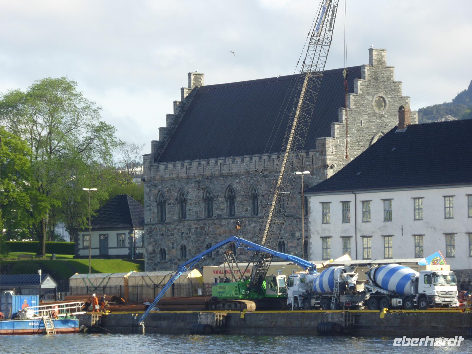 In der regenreichsten Stadt Europas scheint heute die Sonne, es sind 13 Grad. Martin, unser Stadtführer, holt uns am Hotel ab. Nachdem wir die Koffer geladen haben, spazieren wir zum Hafen. Von hier aus haben wir einen schönen Blick auf die Festung und den Krönungspalast. Originale sind das nicht mehr, sondern Nachbauten von 1964. Warum ist das so? 1944 lag ein deutsches Schiff, vollbeladen mit Munition, im Hafen. Die Deutschen planten, von Nordnorwegen aus, Murmansk anzugreifen. Jedoch hatte ihr Schiff vor Bergen eine Havarie. Da die Behörden nichts von der gefährlichen Fracht ahnten, ließen sie das Schiff in den Hafen einlaufen. Bei Schweißarbeiten wurde dann durch Funkenflug eine Explosion ausgelöst, die alle Häuser, inklusive der Festung, zerstörte. Bei unserer Fahrt durch Bergen zeigt uns Martin das Altersheim für Seefahrer, die Frederiksburg, den Galgenberg und vielen andere historische Gebäude und Plätze. Ein Wunder, dass überhaupt noch etwas zu sehen ist, denn 34 Großfeuer zerstörten in 900 Jahren mehrfach die Stadt. Interessant ist auch, warum hier so viele Elektroautos zu sehen sind. Der Grund dafür ist zum Beispiel die vorhandene Infrastruktur, was heißt, es gibt sowohl in den Städten als auch unterwegs ausreichend Ladestationen mit Schnell-Ladeplätzen. Der Strompreis ist außerordentlich günstig und 2012 wurde von der Regierung beschlossen, Elektroautos zu fördern, in dem den Besitzern Privilegien eingeräumt wurden. So brauchen diese keine KFZ-Steuer zu bezahlen, keine Parkgebühren, keine Maut und sie dürfen Bus- und Taxispuren benutzen. Wir sehen auch die königliche Residenz, in der königliche Familie bei ihren Besuchen in Bergen wohnt. Die Königsfamilie ist wegen ihrer Volksnähe äußerst beliebt. Im Stadtviertel Brüggen verlassen wir den Bus und gehen zu Fuß weiter. Sehr beeindruckend sind die Handelshäuser, die unter dem Schutz der UNESCO stehen. Nun fahren wir zum Fischmarkt. Dort können wir uns kulinarisch versorgen, bevor wir an Bord der Fjordline gehen. Traumhaft ist die Ausfahrt aus Bergen bei schönstem Sonnenschein.