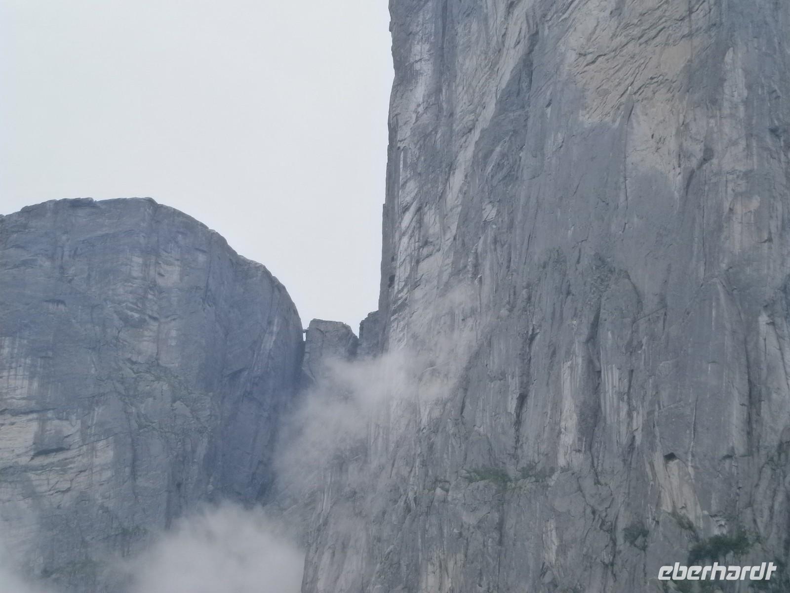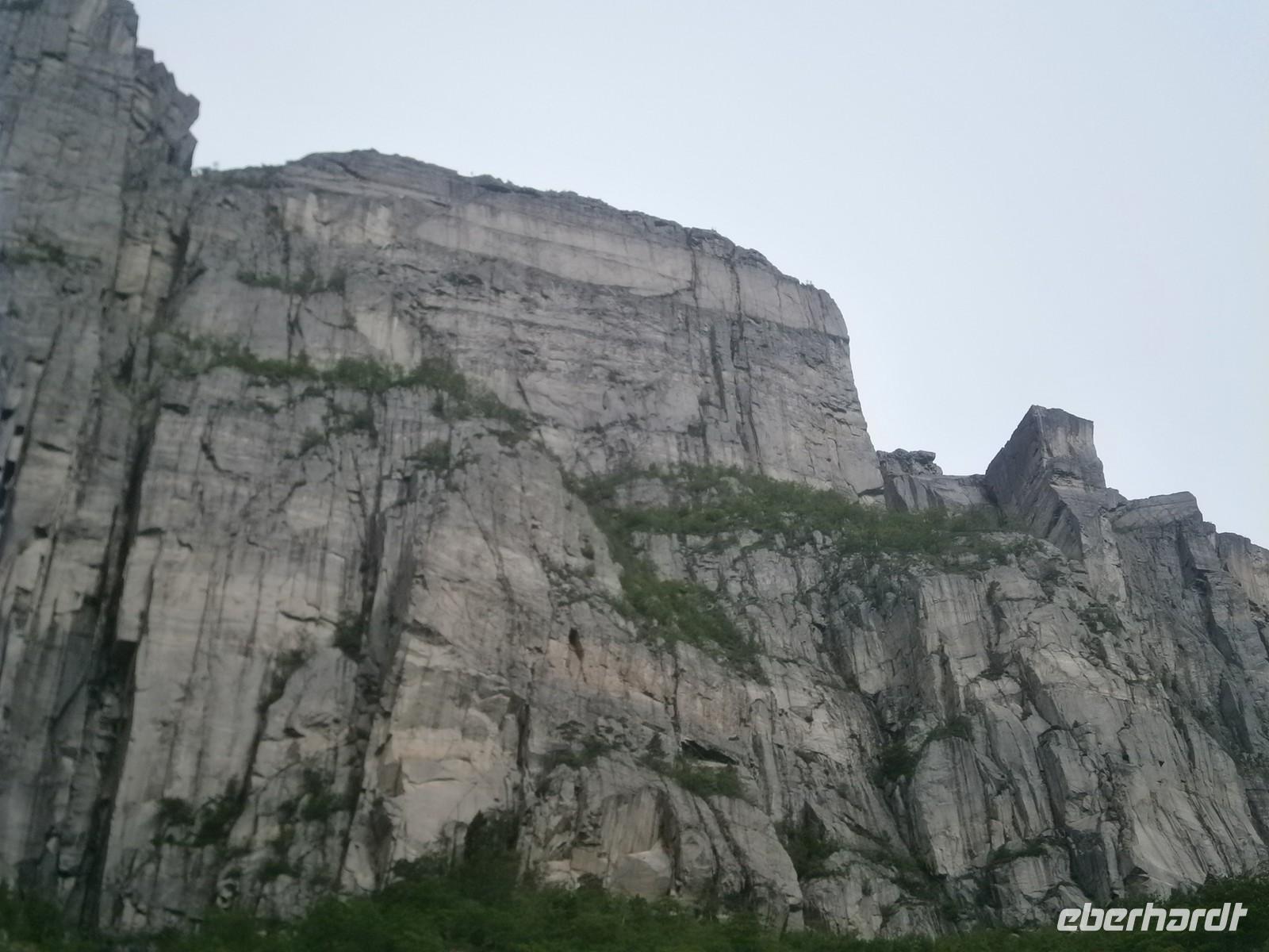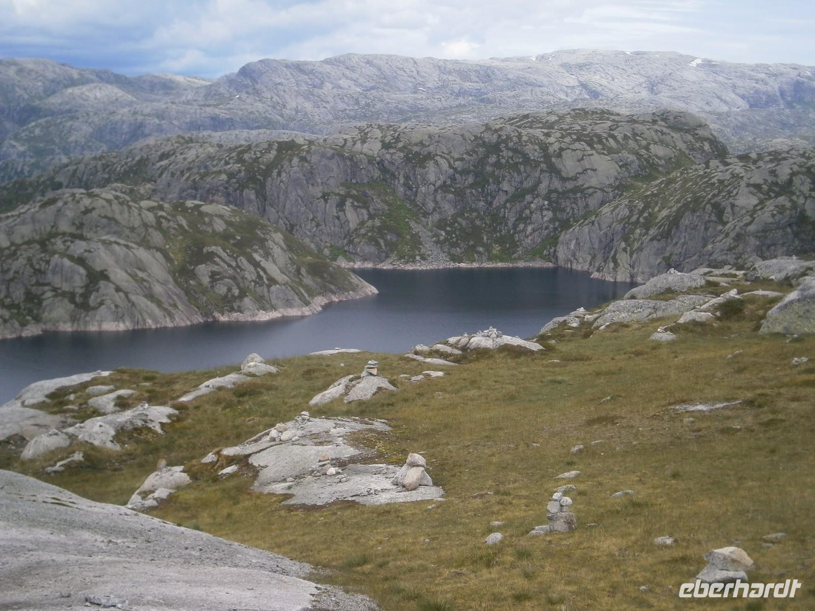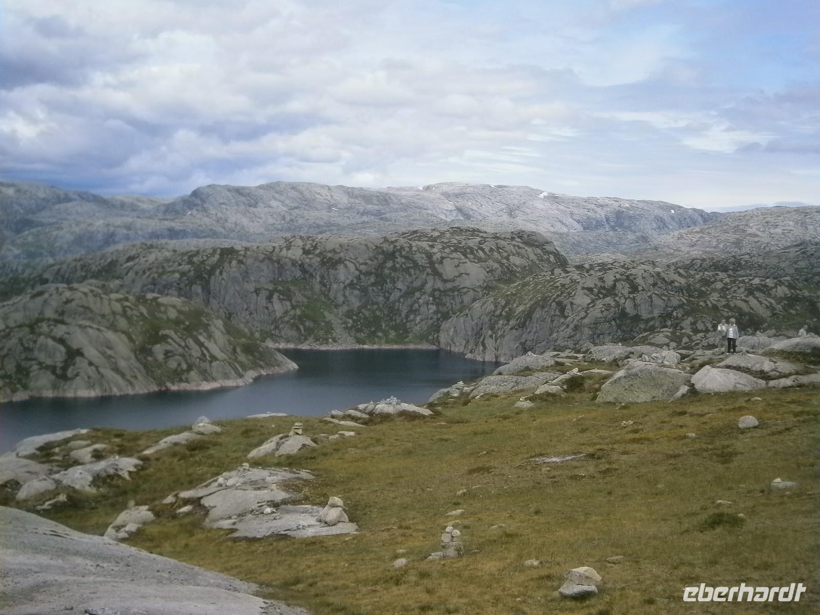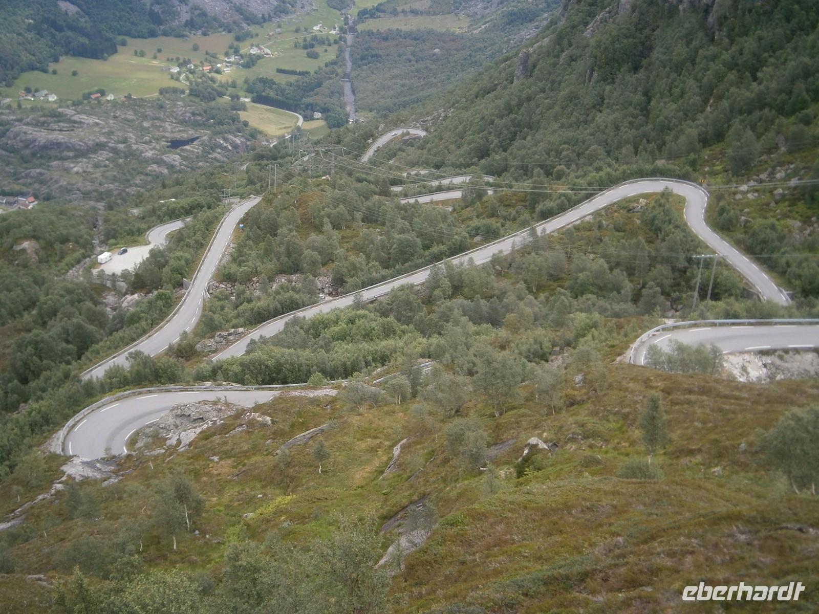 Von Lysebotn, dem Endpunkt der Fjordfahrt auf dem Lysefjord erreichen wir über eine Serpentinenstraße den Aussichtspunkt „Adlernest“ in cirka 900 Meter Höhe, auf dem Kjerag.