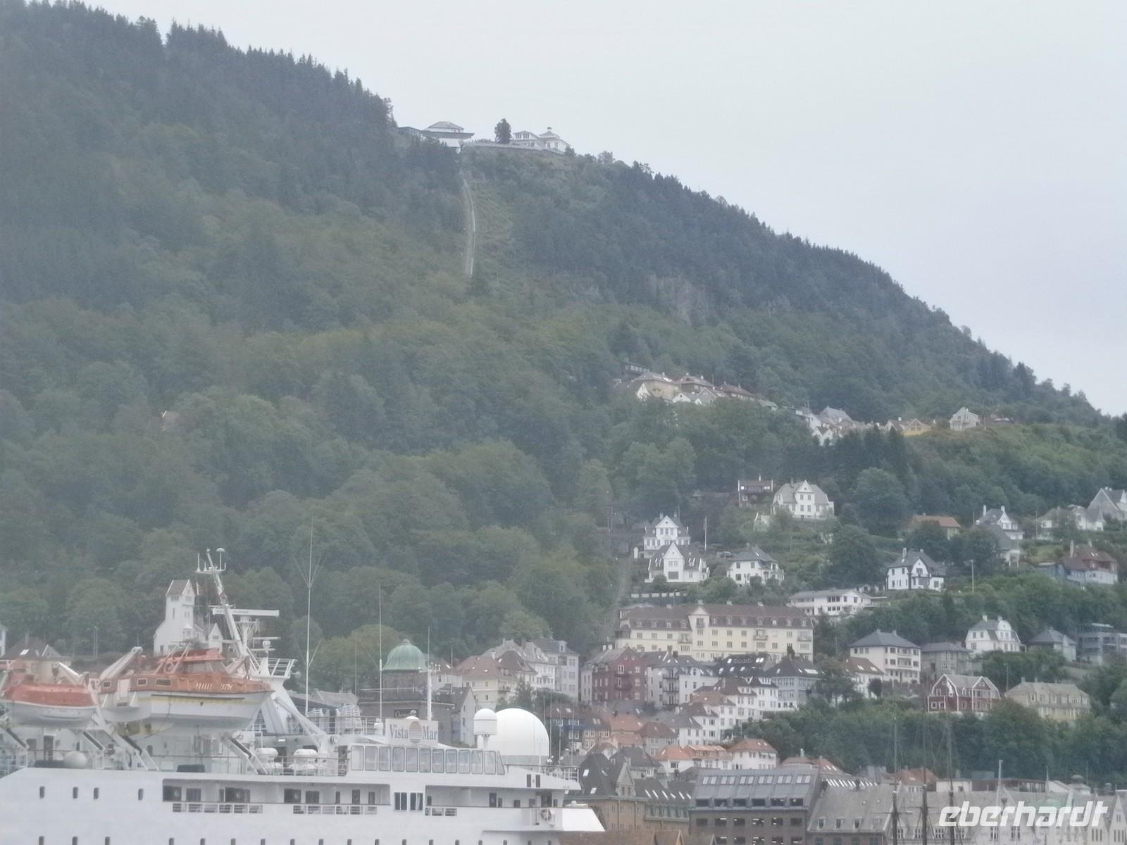 Nach mehreren Überfahrten, an Haugsund vorbei, über die Halbinsel Karmoy erreichen wir die Hafenstadt Bergen.