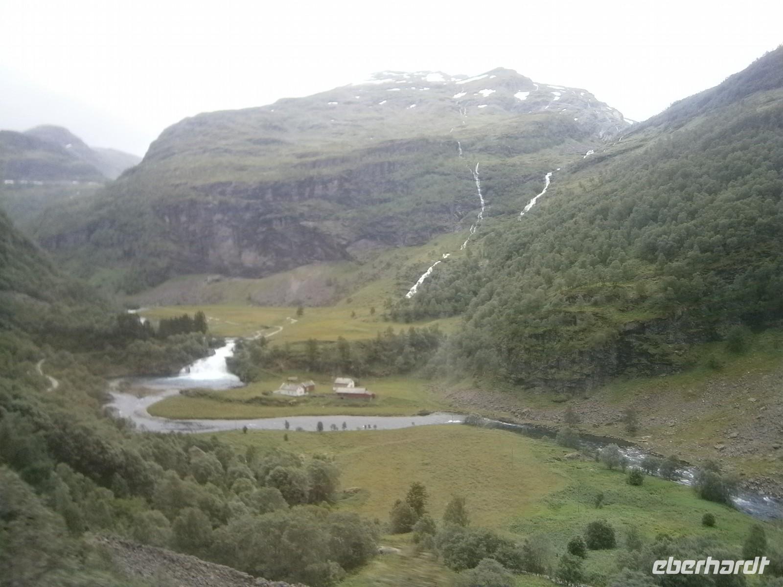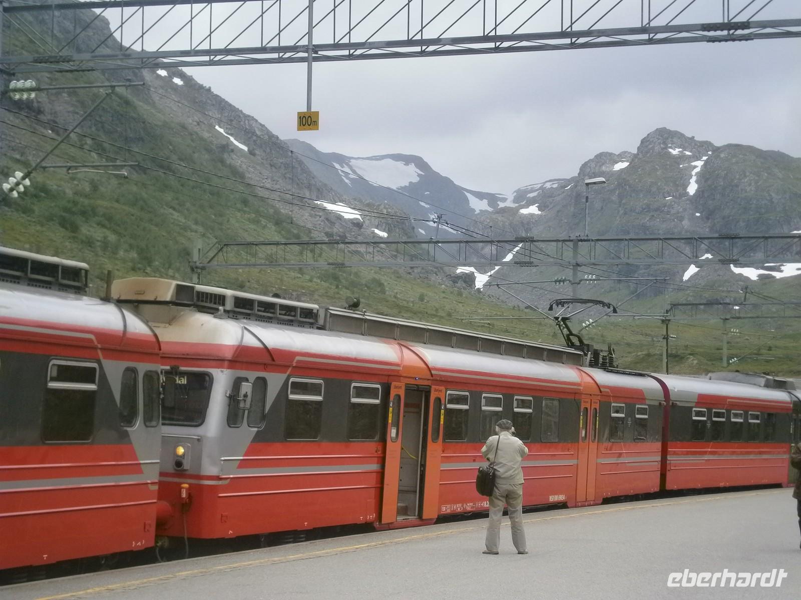 Bergenbahn. Sie wurde 1908 eröffnet. Die Fahrt führt durch unzählige Tunnel, durch reizvolle Landschaften auf eine Höhe in 866 m nach Myrdal. Hier steigen wir um, in die Flambahn.