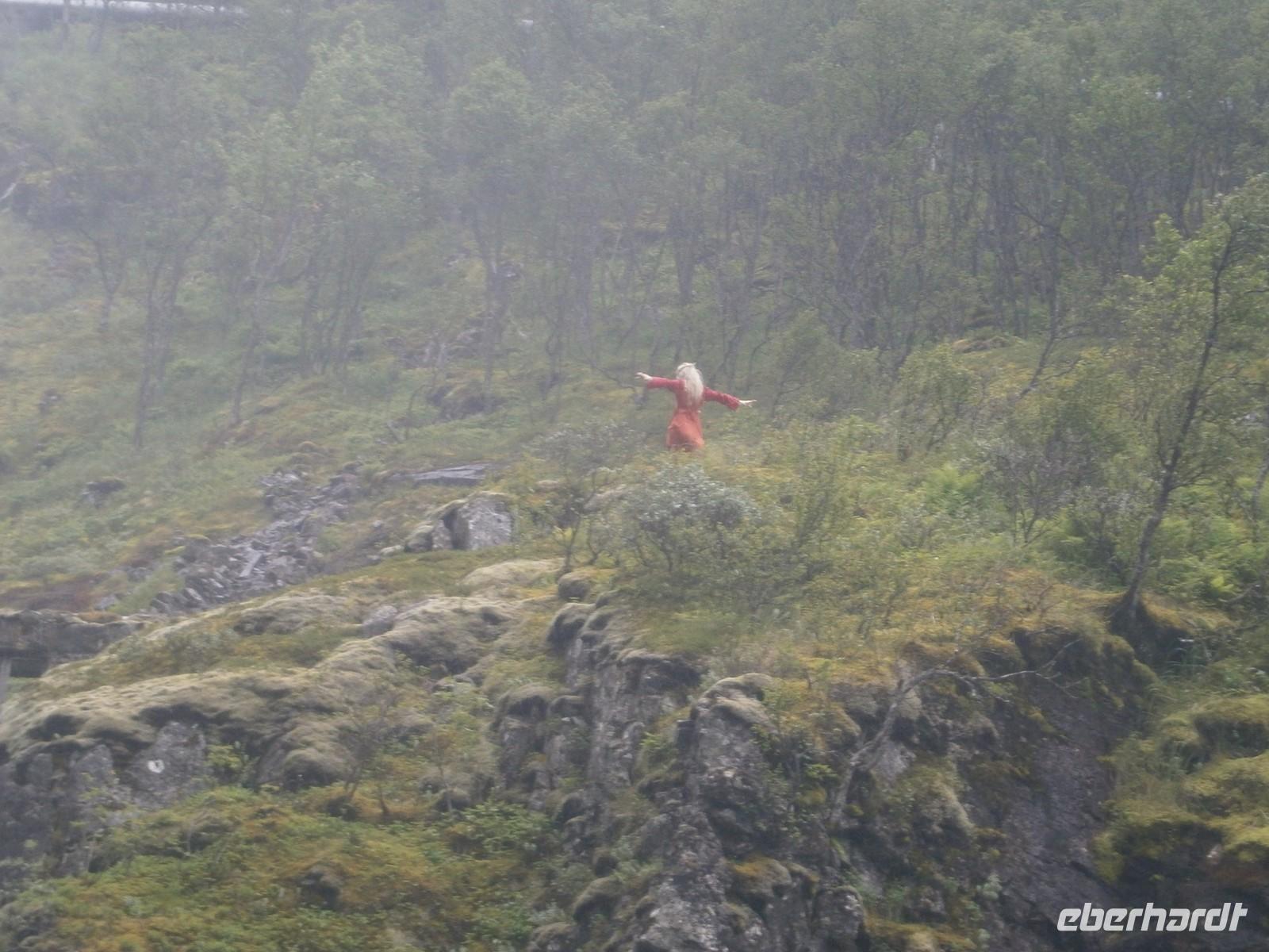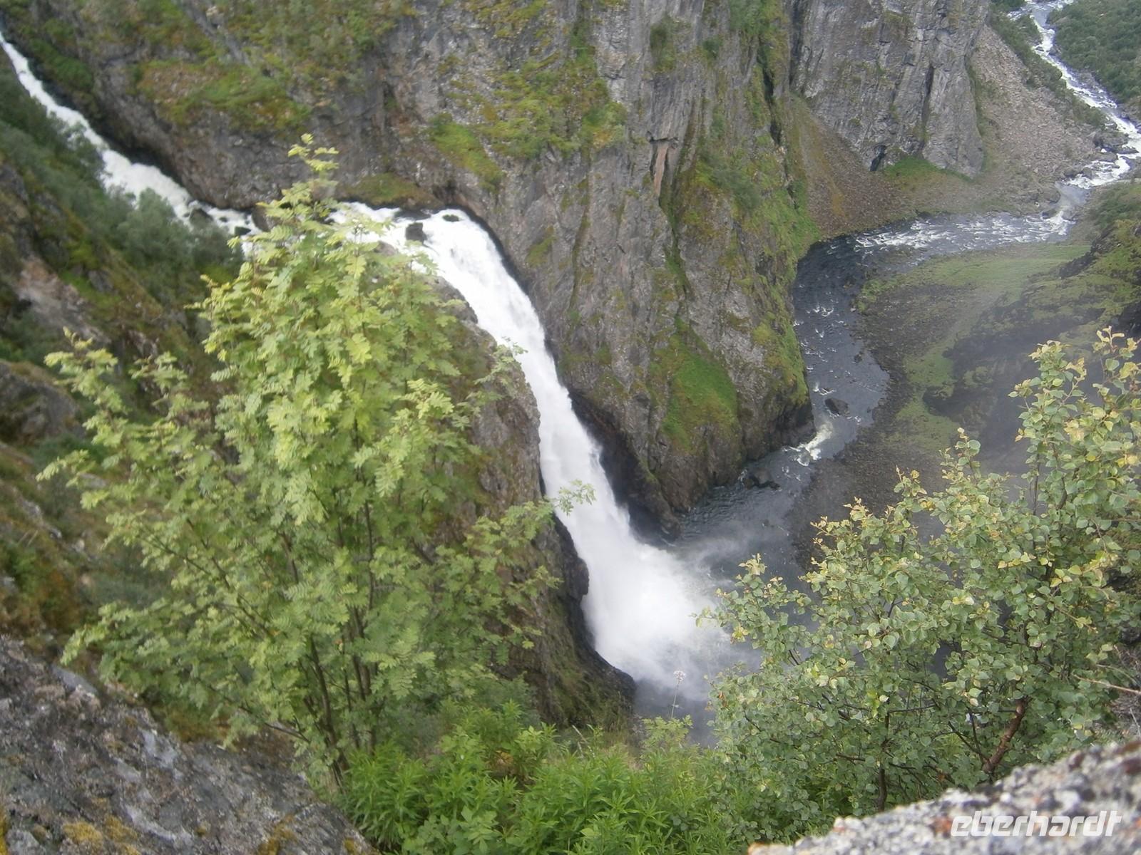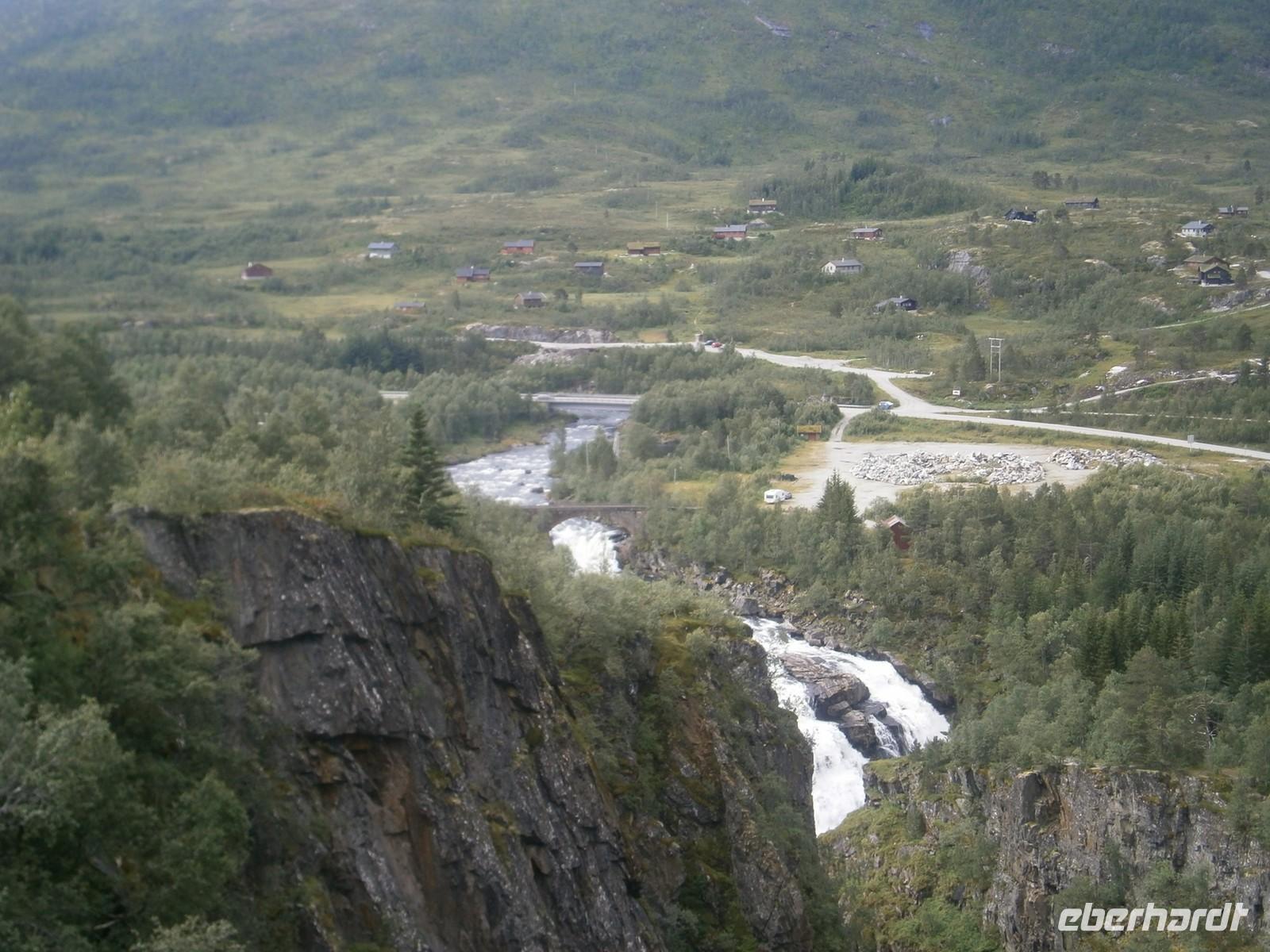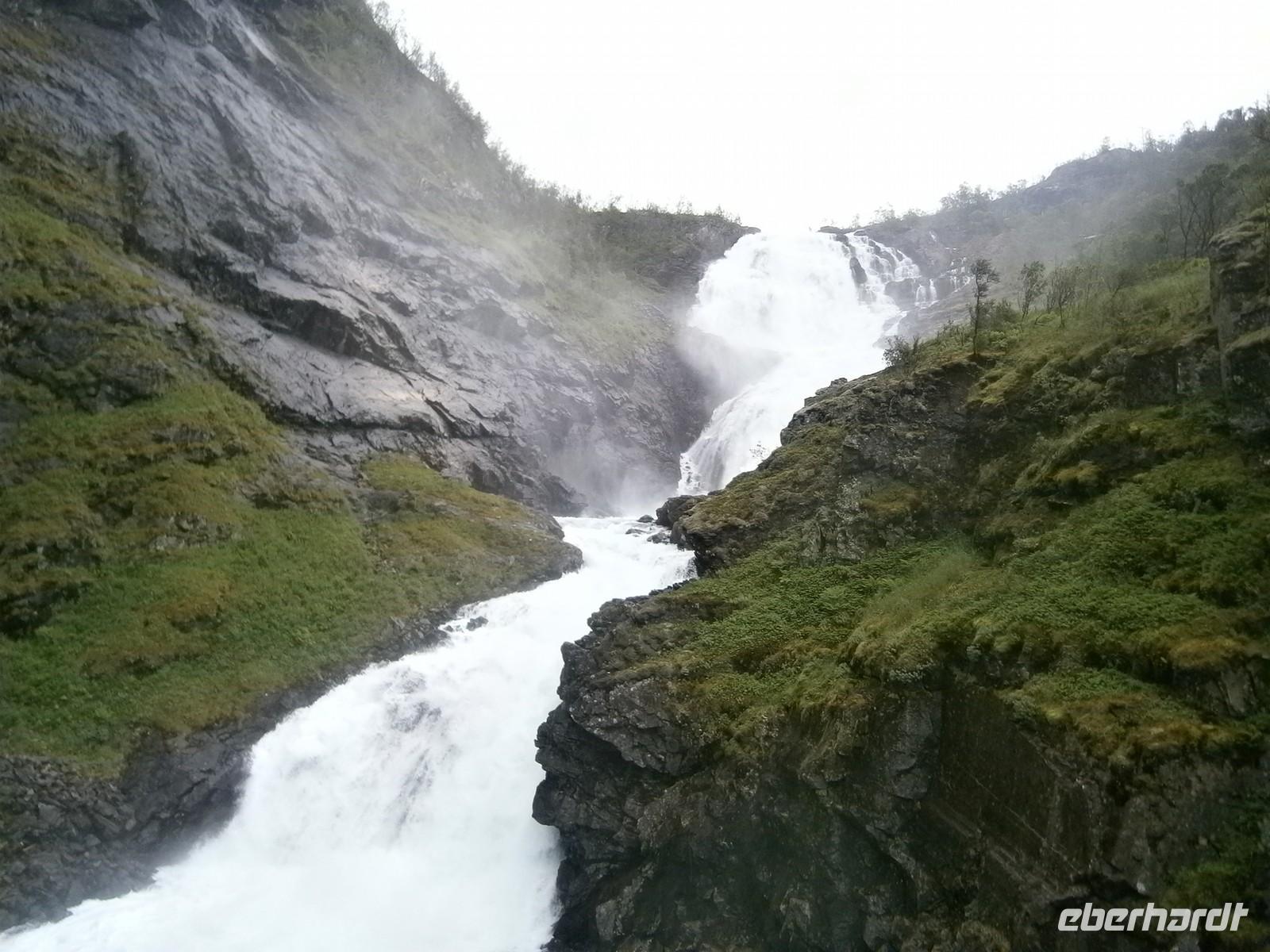 Vor uns liegt ein gutes Stück Weg. Nach der Zwischenübernachtung in Voss führt uns unsere Reise durch den Vallaviktunnelen nach Bruravik zur Fährüberfahrt nach Brimnes am Eidfjord. Über die Serpentinenstraße, durch das Bjoreldalen, erreichen wir den Vöringfossen, Norwegens bekanntesten Wasserfall.