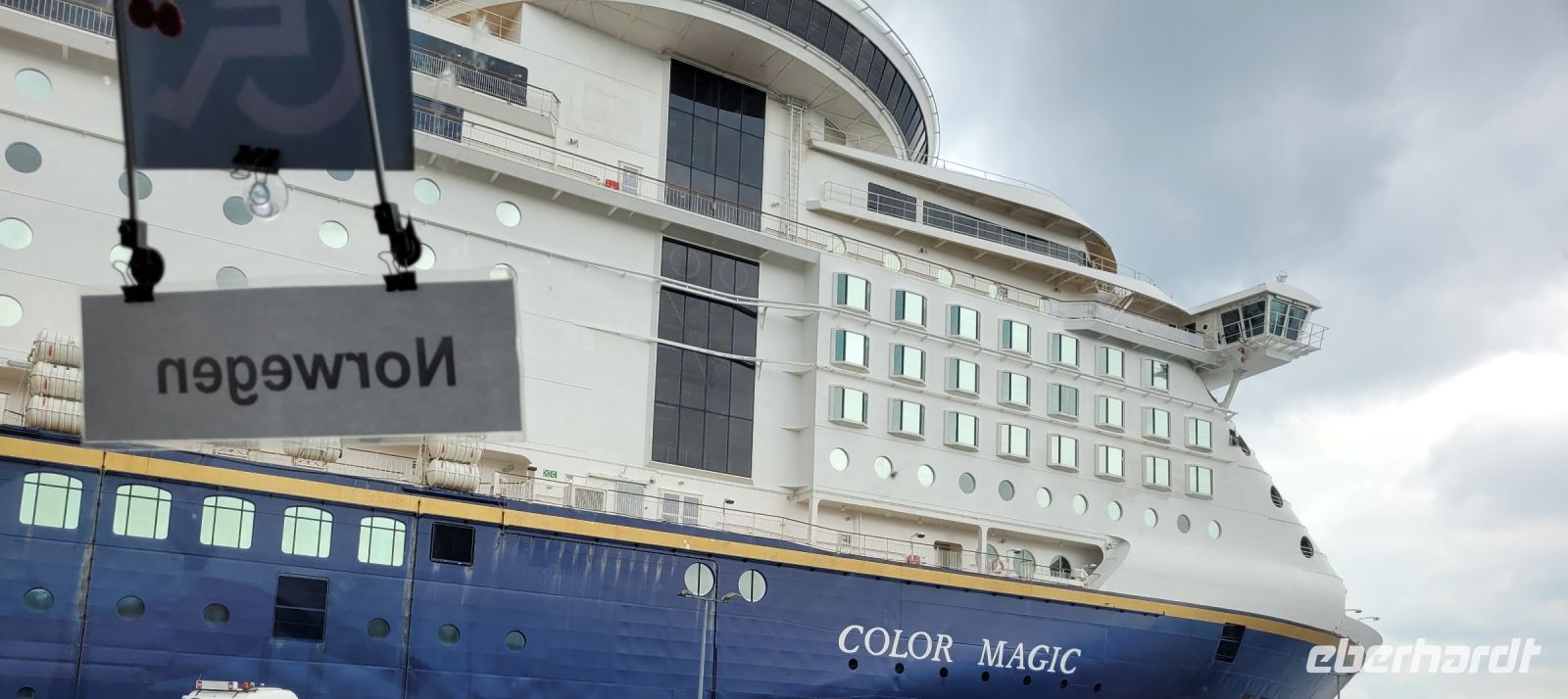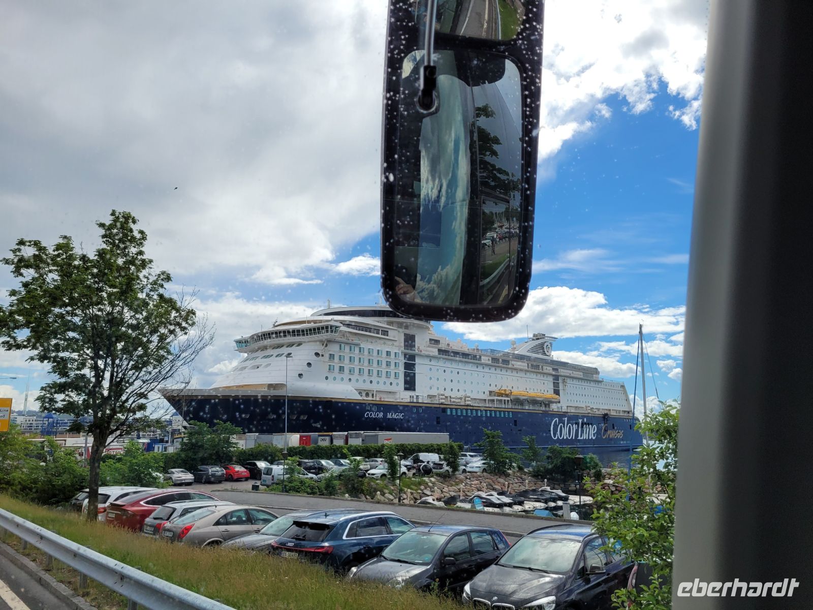 Die Fahrt führt über Leipzig zunächst nach Kiel. Hier komplettiert sich die Reisegruppe mit und ohne Rollstuhl auf sechzehn erwartungsvolle Touristen. Gegen Mittag begeben wir uns an Bord der „Color Magic“.