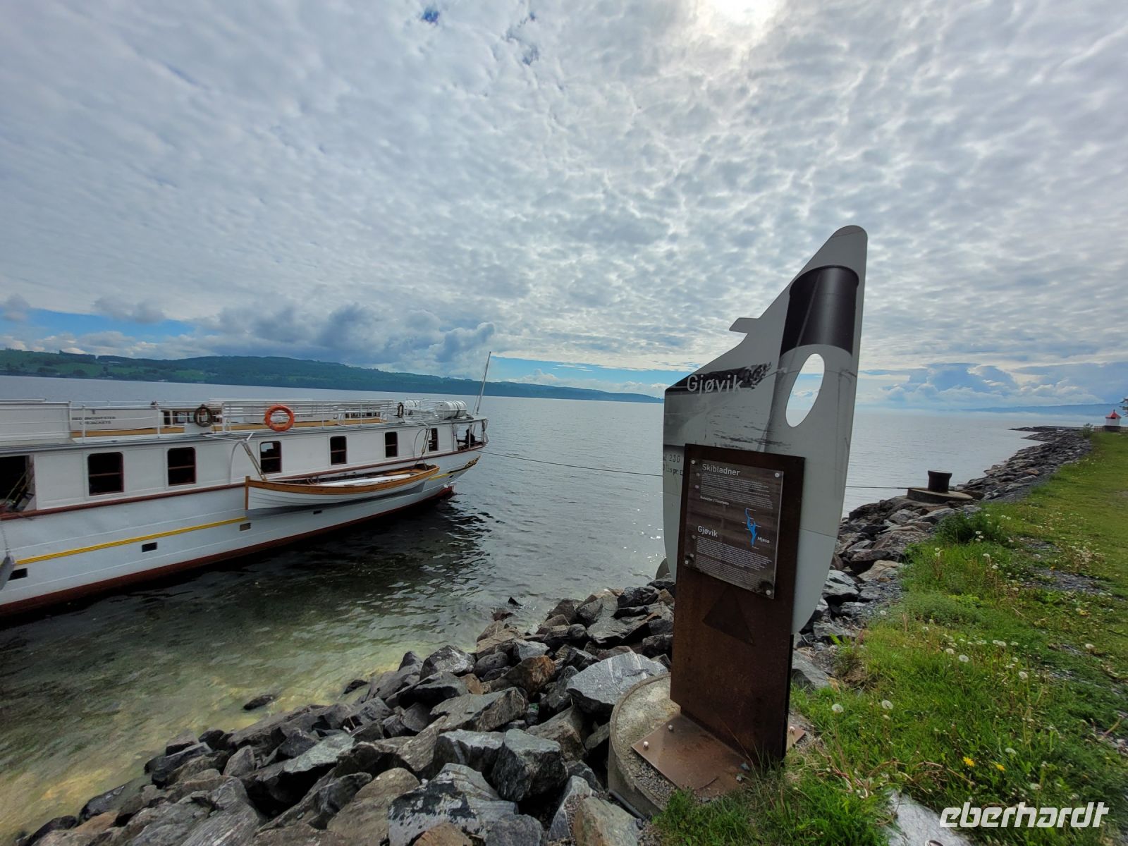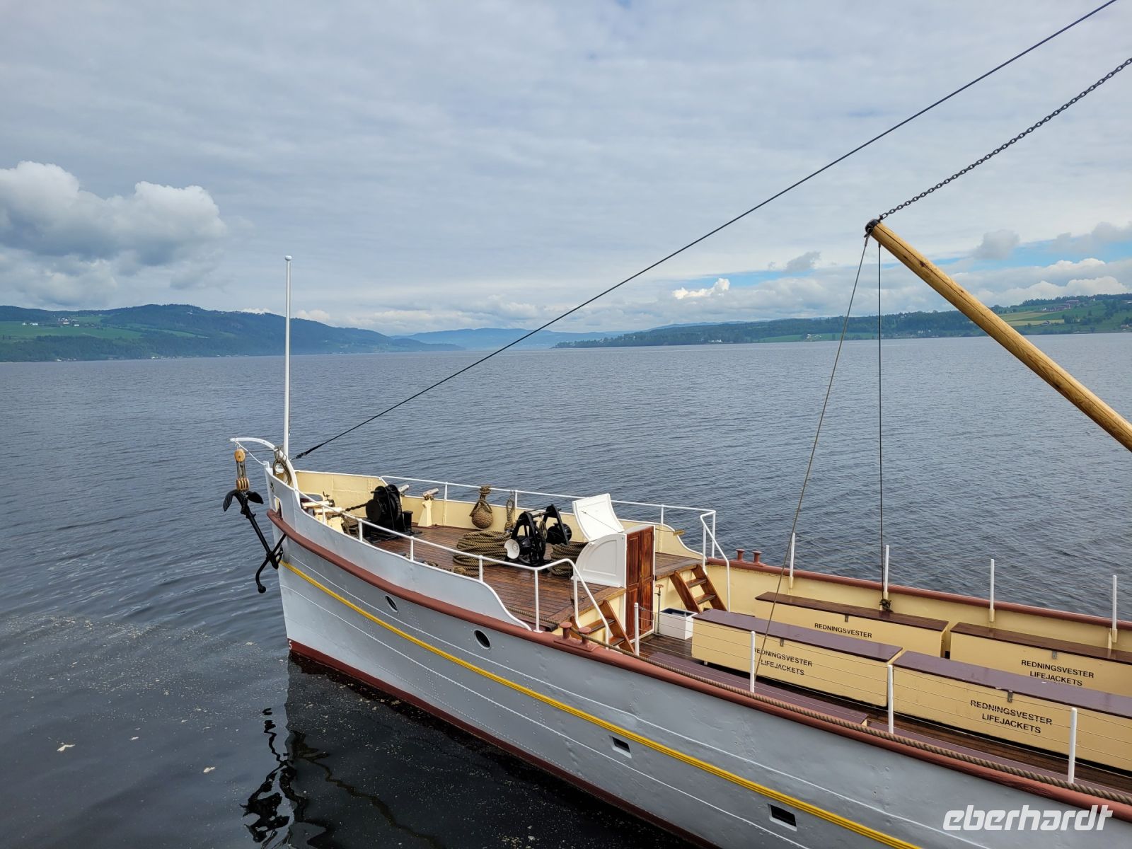 Auch dem "Skibladner“, ältester noch fahrplanmäßig verkehrender Raddampfer der Welt, welcher seit seit 1856 auf Mjøsa im Einsatz ist, statten wir im Hafen einen Besuch ab.