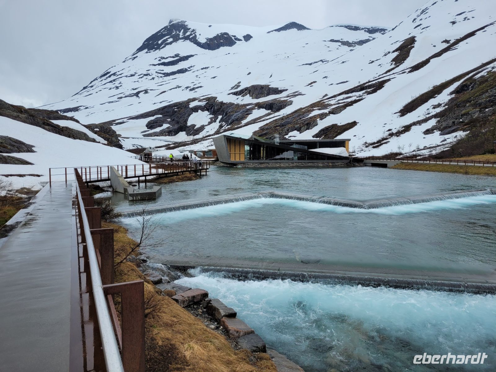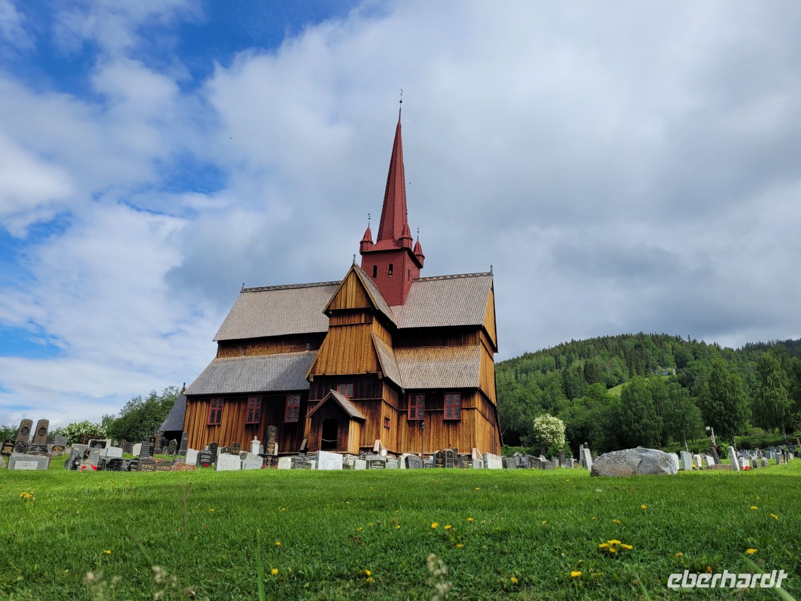 In der Gemeinde Ringebu im Fylke Oppland bewundern wir die bekannte norwegische Stabkirche, eine der größten noch erhaltenen Stabkirchen im Land. Der älteste Teil der Kirche wurde im Jahr 1220 errichtet. Im 17. Jahrhundert fanden umfangreiche Baumaßnahmen zur Gestaltung der Stabkirche statt, bei der sie ihr heutiges Aussehen erhalten hat. Auch heute noch findet in der Kirche der wöchentliche Gottesdienst der Gemeinde statt. Über Dombas, wo wir nach Durchfahrung des herrlichen Gudbrandstals die nächste Pause einlegen, gelangen wir der Strecke der Raumabahn durch das Romsdalen folgend zum Trollveggen.