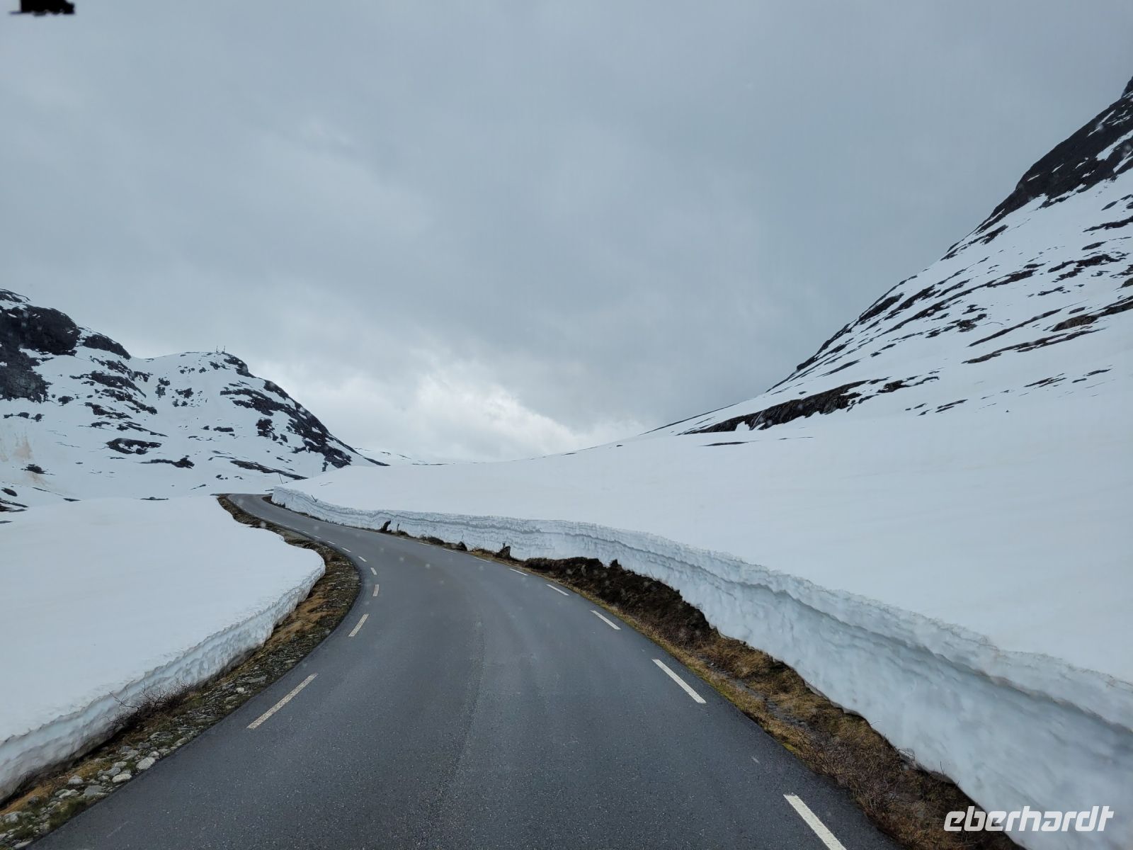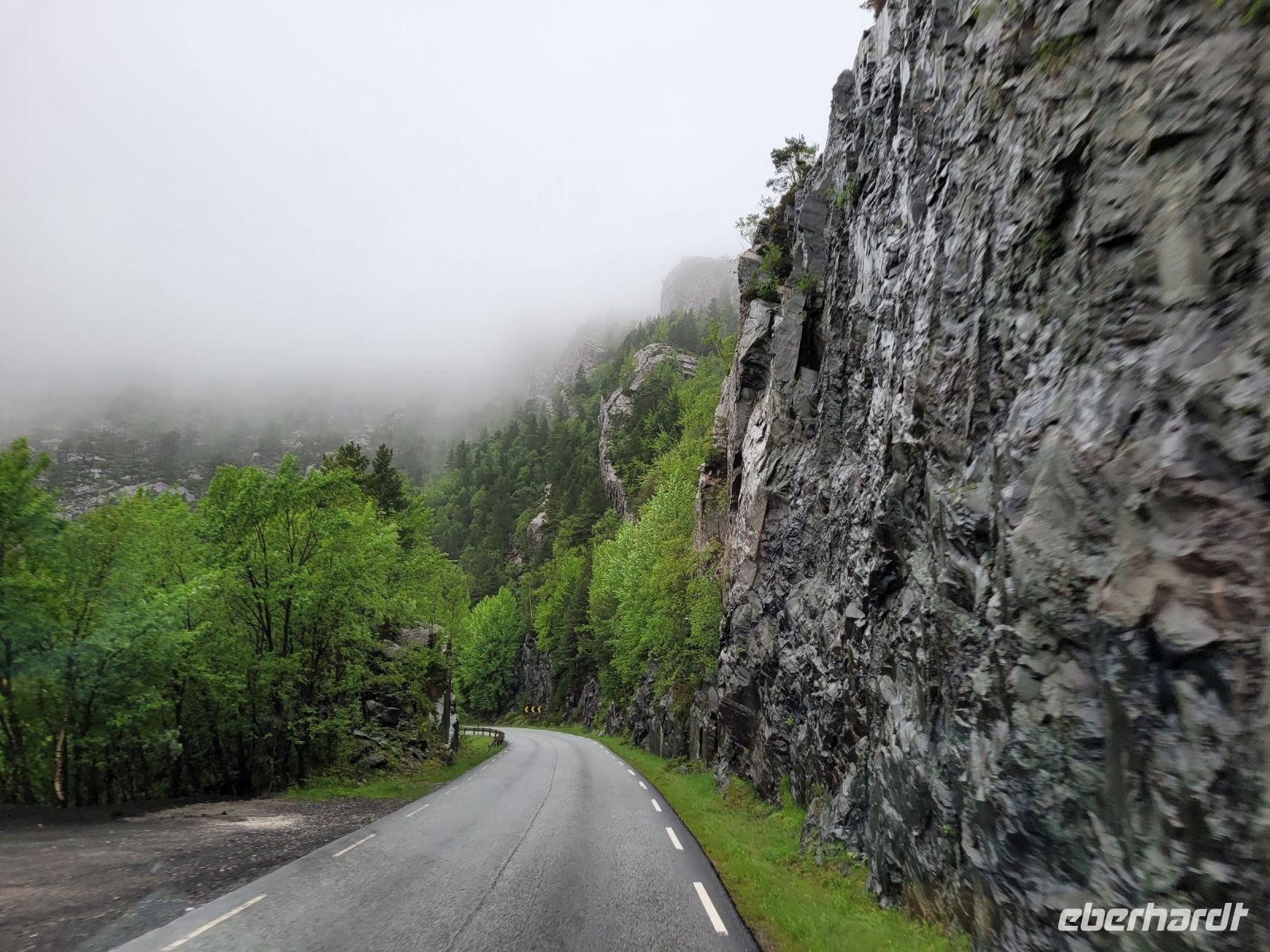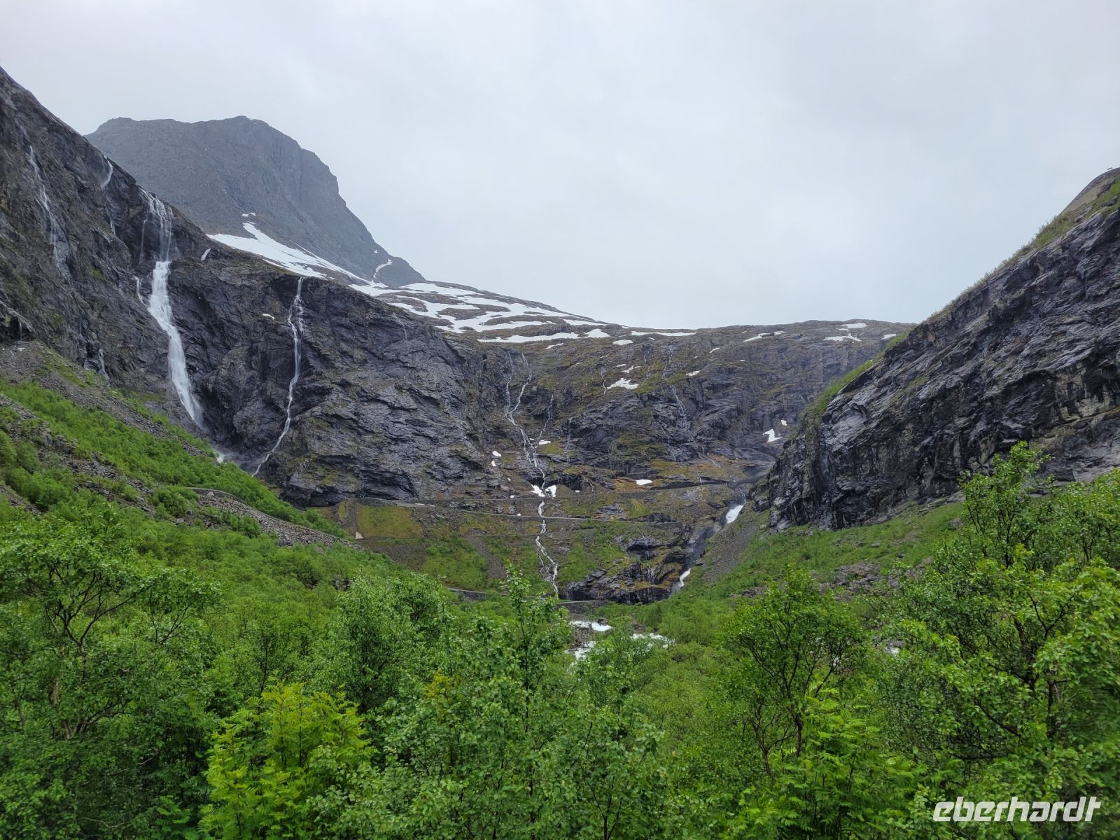 Die Steilwand ist in ihren Dimensionen europaweit unübertroffen. Bei Andalsnes erreichen wir dann den ersten „richtigen“ Fjord und schlussendlich bringt uns eine Fähre nach Molde.
