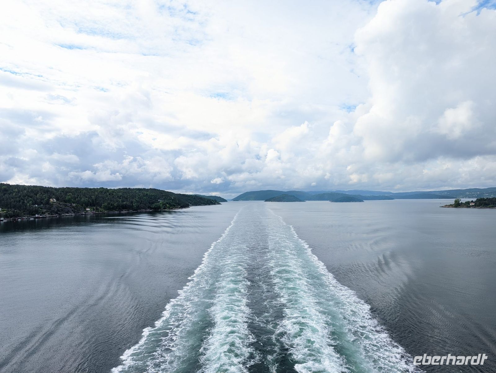 Mittags gehen wir an Bord der Color Line und genießen bei bestem Wetter das Auslaufen aus dem Oslofjord.