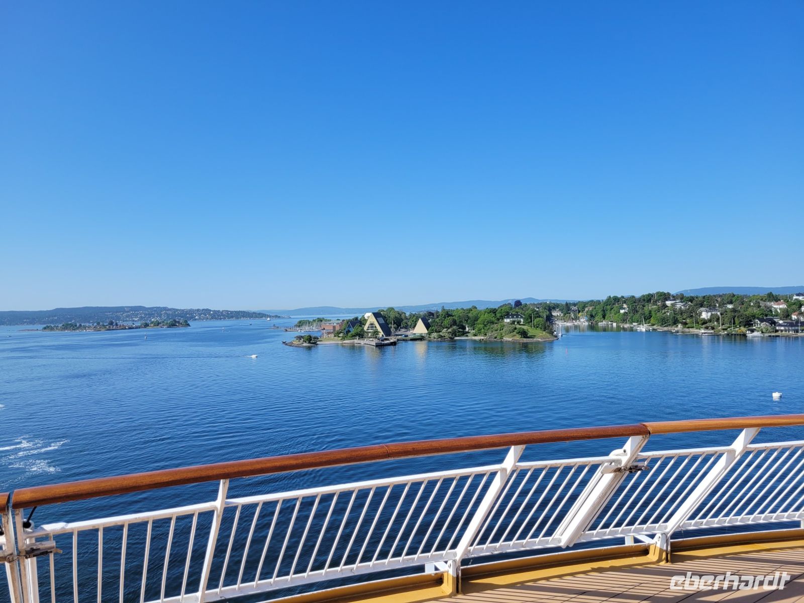 Nach einem zeitigen Frühstück geht es über Hønefoss und entlang des Tyrifjord wieder nach Oslo. Mittags gehen wir an Bord der Color Line und genießen bei bestem Wetter, welches uns die gesamte Reisezeit beschert war, das Auslaufen aus dem Oslofjord.