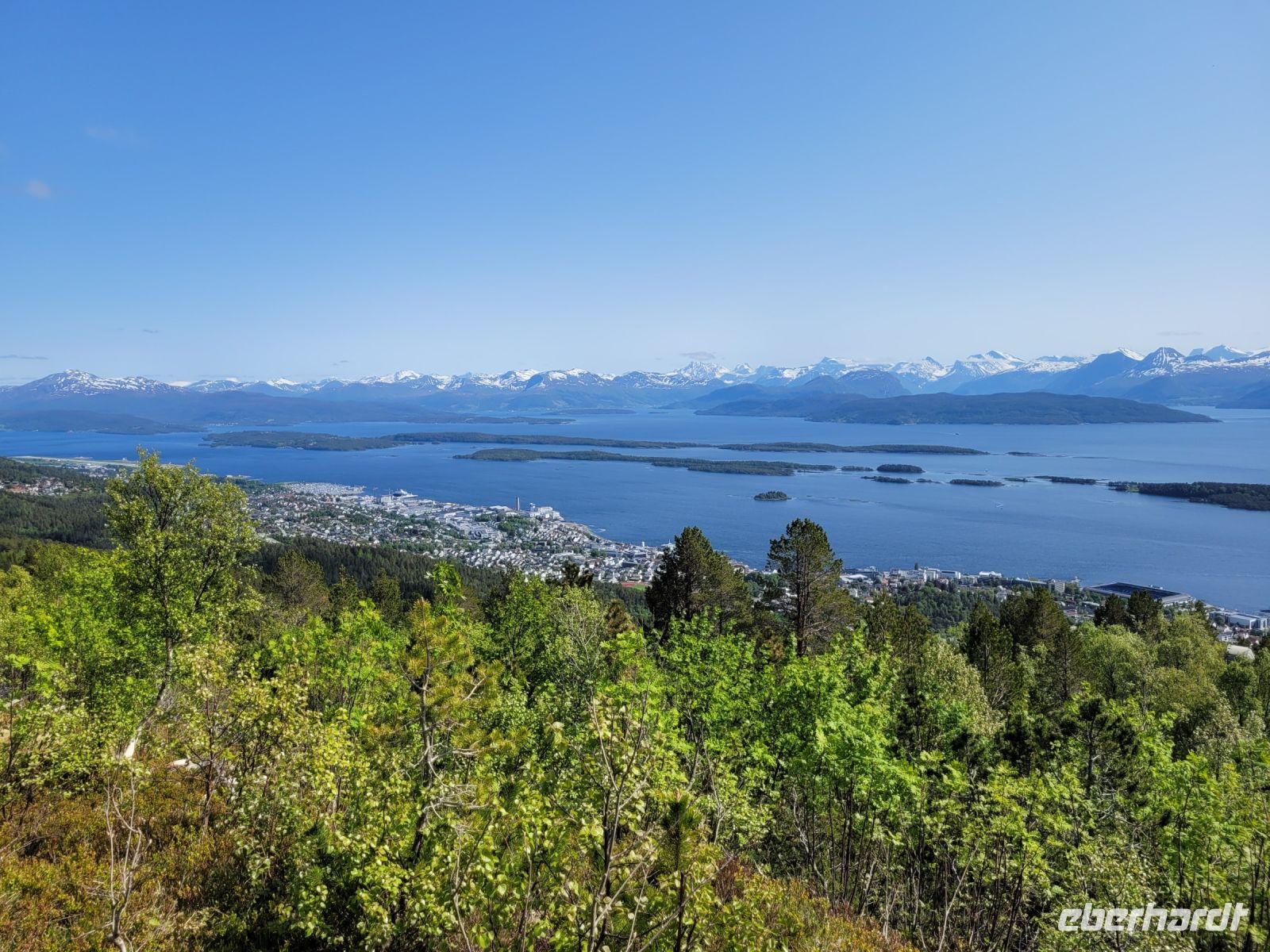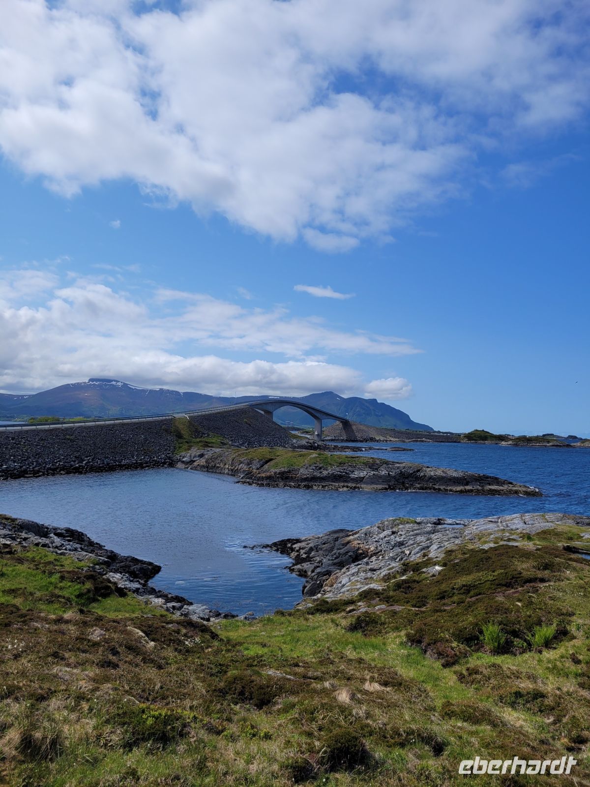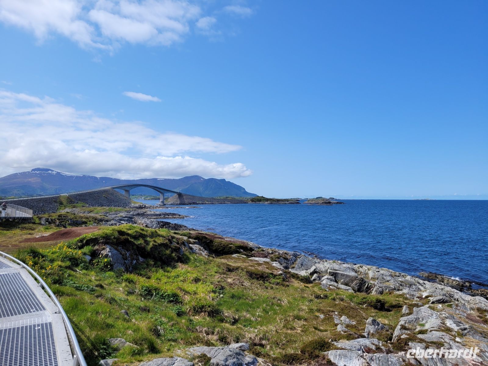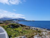 Das in den neunziger Jahren fertiggestellte „Krifast“ Straßensystem bringt uns auf malerischer Strecke zunächst nach Kristiansund, in die Stadt des Klippfisches. Durch einen imposanten Unterseetunnel erreichen wir dann die Atlantikstraße, die sich direkt am Meer entlang windet. Wir überqueren Brücken sowie Dämme und haben aus dem barrierefreien Bus heraus immer wieder faszinierende Ausblicke. Auf Skipholmen, der größten Insel der Gruppe, steigen wir aus und umrollen das Eiland auf dem trefflich barrierefrei angelegten Rundweg. Wieder in Molde befahren wir noch den 400m hohen Varden, der Aussichtsberg bietet ebenso eine gute Aussicht auf Molde wie auf über 200, teils schneebedeckte, Berggipfel der Romsdalalpen.