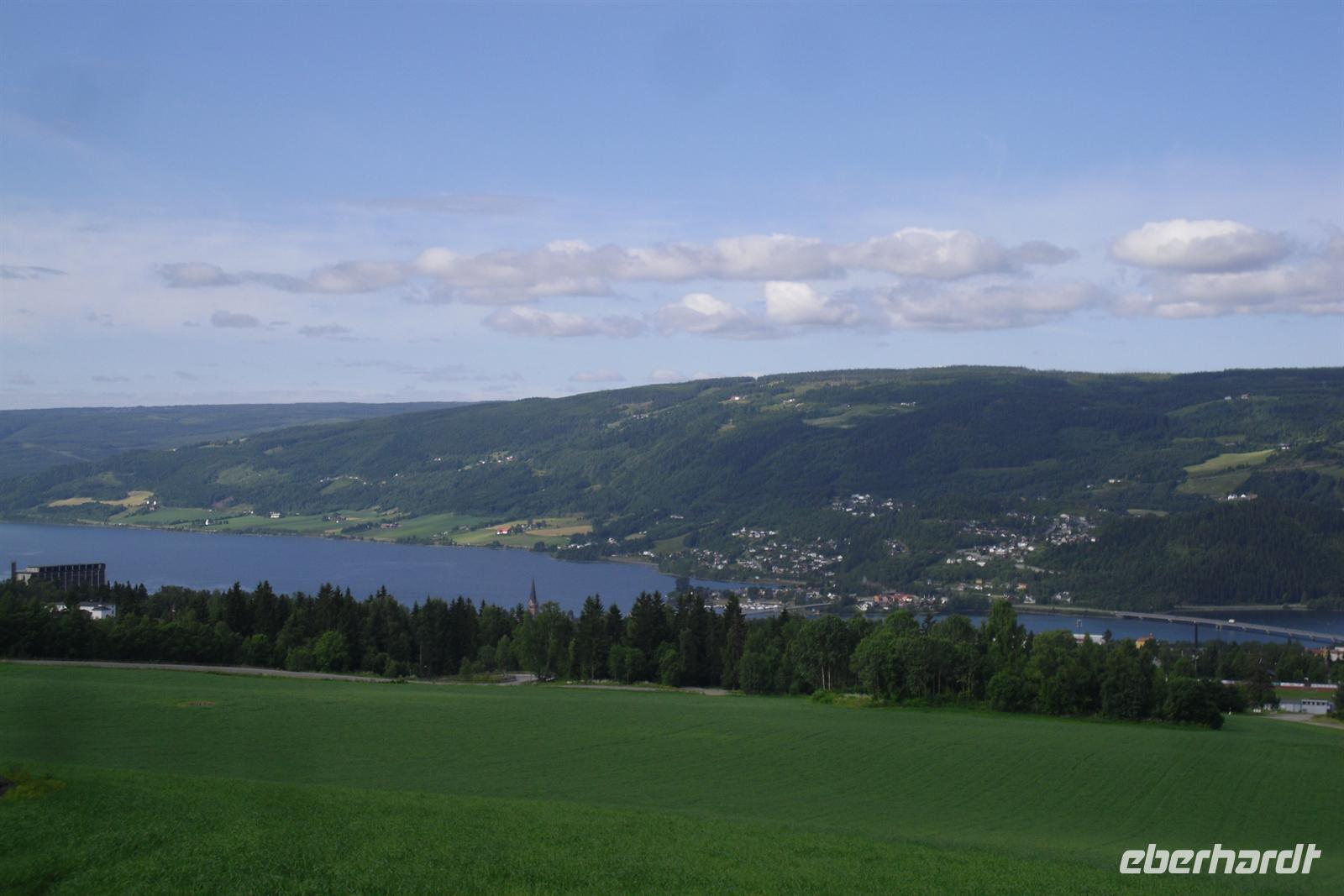 Am Morgen ging es weiter vorbei am Mjøsa-See, dem mit einer Fläche von 362 Quadratkilometern und einer Länge von 117 Kilometern größten See Norwegens, nach Lillehammer. Das Wetter war bestens, als wir an den Schanzenanlagen von Lillehammer ankamen. Die Stadt war 1994 Austragungsort der Olympischen Winterspiele und dafür wurden damals zahlreiche neue Sportanlagen errichtet.