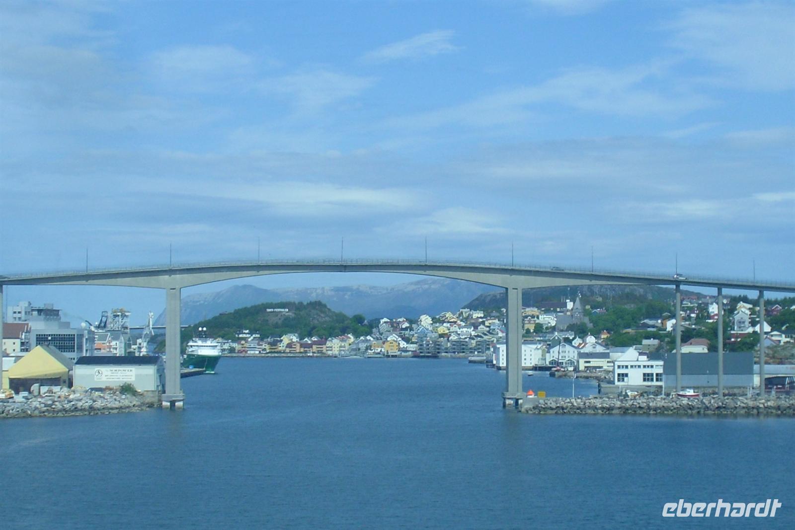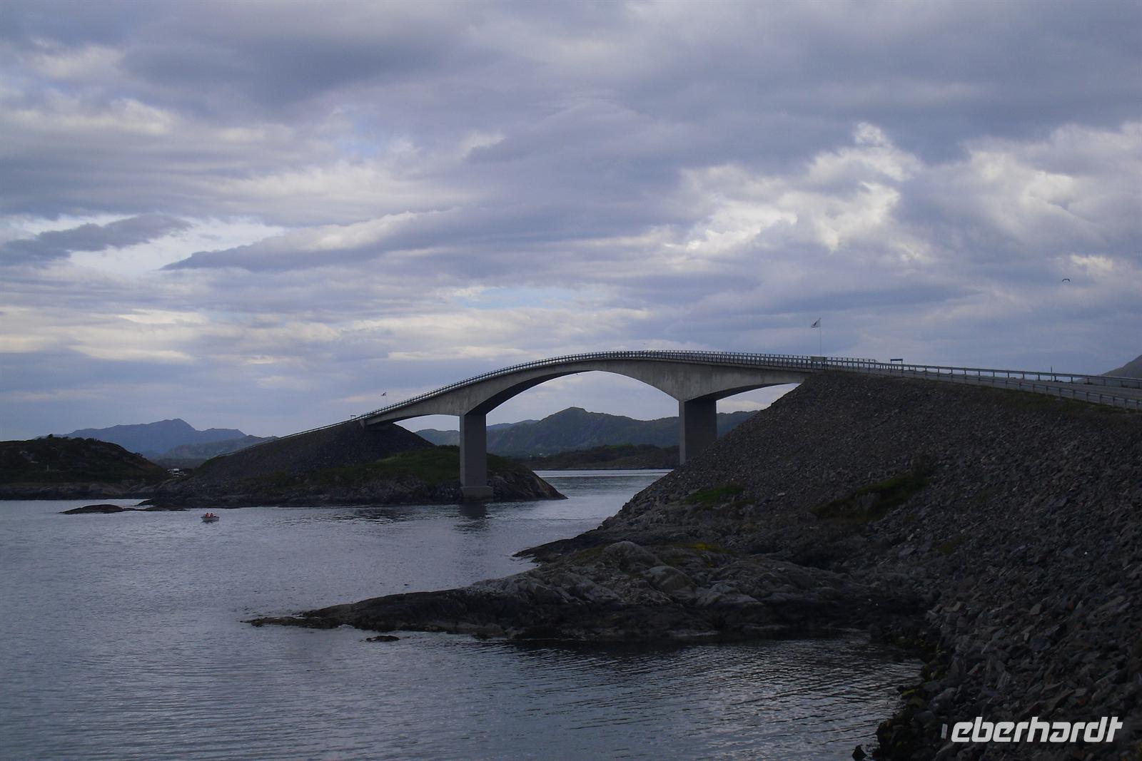 Natürlich erlebten wir auf unserer ca. 6-stündigen Fahrt nur eine kleine Etappe dieser eigentlich 13-tägigen Reise, aber immerhin hat man dadurch einen Eindruck von der sogenannten "Schönsten Seereise der Welt". Unser Buschauffeur Andreas erwartete uns am späten Nachmittag in Kristiansund, um von dort aus weiter durch den Atlantiktunnel, einem im Dezember 2009 eröffneten und 5.469 Meter langen unterseeischen Straßentunnel (größte Tiefe 243 Meter!), auf die Insel Averøy zu gelangen. Averøy ist eine der größten Fischereigemeinden Norwegens in einer traumhaft schönen Lage am Meer. Die Küste ist von unzähligen Inseln, Holmen und Schären geprägt. Nun erwartete uns ein weiterer Höhepunkt unserer Reise - die Fahrt auf der Atlantikstraße! Die Strecke wurde 2005 zum Bauwerk des Jahrhunderts in Norwegen gekürt. Dies ist eine einzigartige Straße, die uns bis ans offene Meer führte. Die etwa 8 Kilometer lange Strecke mit gigantischen Brücken und zahlreichen Dämmen wurde 1989 eröffnet und verbindet die Insel Averøy mit dem Festland. Am Abend erreichten wir Molde, unser heutiges Etappenziel. Dort angekommen, bezogen wir sofort unsere Zimmer im Quality Hotel Victoria, direkt gegenüber des Hurtigruten-Kais. Trotz etwas Regens unternahmen einige Gäste noch einen kleinen Spaziergang durch die sogenannte „Stadt der Rosen“. Aufgrund des günstigen Lokalklimas können hier nämlich etliche Arten von Rosen besonders üppig wachsen.