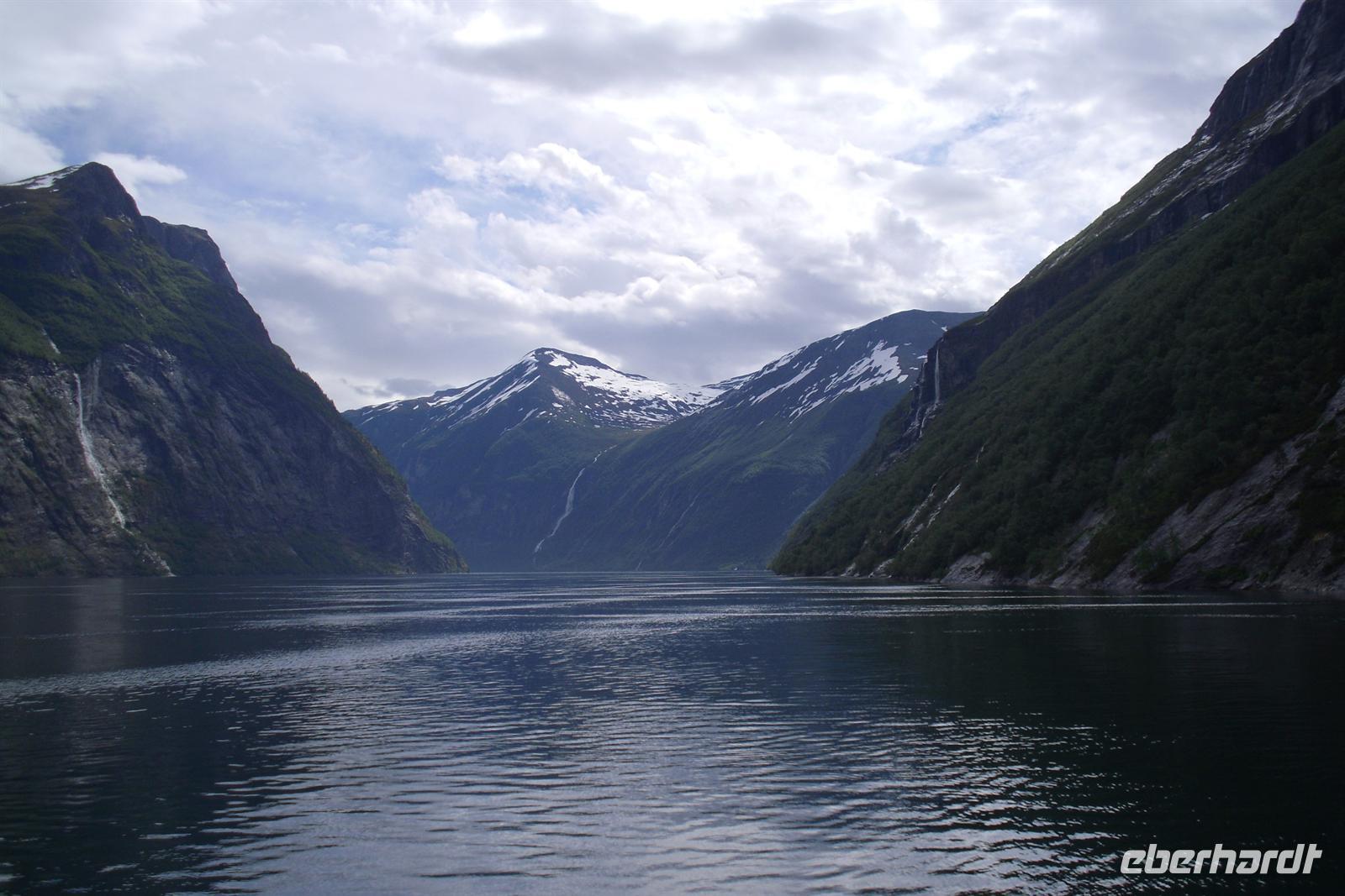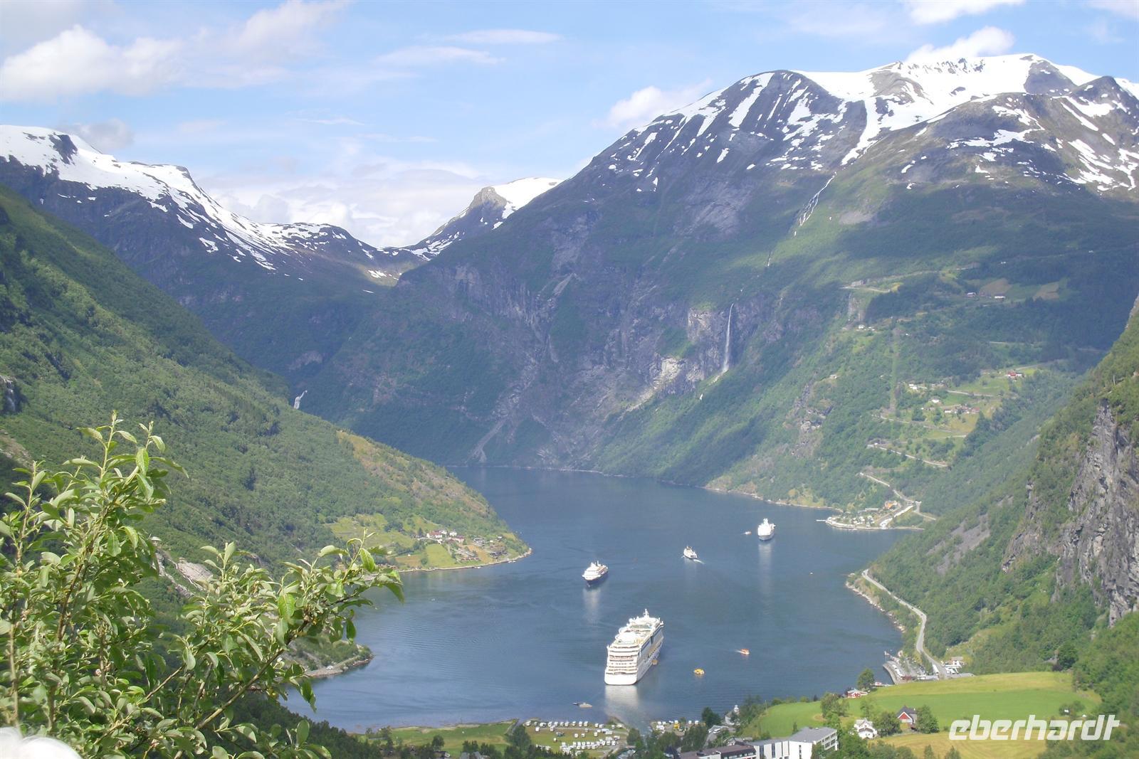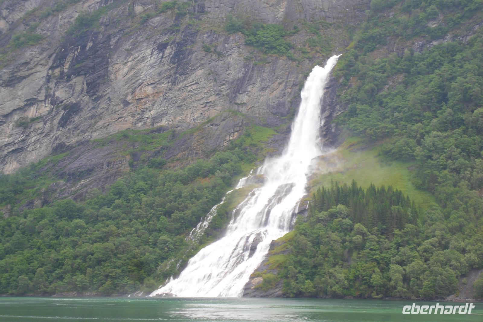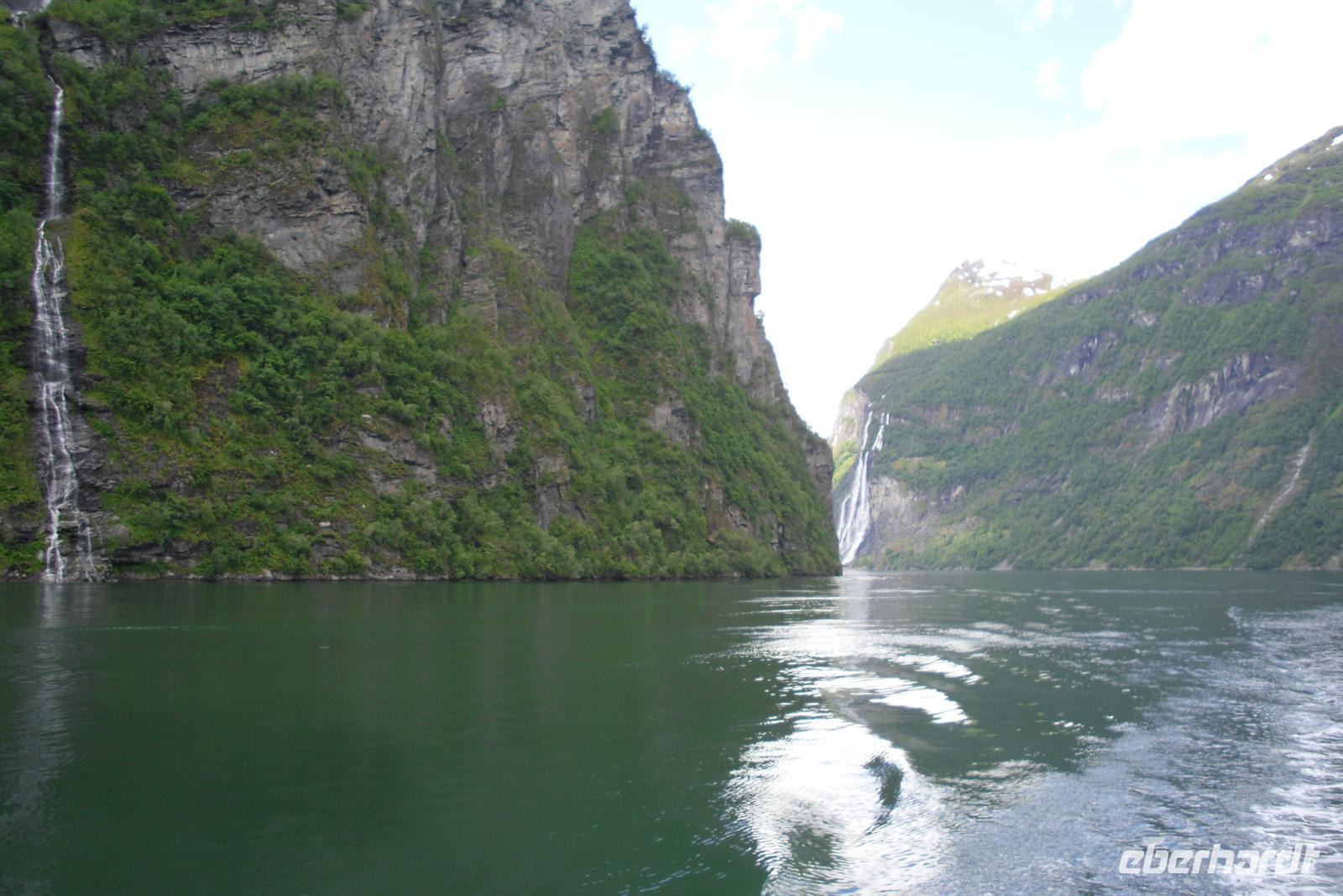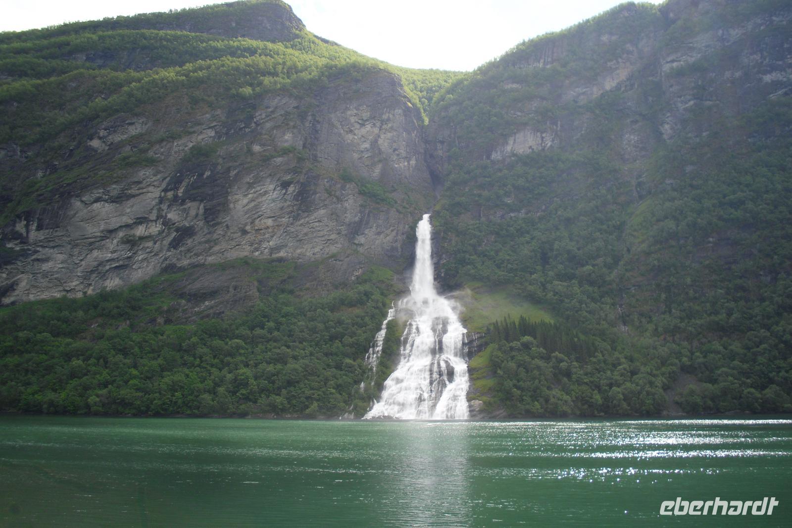 Heute starteten wir wieder gegen 8 Uhr, denn wir hatten volles Programm! Leider mußten wir Abschied von der schönen Stadt Ålesund nehmen, es ging nach Magerholm und von dort mit der Fähre über den Storfjord nach Ørsneset. Unser nächstes Ziel war Hellesylt, von wo wir zu einer etwa einstündigen Schifffahrt auf dem Geirangerfjord aufbrachen.
