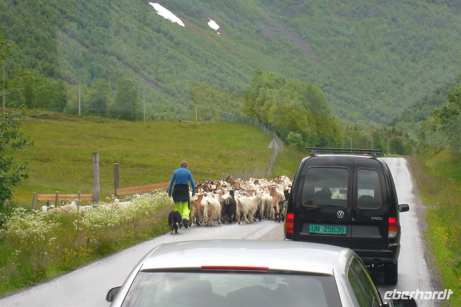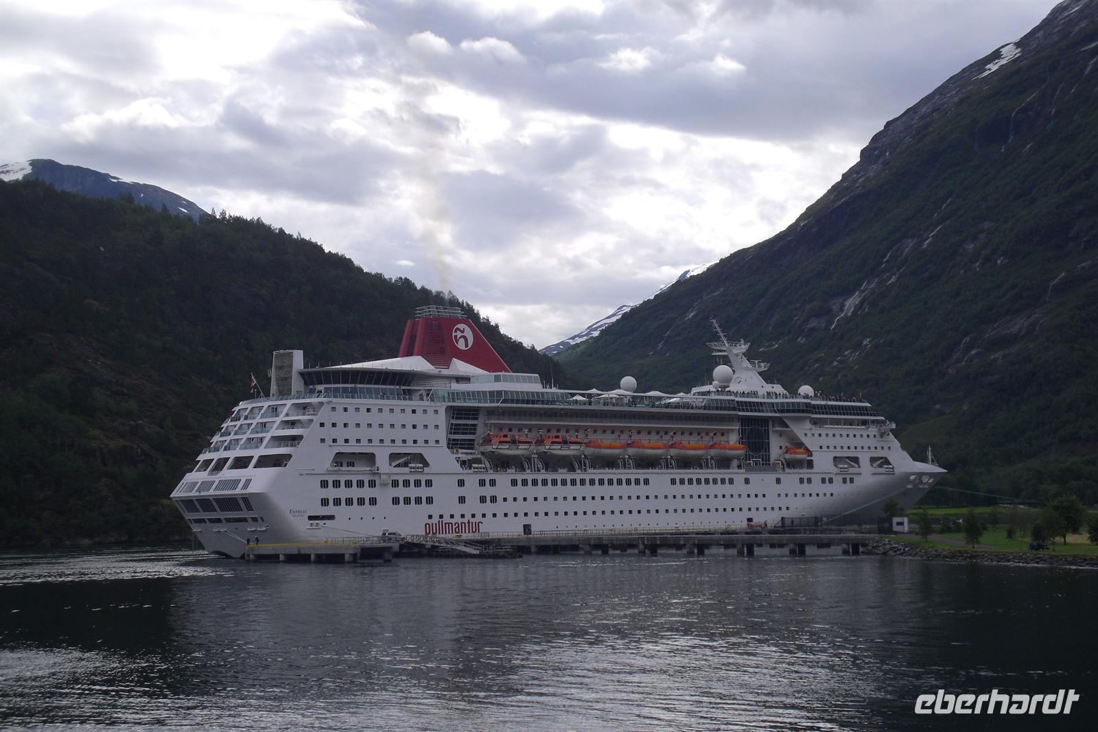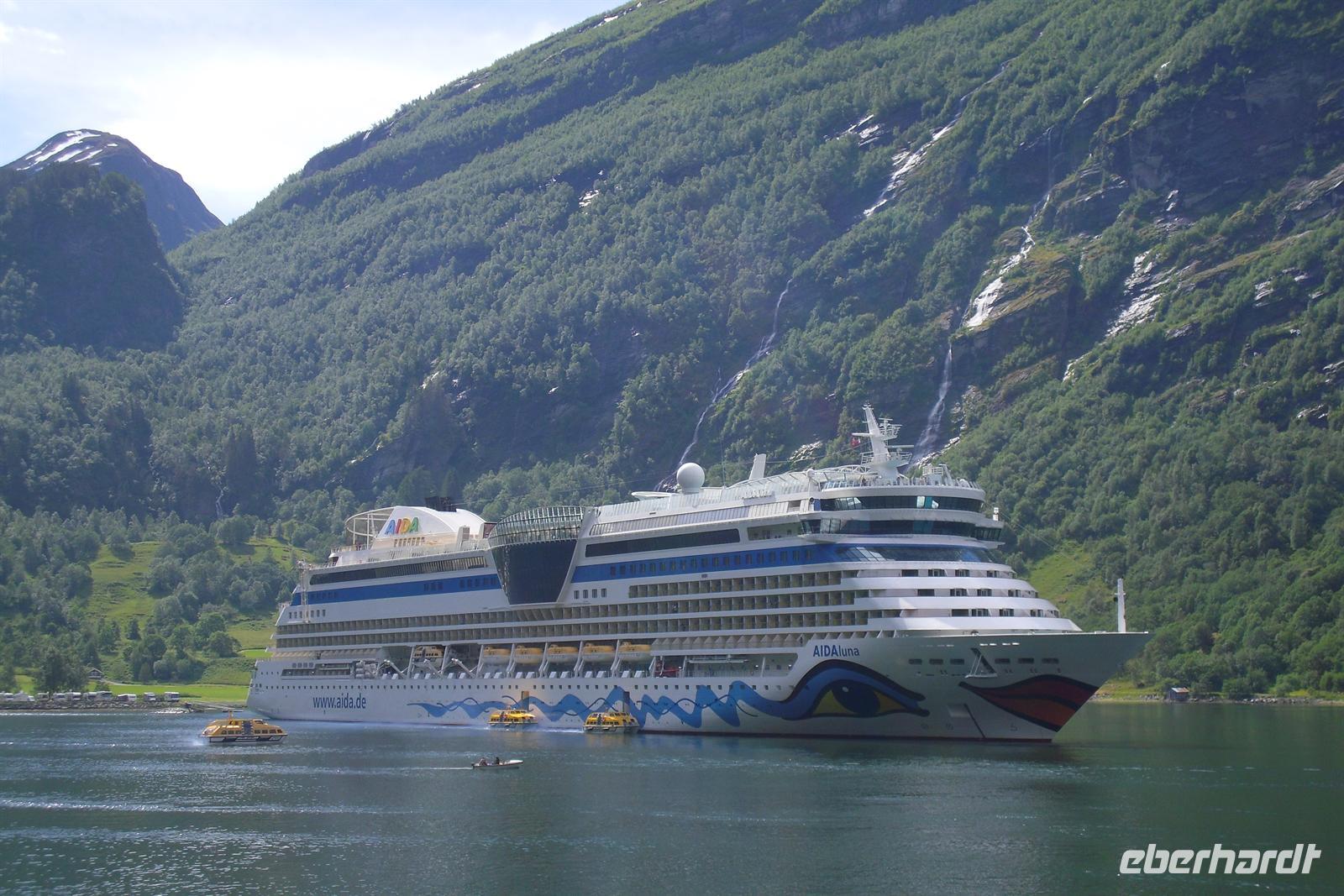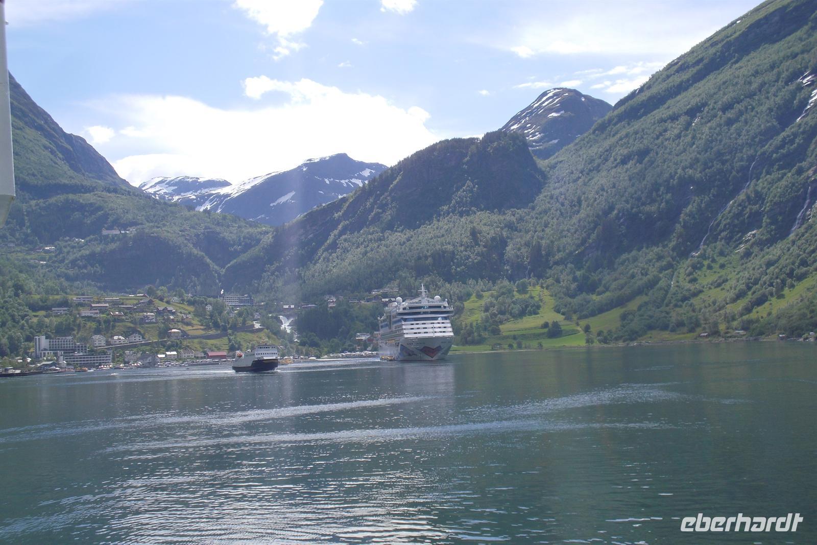 Heute starteten wir wieder gegen 8 Uhr, denn wir hatten volles Programm! Leider mußten wir Abschied von der schönen Stadt Ålesund nehmen, es ging nach Magerholm und von dort mit der Fähre über den Storfjord nach Ørsneset. Unser nächstes Ziel war Hellesylt, von wo wir zu einer etwa einstündigen Schifffahrt auf dem Geirangerfjord aufbrachen.