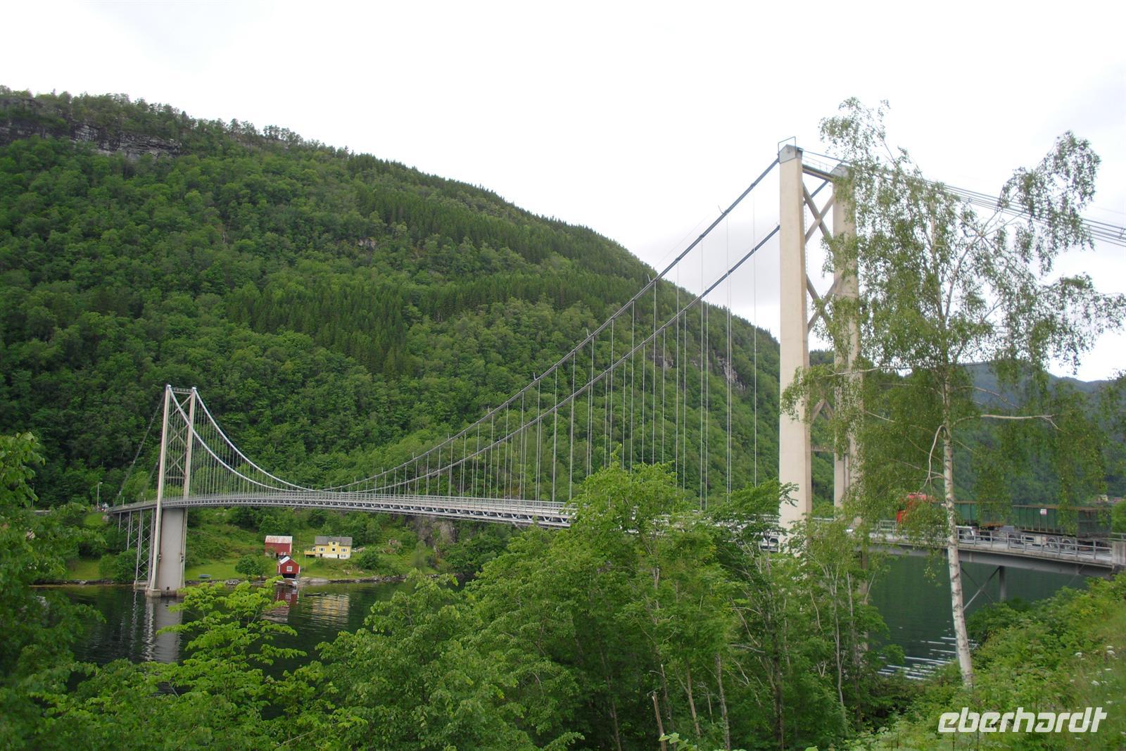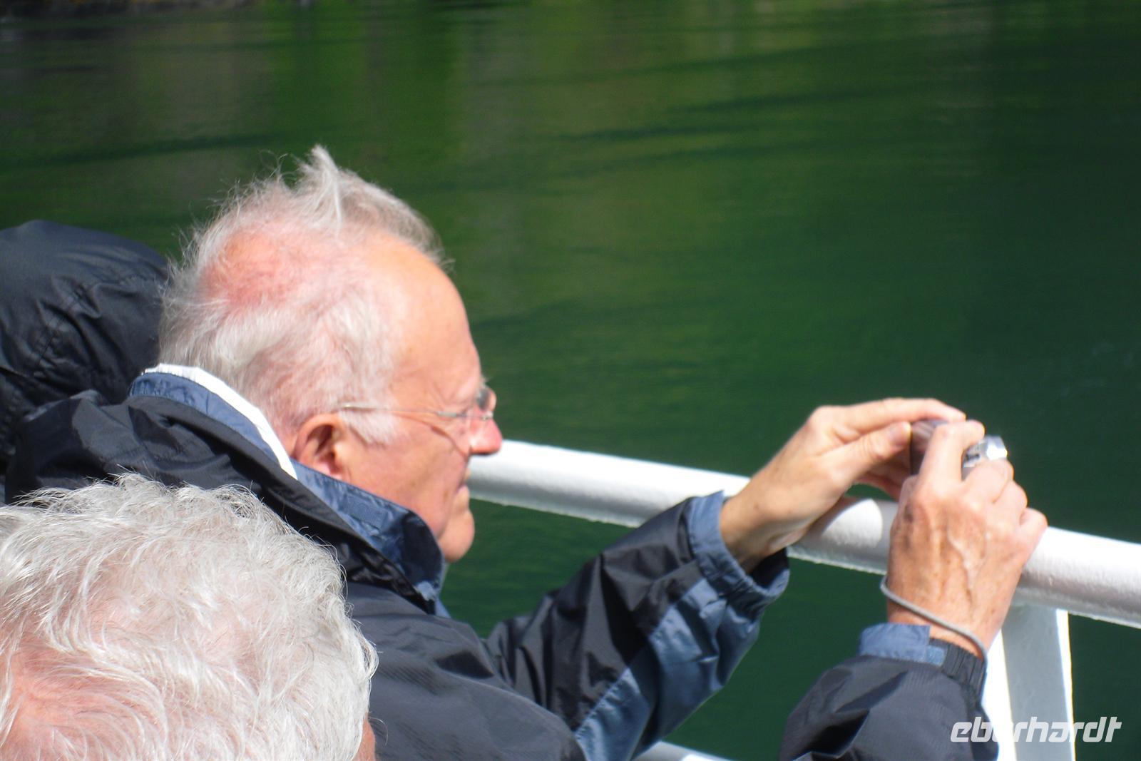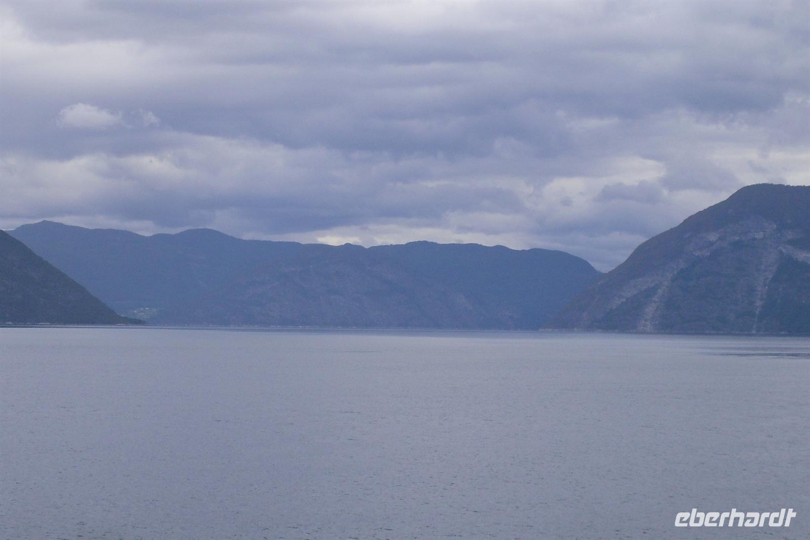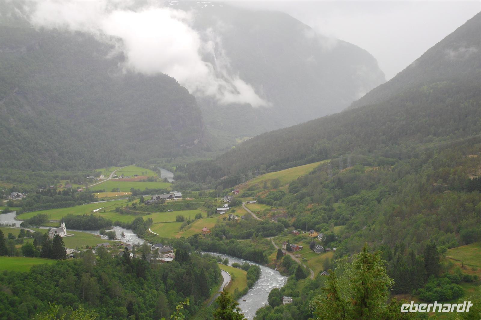 Die Passüberquerung ist eine der ältesten Verbindungswege zwischen Ost und West, sie war die Hauptroute vom gesamten Gudbrandsdal zu den Küstensiedlungen in Sogn und bis nach Bergen. An Waren wurden hier hauptsächlich Salz, Hering und Fisch aus dem Westen und Häute, Butter, und Eisen aus dem Osten transportiert - in beiden Richtungen auf dem eigenen Rücken oder zu Pferd. Unterwegs nutzten wir die reichlichen Möglichkeiten für Fotostopps, obwohl es das Wetter heute wieder mal nicht so gut mit uns meinte. Schließlich erreichten wir Skjolden am Lustrafjord bzw. am inneren Ende des Sognefjords, hier waren wir übrigens etwa 200 Kilometer vom Meer entfernt. Entlang der Nordseite des Lustrafjords und mit herrlichen Blicken auf den Fjord und die zahlreichen Wasserfälle erreichten wir Kaupanger, von wo wir pünktlich um 12 Uhr mit dem Schiff nach Gudvangen ablegten.