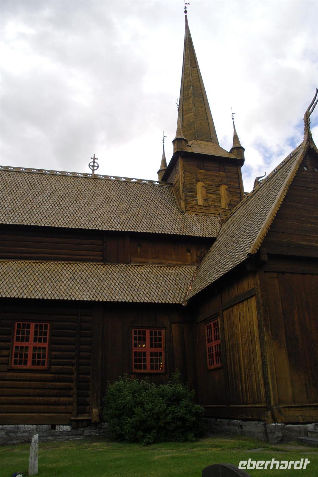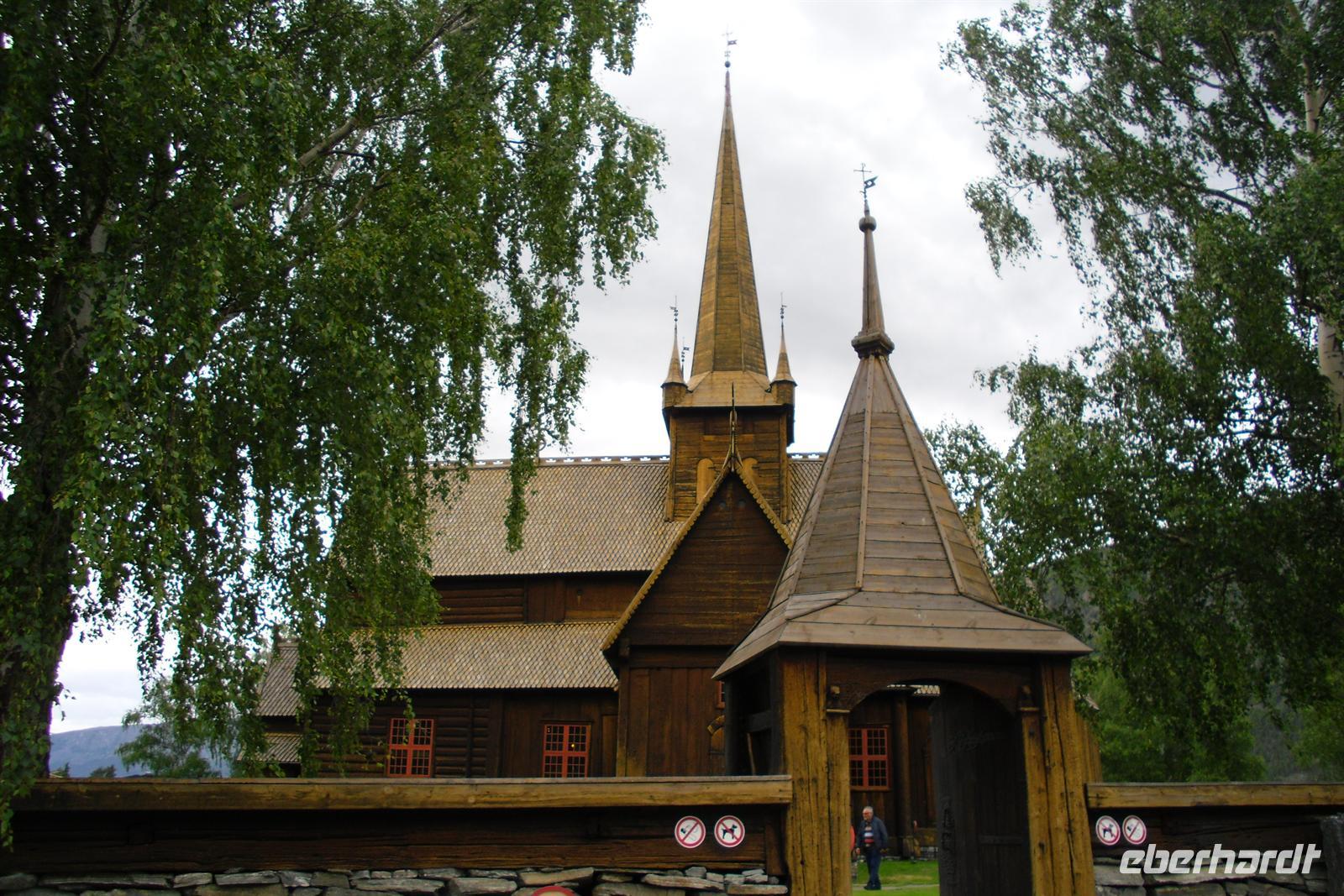 Zuvor gab es noch ein kleines "Sektfrühstück" oberhalb des Geirangerfjordes - na dann "Prost" oder wie man hier sagt ""Skol"! Der Geirangerfjord ist etwa 16 Kilometer lang und das Aushängeschild des norwegischen Tourismus schlechthin. Vom Schiff aus sahen wir die berühmten Wasserfälle „Die Sieben Schwestern“, „Brautschleier“ und „Freier“ - diese Fahrt war einzigartig, denn auch das Wetter spielte nun endlich mit! Von Geiranger aus ging es mit dem Bus hinauf zum Dalsnibba, dem berühmten knapp 1.500 Meter hohen Aussichtsberg oberhalb des Geirangerfjordes. Wir hatten grandioses Wetter, schon die Auffahrt war lohnenswert und mit herrlichen Panoramablicken versehen. Oben angekommen, genossen wir echte Thüringer Bratwurst vom Grill - einfach lecker! Anschließend ging es hinunter ins Ottatal und weiter nach Lom. In Lom besichtigten wir am späten Nachmittag eine der bedeutendsten noch existierenden Stabkirchen Norwegens. Wer ist nicht fasziniert, wenn er vor einer alten, völlig aus Holz gebauten Stabkirche steht, deren Giebeldächer steil übereinander geschichtet sind.
