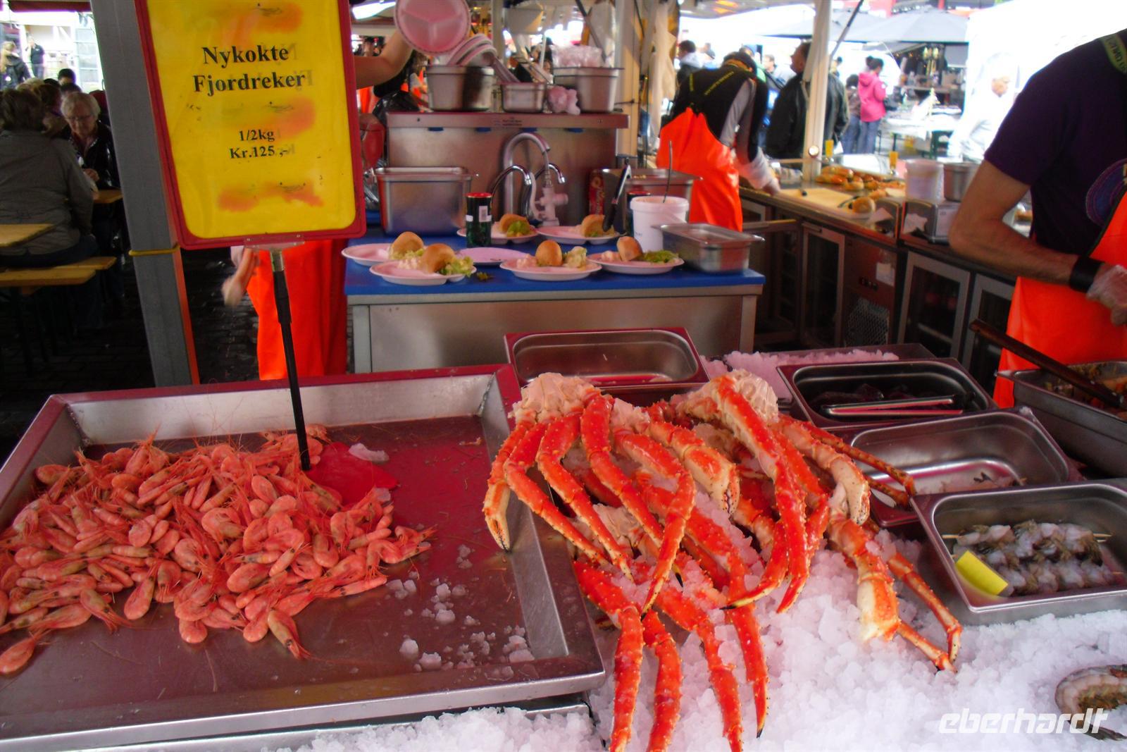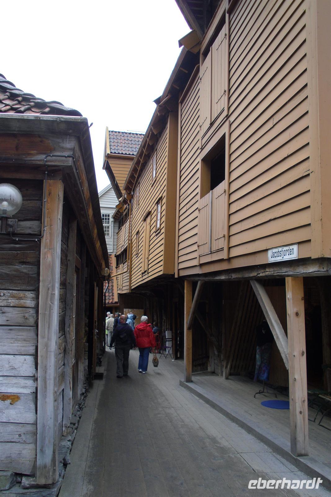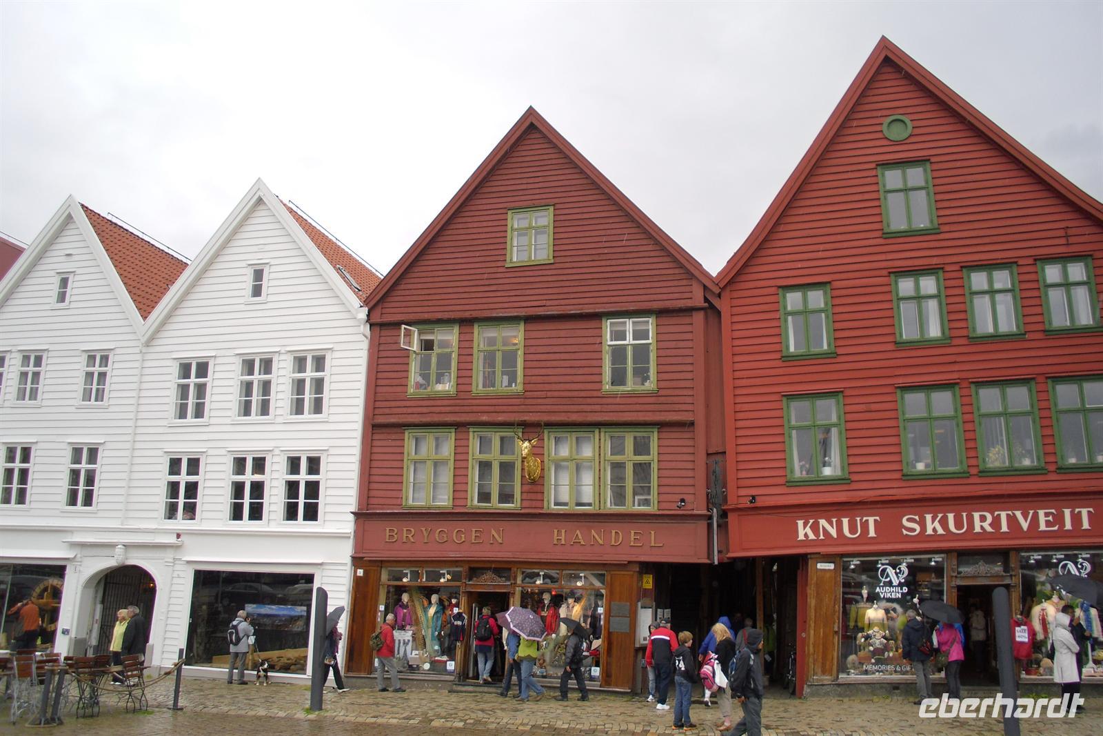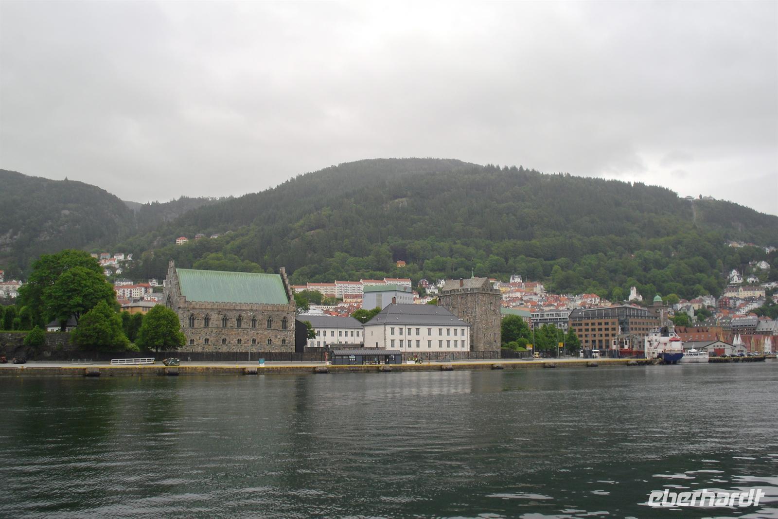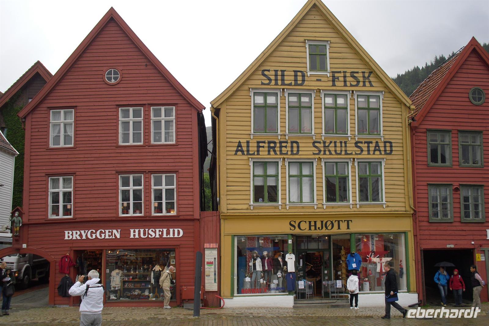 Viele Besucher kamen und gingen, andere ließen sich in der norwegischen Hafenstadt nieder. Viele Einheimische verließen ihre traute Umgebung und lernten während ihrer Wanderjahre andere Länder, Leute und Sitten kennen, ehe sie zurückkamen. So konnte sich Bergen zu einem Schmelztiegel verschiedener Kulturen und zu „Norwegens internationalster Stadt“ entwickeln. Bergen wuchs um den Hafen herum nach und nach zu einer Stadt heran. Handel, Schifffahrt und Handwerk waren ihre Existenzgrundlage. Schon früh wurde Bergen die größte Stadt des Nordens und Norwegens erste Haupt- und Residenzstadt des Königs. Bereits im 14. Jahrhundert war die Stadt so bedeutend geworden, dass die Hanseaten auf Bryggen ein Kontor gründeten, das noch heute zu sehen ist. Nachdem wir interessante Informationen über diese Stadt erhalten hatten, konnten wir heute mal nach individuellen Bedürfnissen bummeln und etwas Freizeit genießen.