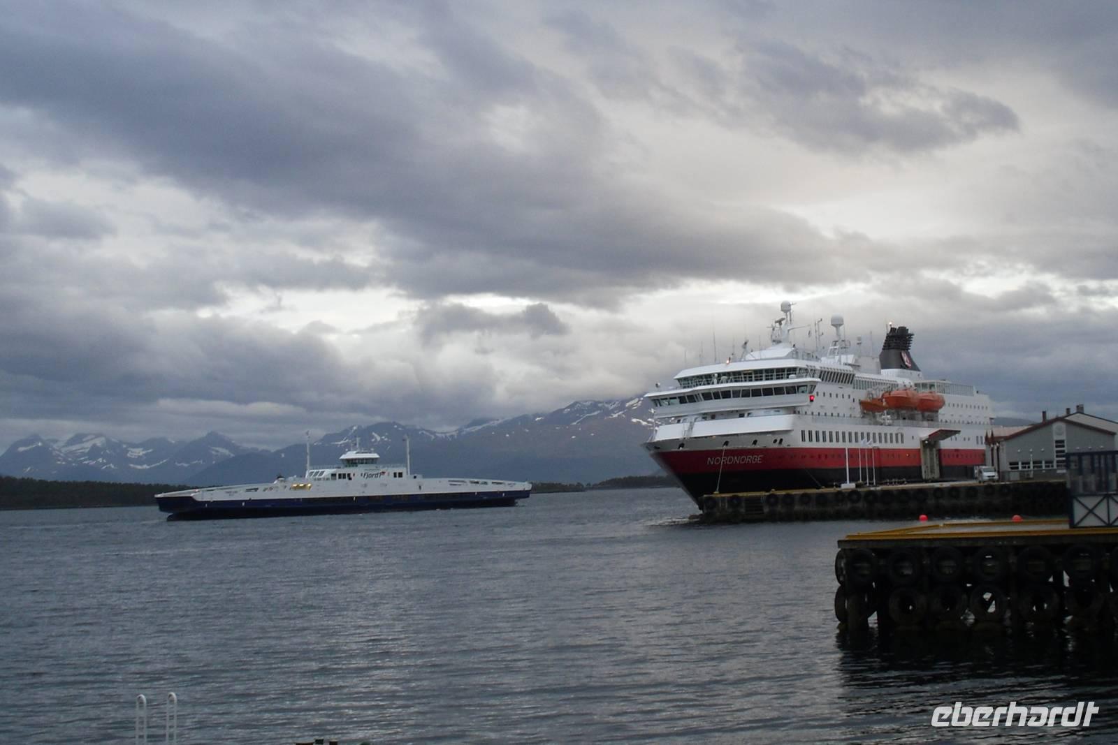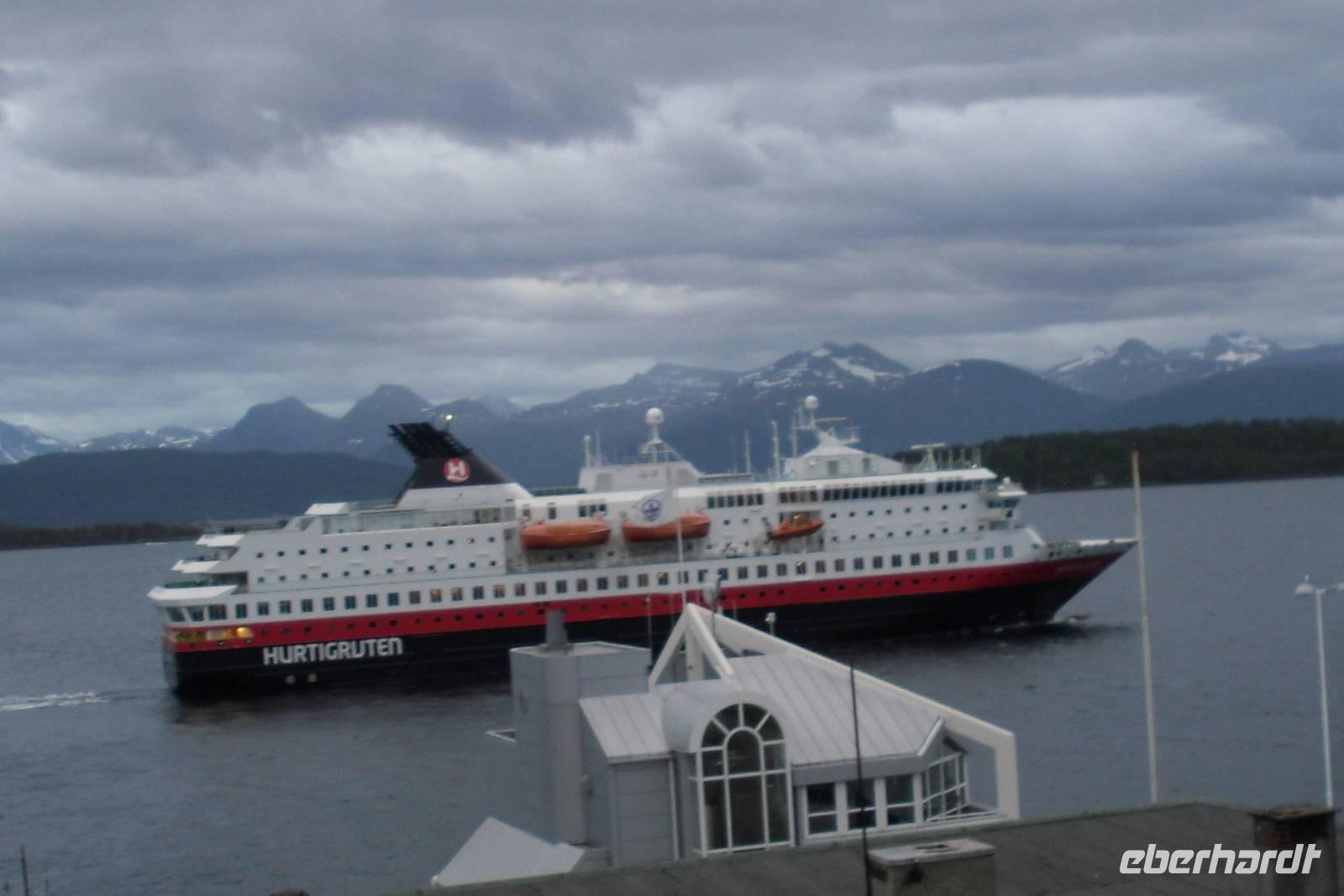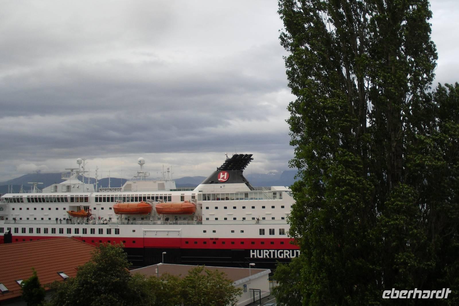 Nach dem reichhaltigen Frühstücksbuffet im Hotel machten wir einen kleinen Abstecher zum Wahrzeichen von Trondheim. Der über dem Grab von St. Olav errichtete Nidarosdom ist das Nationalheiligtum Norwegens. Mit dem Bau wurde 1070 begonnen, die ältesten noch erhaltenen Teile stammen aber aus der Mitte des 12. Jahrhunderts. Nach dieser kleinen Stippvisite brachte uns unser Bus zum Hurtigruten-Kai, dem Ausgangspunkt unserer kleinen Kreuzfahrt auf einem der Postschiffe! Unser Schiff, die MS "Nordlys", fährt seit 1994 in der Hurtigruten-Flotte. Wer Norwegen hautnah erleben will, der sollte unbedingt die Hurtigruten kennenlernen. Es handelt sich dabei um die traditionelle norwegische Postschifflinie, über die seit Ende des 19. Jahrhunderts die Ortschaften der westlichen Küste Norwegens, die etwa 2.700 Kilometer umfasst, miteinander verbunden werden. Zwischen Bergen und Kirkenes kreuzen hier Passagier-, Fracht- und Kreuzfahrtschiffe. Diese Strecke bietet somit eine einmalige Gelegenheit, die gesamte Westküste Norwegens mit all ihren Naturschönheiten kennenzulernen. Fjorde, raue und liebliche Landschaften und die Gastfreundschaft der Menschen machen Hurtigruten heute zu einer echten Touristenattraktion und was einst aus der Not heraus geboren wurde, nämlich auch abgelegene nördliche Landesteile mit dem klimatisch begünstigten Süden zu verbinden, ist inzwischen eine Sehenswürdigkeit. Natürlich erlebten wir auf unserer knapp 7-stündigen Fahrt nur eine kleine Etappe dieser eigentlich 13-tägigen Reise, aber immerhin hat man dadurch einen Eindruck von der sogenannten "Schönsten Seereise der Welt". Unser Buschauffeur Jens erwartete uns am späten Nachmittag in Kristiansund, um von dort aus weiter durch den Atlantiktunnel, einem im Dezember 2009 eröffneten und 5.469 Meter langen unterseeischen Straßentunnel (größte Tiefe 243 Meter!), auf die Insel Averøy zu gelangen. Averøy ist eine der größten Fischereigemeinden Norwegens in einer traumhaft schönen Lage am Meer. Die Küste ist von unzähligen Inseln, Holmen und Schären geprägt. Nun erwartete uns ein weiterer Höhepunkt unserer Reise - die Fahrt auf der Atlantikstraße! Die Strecke wurde 2005 zum Bauwerk des Jahrhunderts in Norwegen gekürt. Dies ist eine einzigartige Straße, die uns bis ans offene Meer führte. Die etwa 8 Kilometer lange Strecke mit gigantischen Brücken und zahlreichen Dämmen wurde 1989 eröffnet und verbindet die Insel Averøy mit dem Festland. Am Abend erreichten wir Molde, unser heutiges Etappenziel. Dort angekommen, bezogen wir sofort unsere Zimmer im Quality Hotel Alexandra, direkt gegenüber des Hurtigruten-Kais. Trotz etwas Regens unternahmen einige Gäste noch einen kleinen Spaziergang durch die sogenannte "Stadt der Rosen". Aufgrund des günstigen Lokalklimas können hier nämlich etliche Arten von Rosen besonders üppig wachsen.