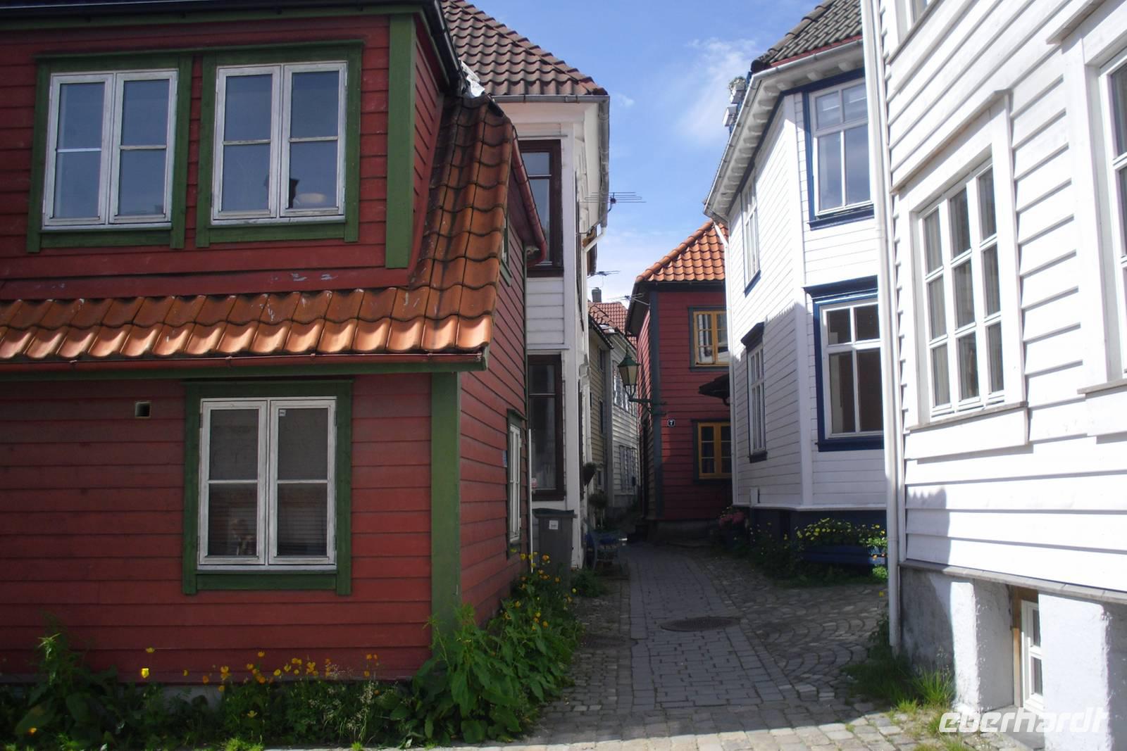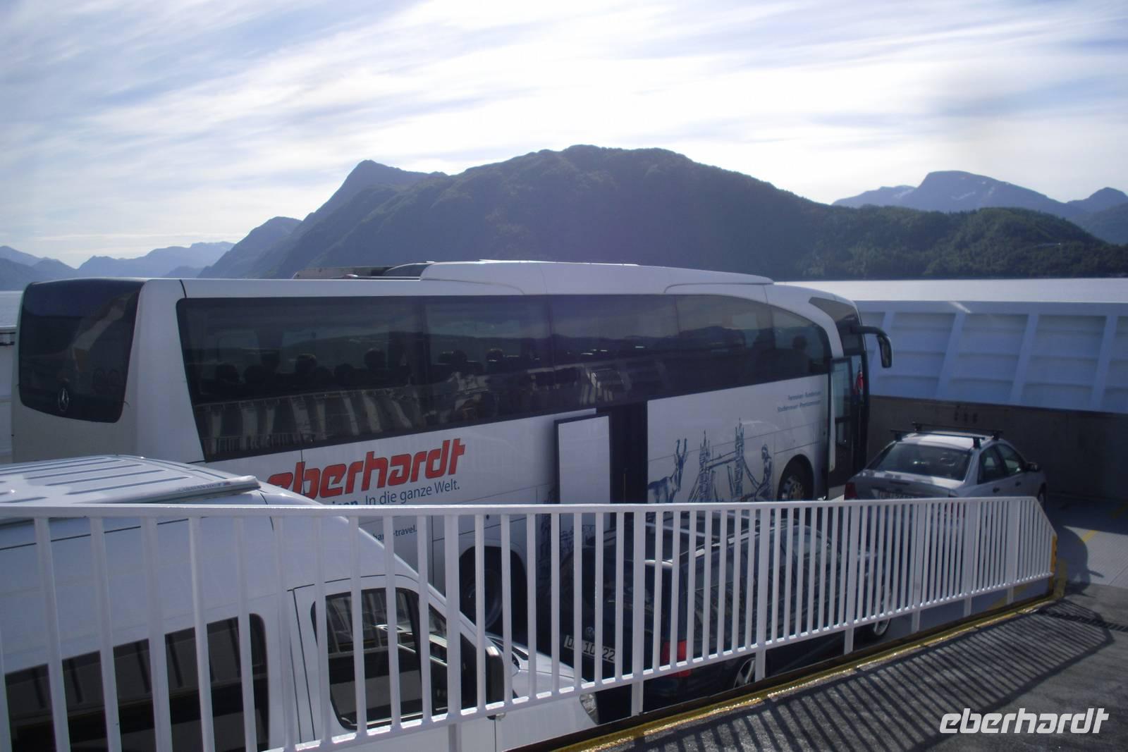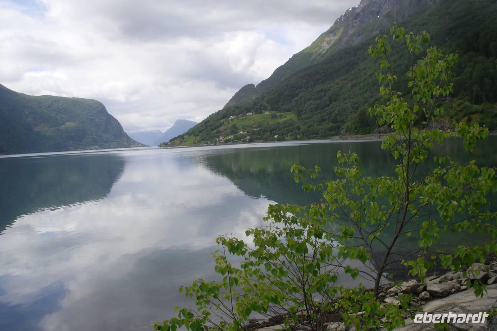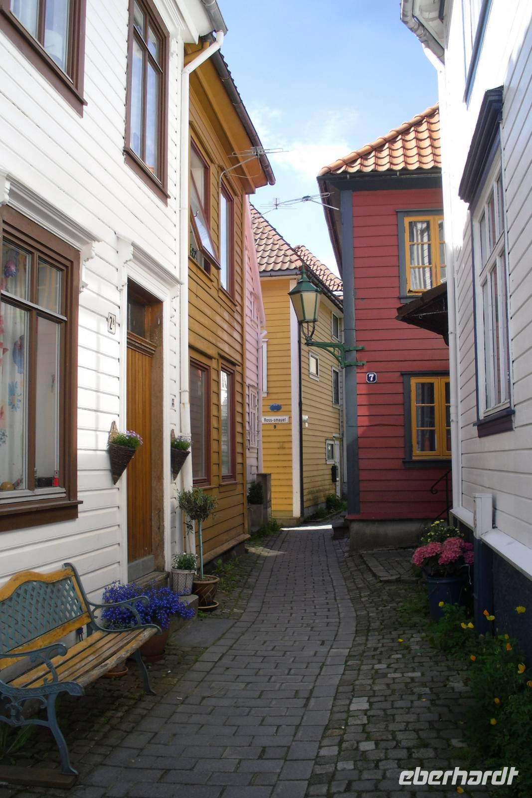 Wir fuhren heute über die Sognefjellstraße, der Reichsstraße 55. Der mit 1.434 Metern höchstgelegene Gebirgspass Nordeuropas ist seit 1938 für Autos befahrbar. Die Passüberquerung ist eine der ältesten Verbindungswege zwischen Ost und West, sie war die Hauptroute vom gesamten Gudbrandsdal zu den Küstensiedlungen in Sogn und bis nach Bergen. An Waren wurden hier hauptsächlich Salz, Hering und Fisch aus dem Westen und Häute, Butter, und Eisen aus dem Osten transportiert - in beiden Richtungen auf dem eigenen Rücken oder zu Pferd. Unterwegs nutzten wir die reichlichen Möglichkeiten für Fotostopps, obwohl es das Wetter heute wieder mal nicht so gut mit uns meinte. Schließlich erreichten wir Skjolden am Lustrafjord bzw. am inneren Ende des Sognefjords, hier waren wir übrigens etwa 200 Kilometer vom Meer entfernt. Entlang der Nordseite des Lustrafjords und mit herrlichen Blicken auf den Fjord und die zahlreichen Wasserfälle erreichten wir Kaupanger, von wo wir am Nachmittag mit dem Schiff nach Gudvangen ablegten. Nach einer herrlichen Fahrt durch die verschiedenen Fjordarme des Sognefjordes kamen wir am späten Nachmittag in Gudvangen, am südlichen Ende des schmalen Nærøyfjordes, an. Mit dem Bus fuhren wir nun in Richtung Bergen weiter. Auf unserem Weg dorthin legten wir einen Stopp am Tvindefoss ein, ein herrlicher Wasserfall - eine wahre „Wassersymphonie"! Schließlich erreichten wir Voss, das administrative, kommerzielle und touristische Zentrum eines ausgedehnten Tals (Vossevangen) inmitten der Bergwelt zwischen Sogne- und Hardangerfjord. Die fruchtbaren Böden haben die Region zum bedeutendsten landwirtschaftlichen Nutzgebiet nach Südostnorwegen, Trondheimgebiet und Gudbrandsdal gemacht. Am Abend erreichten wir schließlich das zentral gelegenes Best Western Hotel Hordaheimen in Bergen, unser Domizil für die nächsten zwei Nächte. Leider wirkte das Hotel von außen nicht gerade einladend, das komplette Hotel war eingerüstet und nicht als Hotel wahr zu nehmen. Nichts desto trotz - die Zimmer waren größtenteils in Ordnung und die ideale Lage unweit des Naturhafens Vågen überzeugte letztendlich.