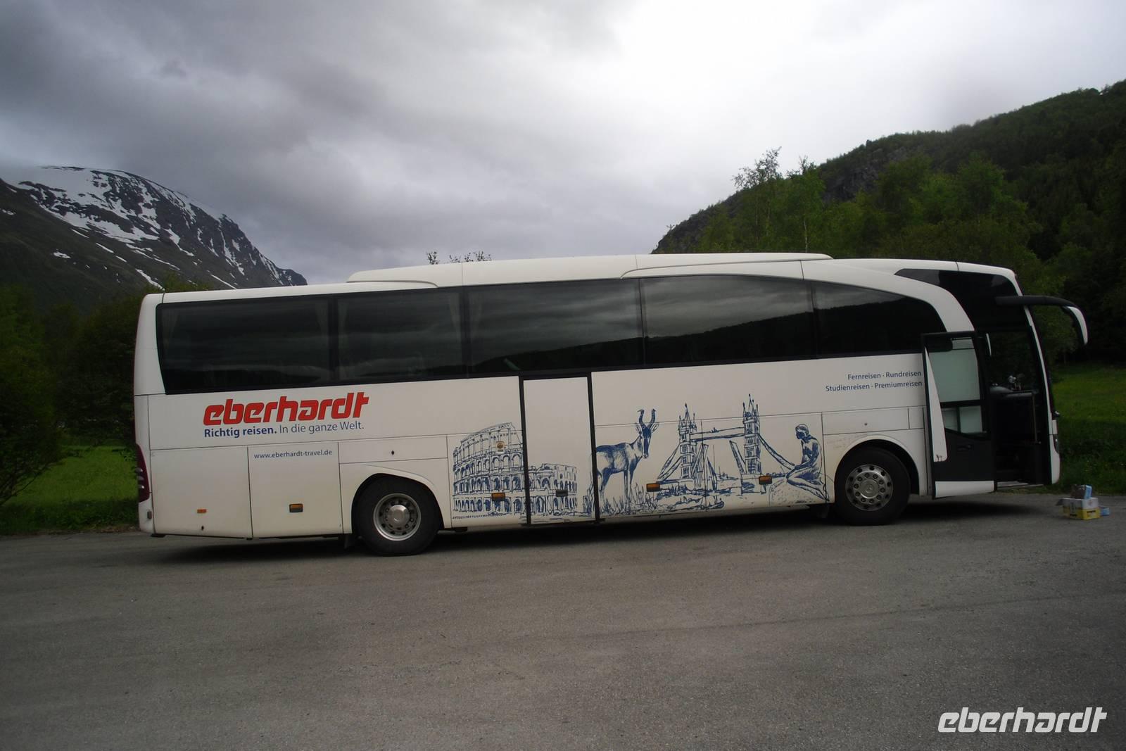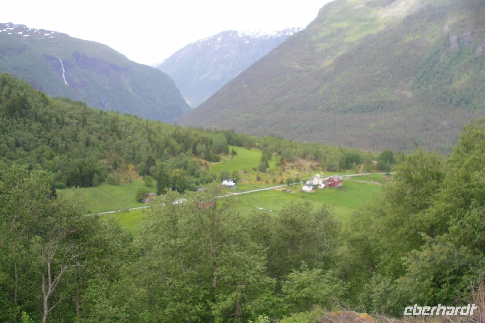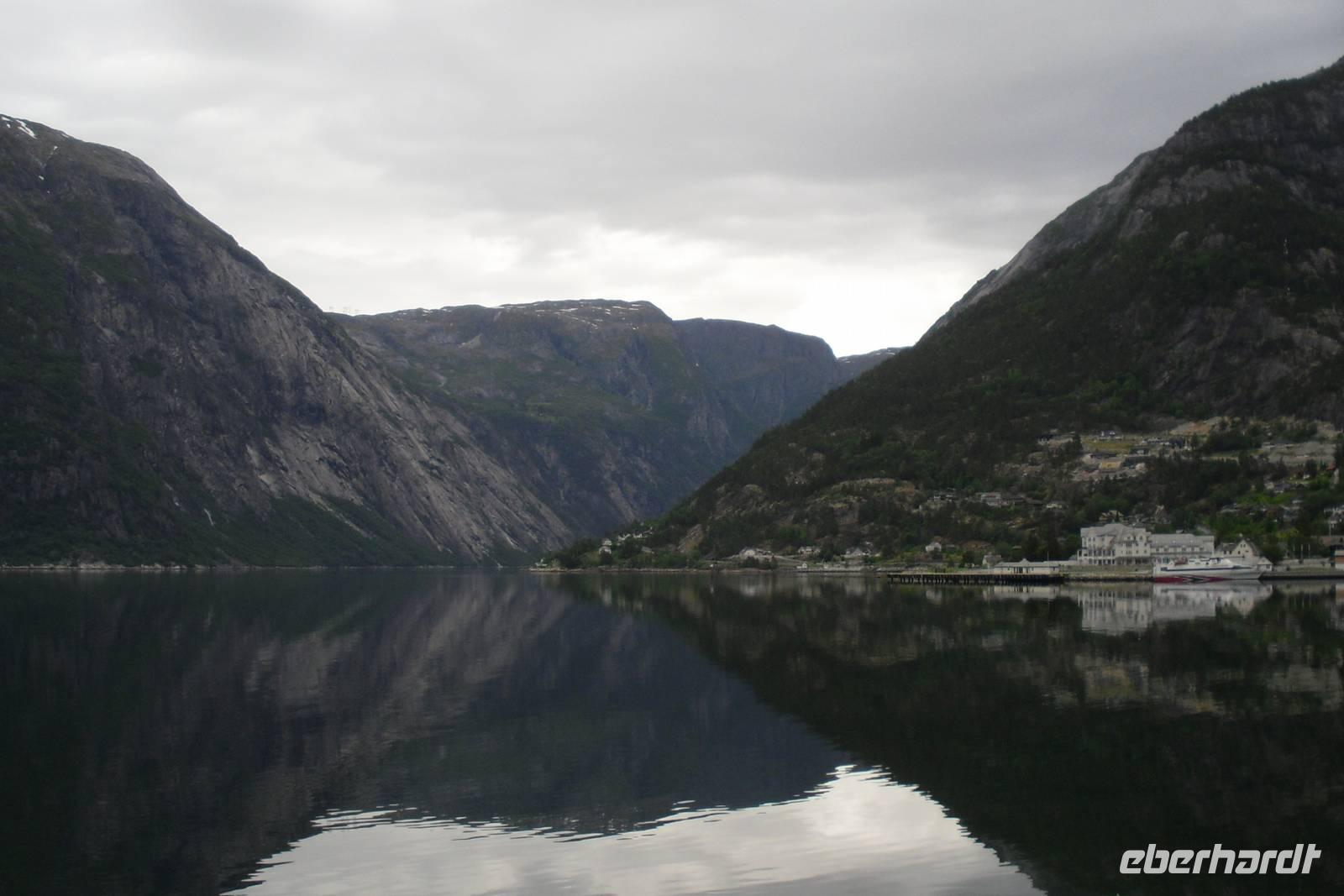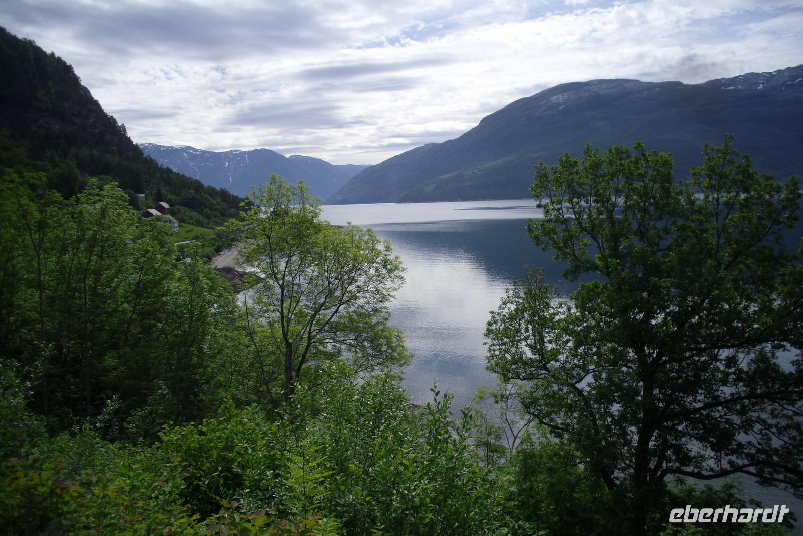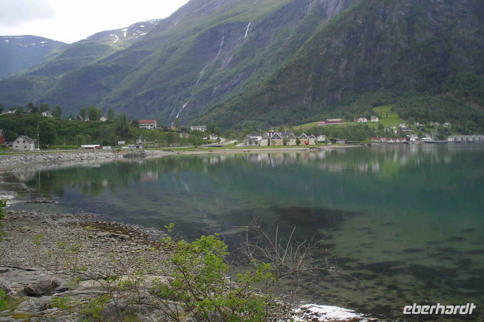 Wir fuhren heute über die Sognefjellstraße, der Reichsstraße 55. Der mit 1.434 Metern höchstgelegene Gebirgspass Nordeuropas ist seit 1938 für Autos befahrbar. Die Passüberquerung ist eine der ältesten Verbindungswege zwischen Ost und West, sie war die Hauptroute vom gesamten Gudbrandsdal zu den Küstensiedlungen in Sogn und bis nach Bergen. An Waren wurden hier hauptsächlich Salz, Hering und Fisch aus dem Westen und Häute, Butter, und Eisen aus dem Osten transportiert - in beiden Richtungen auf dem eigenen Rücken oder zu Pferd. Unterwegs nutzten wir die reichlichen Möglichkeiten für Fotostopps, obwohl es das Wetter heute wieder mal nicht so gut mit uns meinte. Schließlich erreichten wir Skjolden am Lustrafjord bzw. am inneren Ende des Sognefjords, hier waren wir übrigens etwa 200 Kilometer vom Meer entfernt. Entlang der Nordseite des Lustrafjords und mit herrlichen Blicken auf den Fjord und die zahlreichen Wasserfälle erreichten wir Kaupanger, von wo wir am Nachmittag mit dem Schiff nach Gudvangen ablegten. Nach einer herrlichen Fahrt durch die verschiedenen Fjordarme des Sognefjordes kamen wir am späten Nachmittag in Gudvangen, am südlichen Ende des schmalen Nærøyfjordes, an. Mit dem Bus fuhren wir nun in Richtung Bergen weiter. Auf unserem Weg dorthin legten wir einen Stopp am Tvindefoss ein, ein herrlicher Wasserfall - eine wahre „Wassersymphonie"! Schließlich erreichten wir Voss, das administrative, kommerzielle und touristische Zentrum eines ausgedehnten Tals (Vossevangen) inmitten der Bergwelt zwischen Sogne- und Hardangerfjord. Die fruchtbaren Böden haben die Region zum bedeutendsten landwirtschaftlichen Nutzgebiet nach Südostnorwegen, Trondheimgebiet und Gudbrandsdal gemacht. Am Abend erreichten wir schließlich das zentral gelegenes Best Western Hotel Hordaheimen in Bergen, unser Domizil für die nächsten zwei Nächte. Leider wirkte das Hotel von außen nicht gerade einladend, das komplette Hotel war eingerüstet und nicht als Hotel wahr zu nehmen. Nichts desto trotz - die Zimmer waren größtenteils in Ordnung und die ideale Lage unweit des Naturhafens Vågen überzeugte letztendlich.