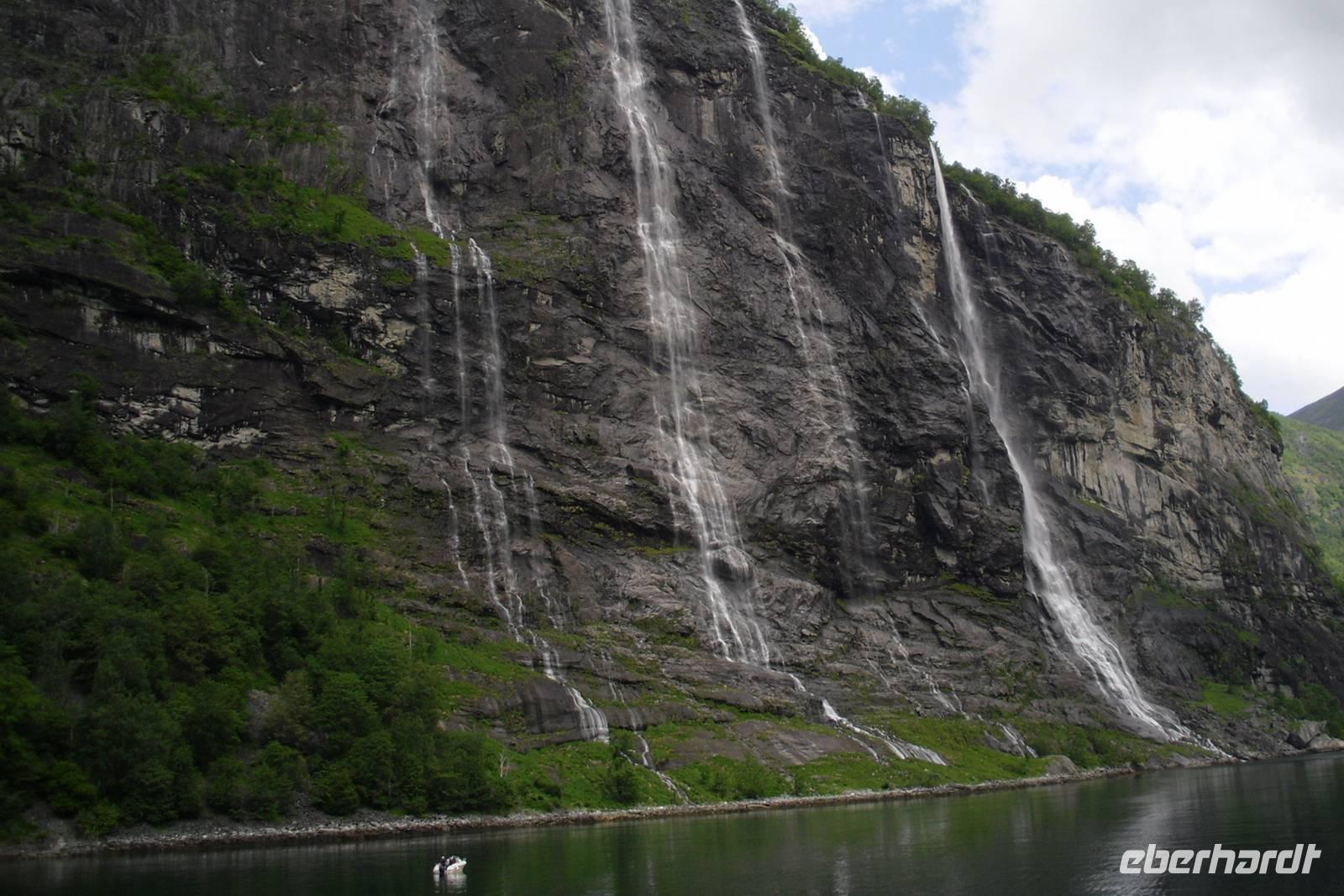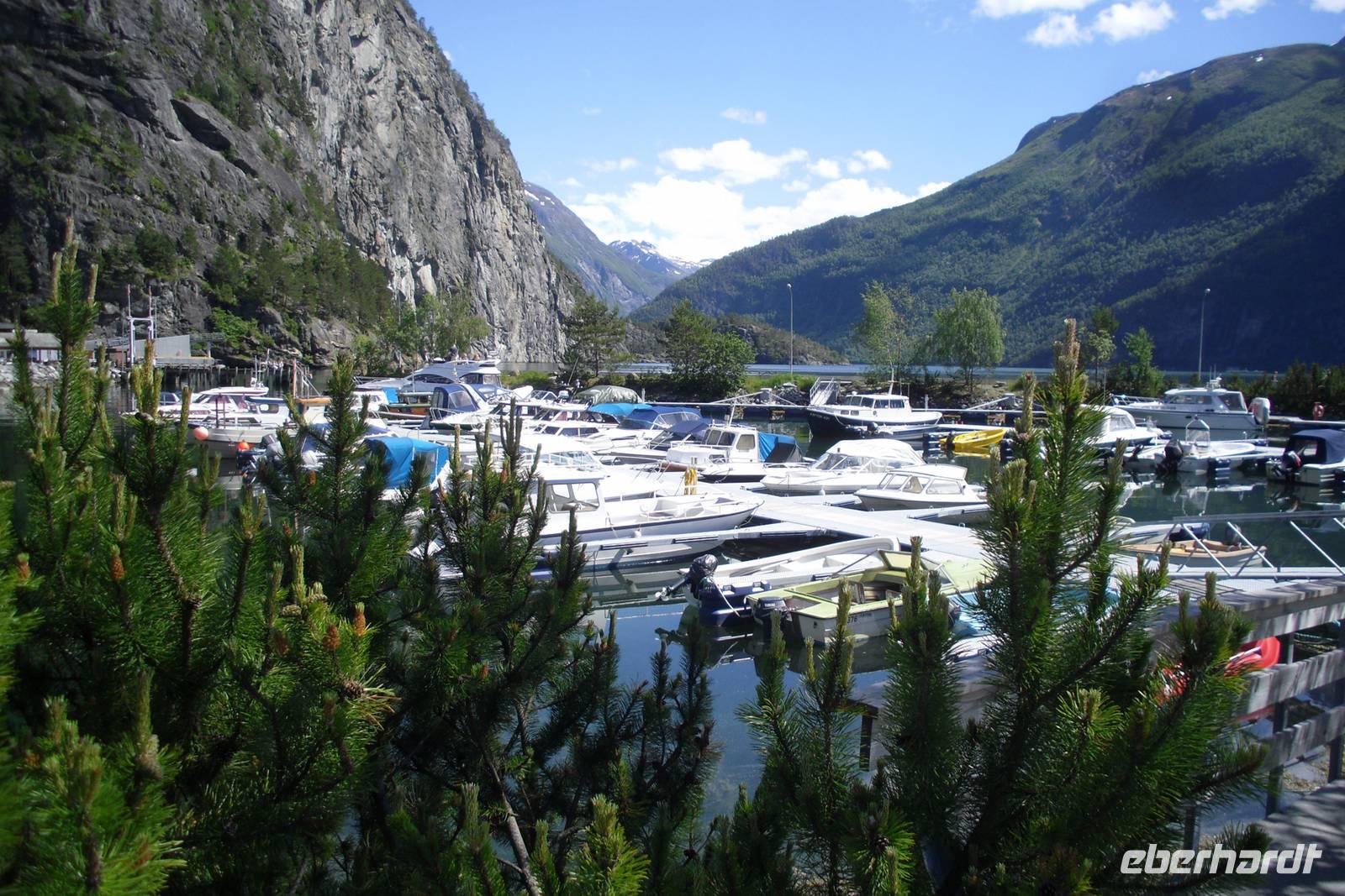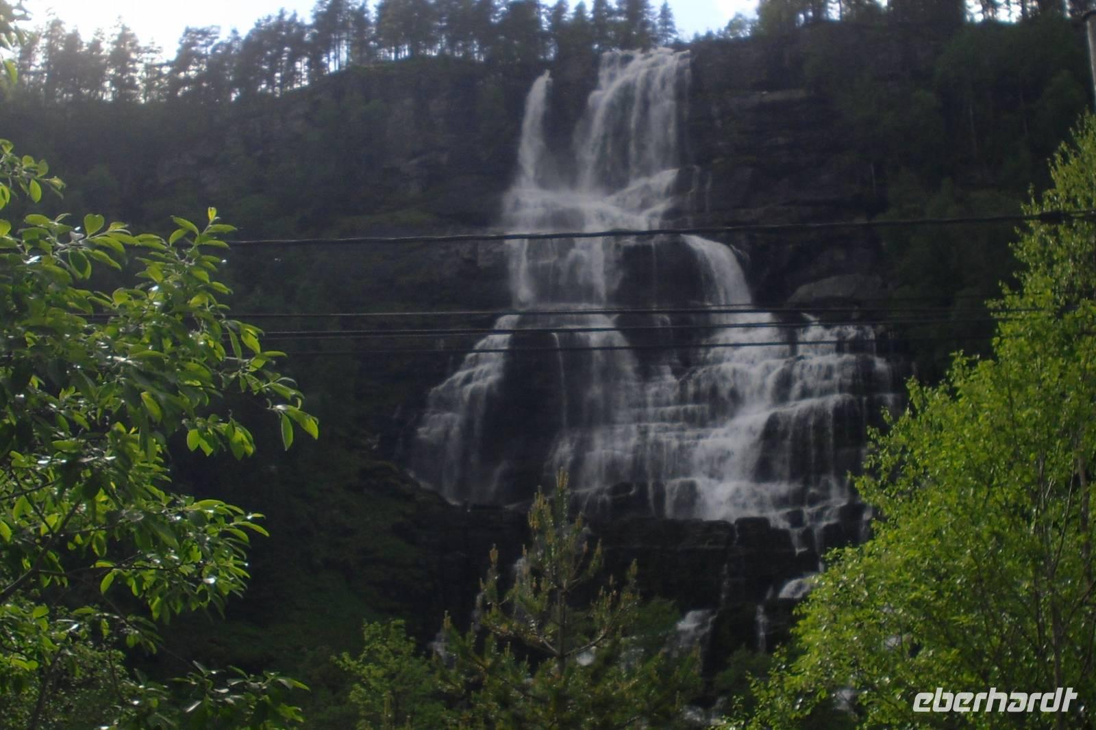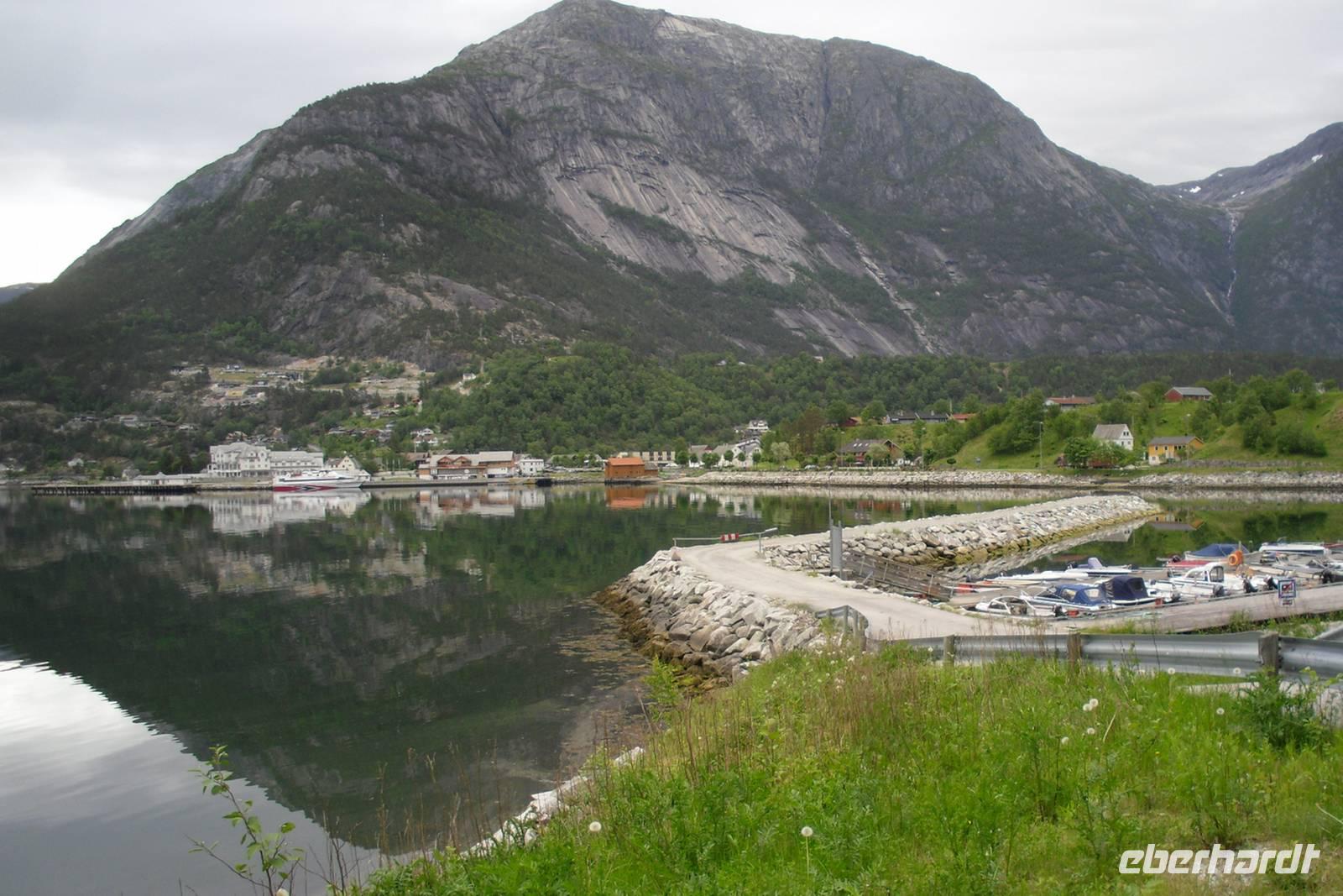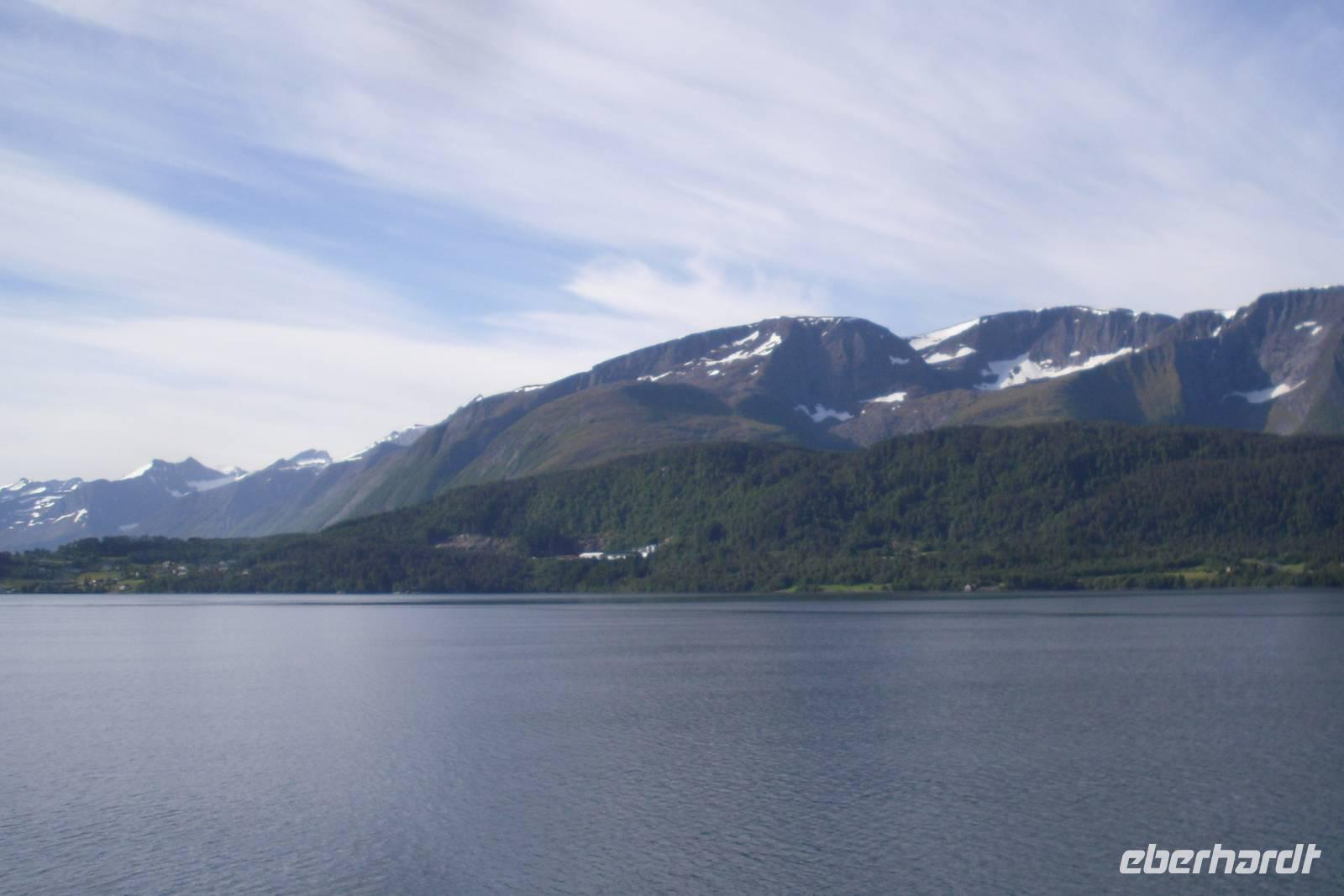 Wir fuhren heute über die Sognefjellstraße, der Reichsstraße 55. Der mit 1.434 Metern höchstgelegene Gebirgspass Nordeuropas ist seit 1938 für Autos befahrbar. Die Passüberquerung ist eine der ältesten Verbindungswege zwischen Ost und West, sie war die Hauptroute vom gesamten Gudbrandsdal zu den Küstensiedlungen in Sogn und bis nach Bergen. An Waren wurden hier hauptsächlich Salz, Hering und Fisch aus dem Westen und Häute, Butter, und Eisen aus dem Osten transportiert - in beiden Richtungen auf dem eigenen Rücken oder zu Pferd. Unterwegs nutzten wir die reichlichen Möglichkeiten für Fotostopps, obwohl es das Wetter heute wieder mal nicht so gut mit uns meinte. Schließlich erreichten wir Skjolden am Lustrafjord bzw. am inneren Ende des Sognefjords, hier waren wir übrigens etwa 200 Kilometer vom Meer entfernt. Entlang der Nordseite des Lustrafjords und mit herrlichen Blicken auf den Fjord und die zahlreichen Wasserfälle erreichten wir Kaupanger, von wo wir am Nachmittag mit dem Schiff nach Gudvangen ablegten. Nach einer herrlichen Fahrt durch die verschiedenen Fjordarme des Sognefjordes kamen wir am späten Nachmittag in Gudvangen, am südlichen Ende des schmalen Nærøyfjordes, an. Mit dem Bus fuhren wir nun in Richtung Bergen weiter. Auf unserem Weg dorthin legten wir einen Stopp am Tvindefoss ein, ein herrlicher Wasserfall - eine wahre „Wassersymphonie"! Schließlich erreichten wir Voss, das administrative, kommerzielle und touristische Zentrum eines ausgedehnten Tals (Vossevangen) inmitten der Bergwelt zwischen Sogne- und Hardangerfjord. Die fruchtbaren Böden haben die Region zum bedeutendsten landwirtschaftlichen Nutzgebiet nach Südostnorwegen, Trondheimgebiet und Gudbrandsdal gemacht. Am Abend erreichten wir schließlich das zentral gelegenes Best Western Hotel Hordaheimen in Bergen, unser Domizil für die nächsten zwei Nächte. Leider wirkte das Hotel von außen nicht gerade einladend, das komplette Hotel war eingerüstet und nicht als Hotel wahr zu nehmen. Nichts desto trotz - die Zimmer waren größtenteils in Ordnung und die ideale Lage unweit des Naturhafens Vågen überzeugte letztendlich.