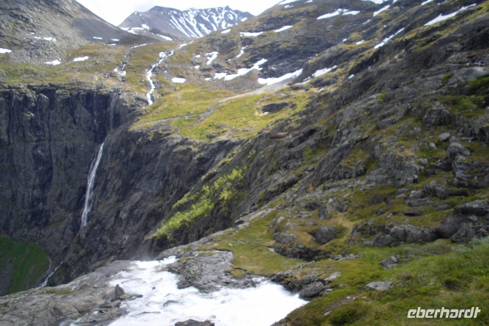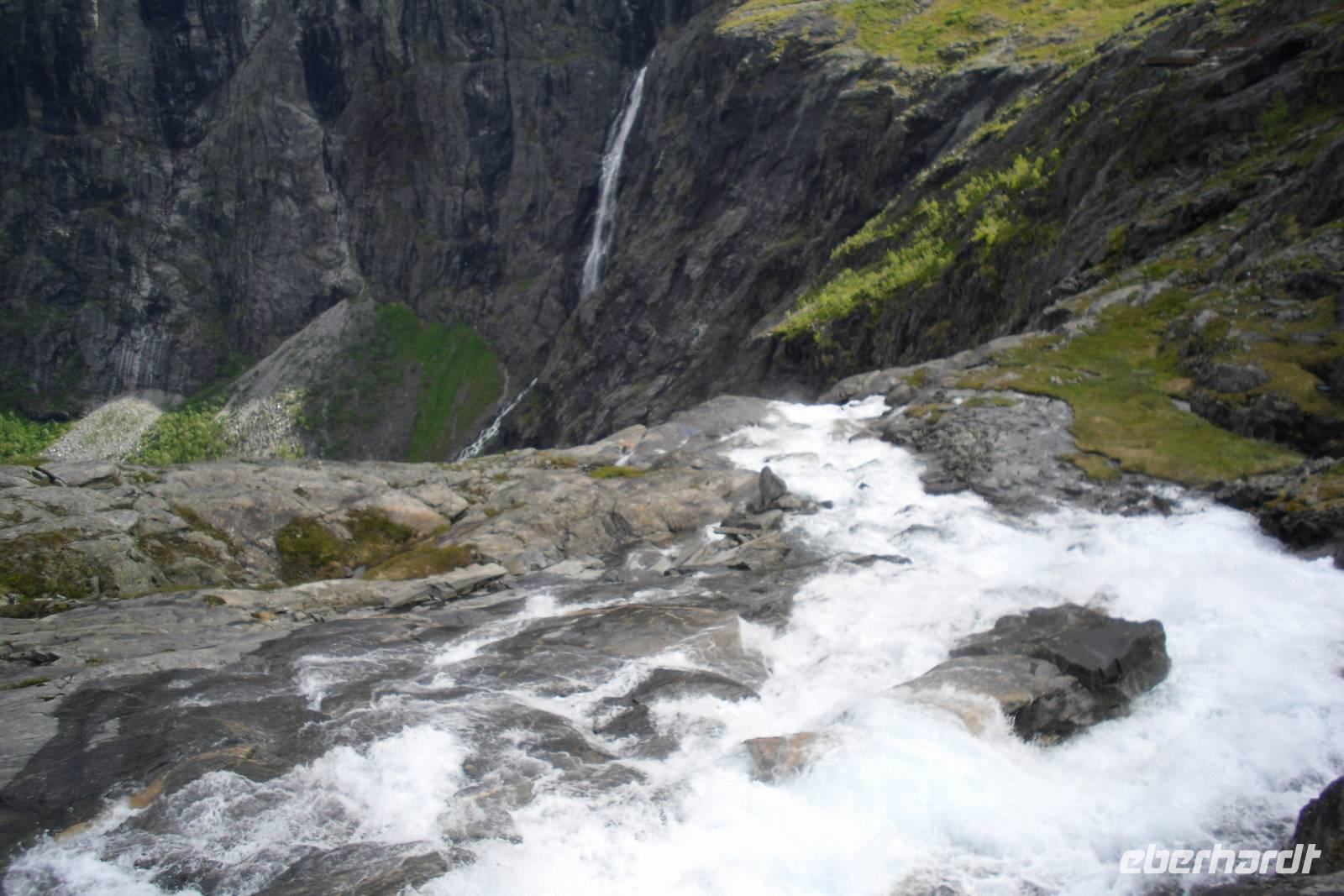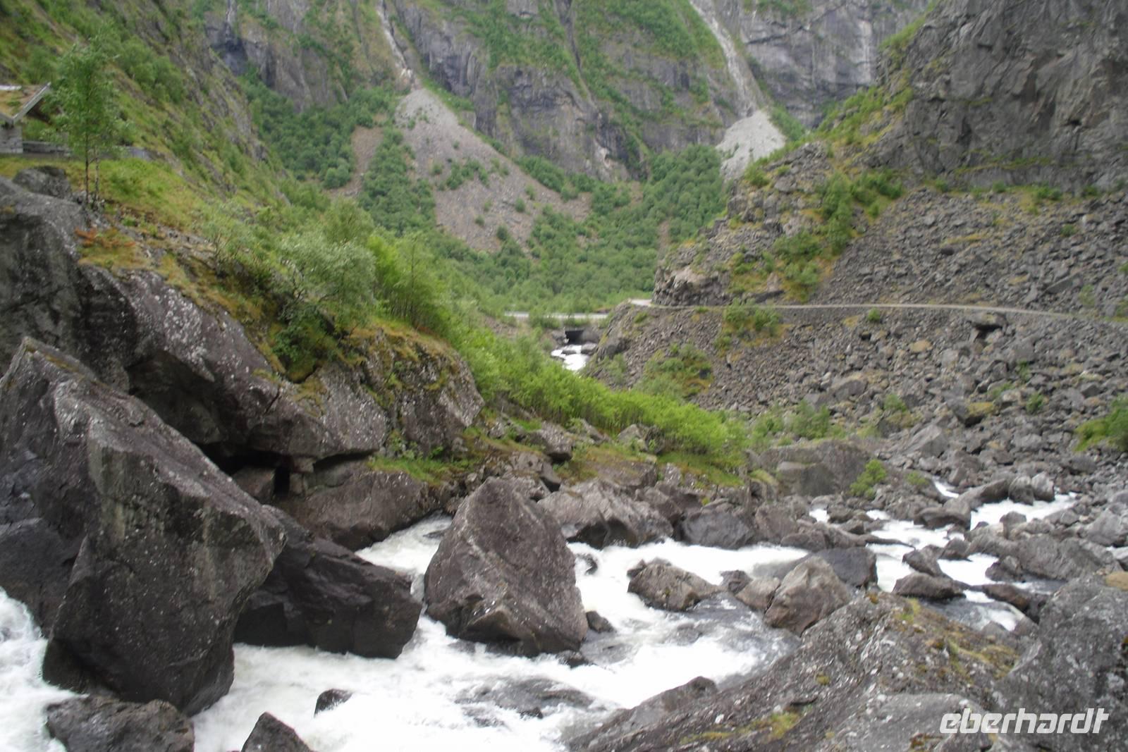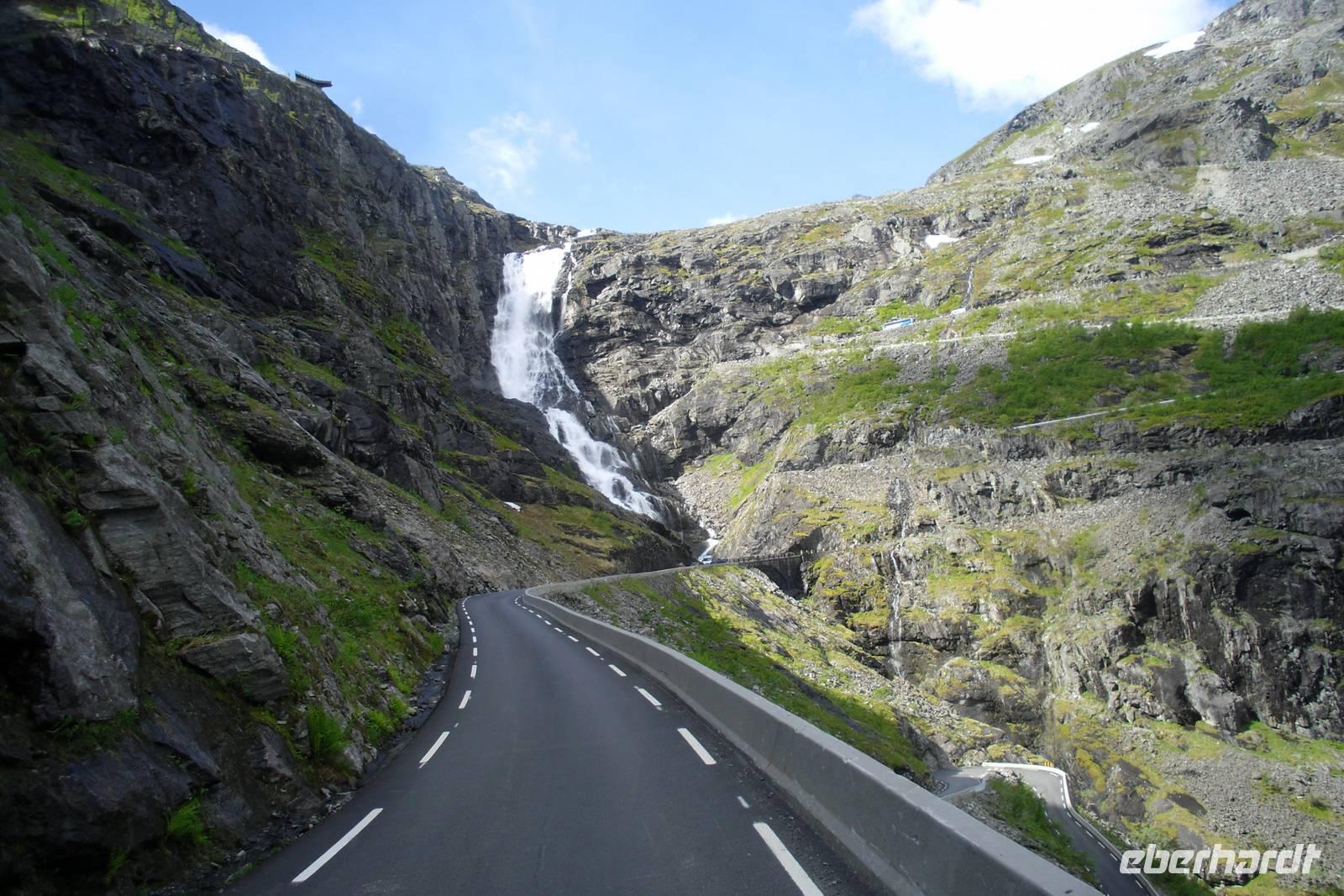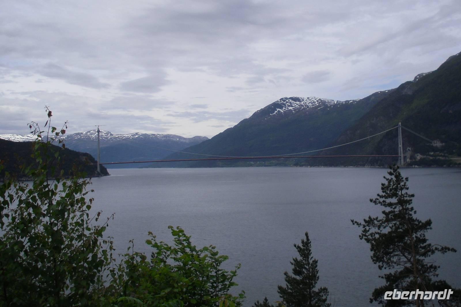 Wir fuhren heute über die Sognefjellstraße, der Reichsstraße 55. Der mit 1.434 Metern höchstgelegene Gebirgspass Nordeuropas ist seit 1938 für Autos befahrbar. Die Passüberquerung ist eine der ältesten Verbindungswege zwischen Ost und West, sie war die Hauptroute vom gesamten Gudbrandsdal zu den Küstensiedlungen in Sogn und bis nach Bergen. An Waren wurden hier hauptsächlich Salz, Hering und Fisch aus dem Westen und Häute, Butter, und Eisen aus dem Osten transportiert - in beiden Richtungen auf dem eigenen Rücken oder zu Pferd. Unterwegs nutzten wir die reichlichen Möglichkeiten für Fotostopps, obwohl es das Wetter heute wieder mal nicht so gut mit uns meinte. Schließlich erreichten wir Skjolden am Lustrafjord bzw. am inneren Ende des Sognefjords, hier waren wir übrigens etwa 200 Kilometer vom Meer entfernt. Entlang der Nordseite des Lustrafjords und mit herrlichen Blicken auf den Fjord und die zahlreichen Wasserfälle erreichten wir Kaupanger, von wo wir am Nachmittag mit dem Schiff nach Gudvangen ablegten. Nach einer herrlichen Fahrt durch die verschiedenen Fjordarme des Sognefjordes kamen wir am späten Nachmittag in Gudvangen, am südlichen Ende des schmalen Nærøyfjordes, an. Mit dem Bus fuhren wir nun in Richtung Bergen weiter. Auf unserem Weg dorthin legten wir einen Stopp am Tvindefoss ein, ein herrlicher Wasserfall - eine wahre „Wassersymphonie"! Schließlich erreichten wir Voss, das administrative, kommerzielle und touristische Zentrum eines ausgedehnten Tals (Vossevangen) inmitten der Bergwelt zwischen Sogne- und Hardangerfjord. Die fruchtbaren Böden haben die Region zum bedeutendsten landwirtschaftlichen Nutzgebiet nach Südostnorwegen, Trondheimgebiet und Gudbrandsdal gemacht. Am Abend erreichten wir schließlich das zentral gelegenes Best Western Hotel Hordaheimen in Bergen, unser Domizil für die nächsten zwei Nächte. Leider wirkte das Hotel von außen nicht gerade einladend, das komplette Hotel war eingerüstet und nicht als Hotel wahr zu nehmen. Nichts desto trotz - die Zimmer waren größtenteils in Ordnung und die ideale Lage unweit des Naturhafens Vågen überzeugte letztendlich.