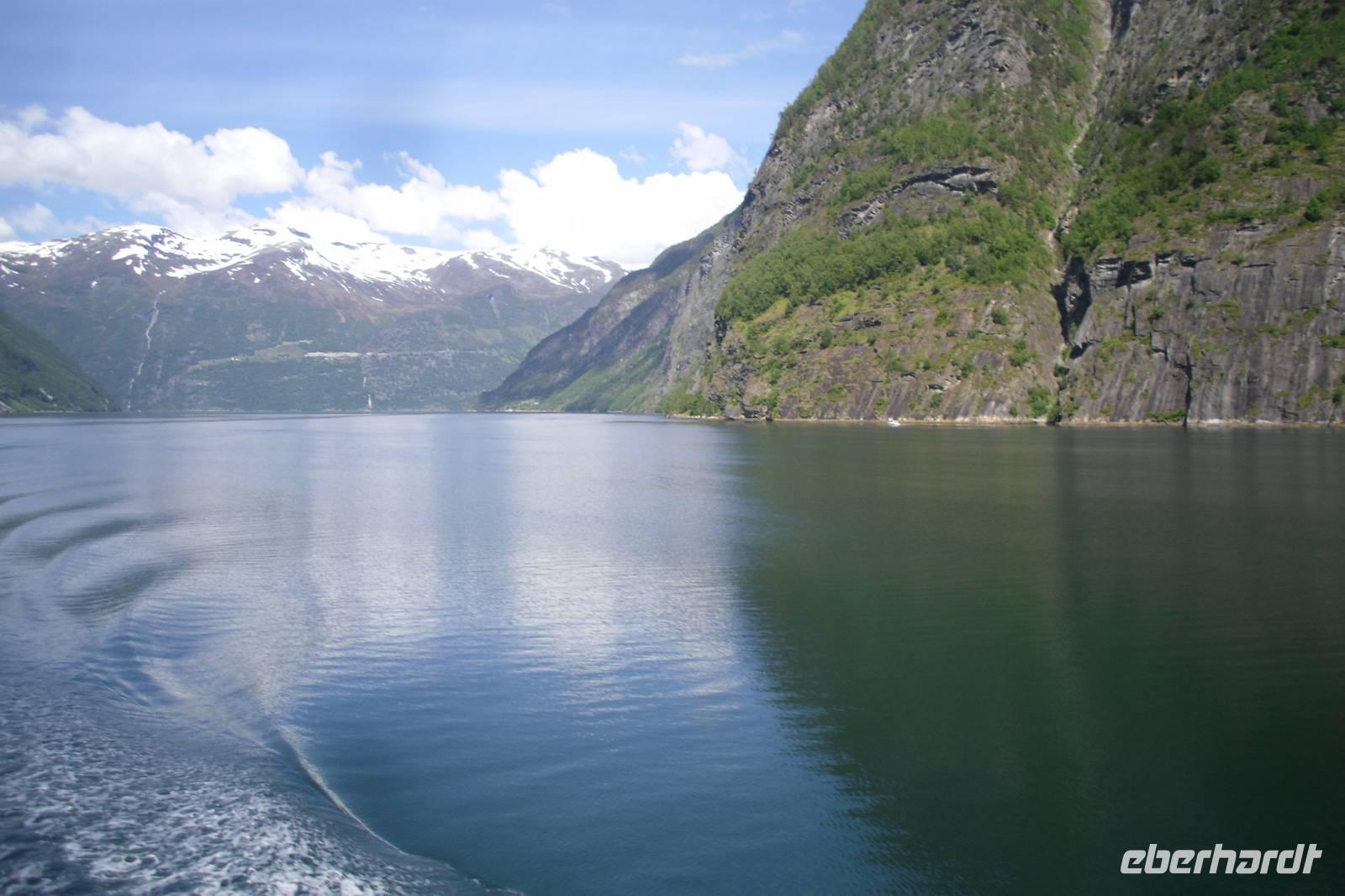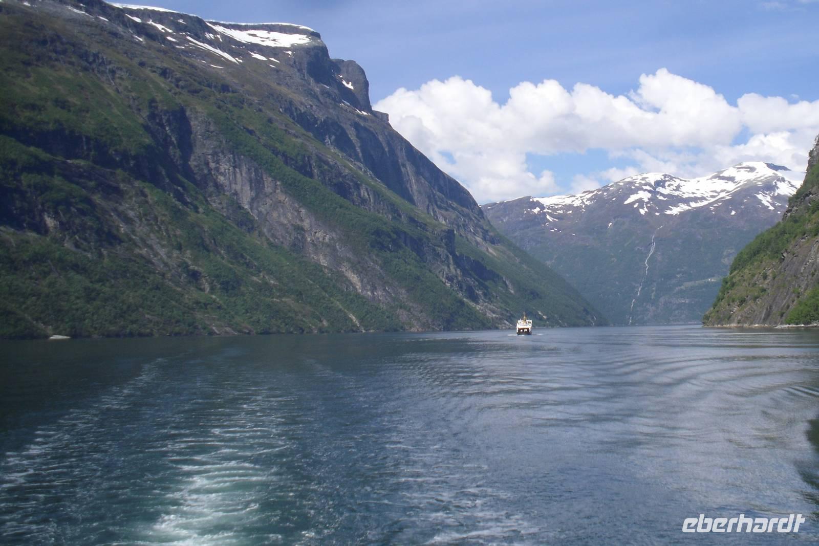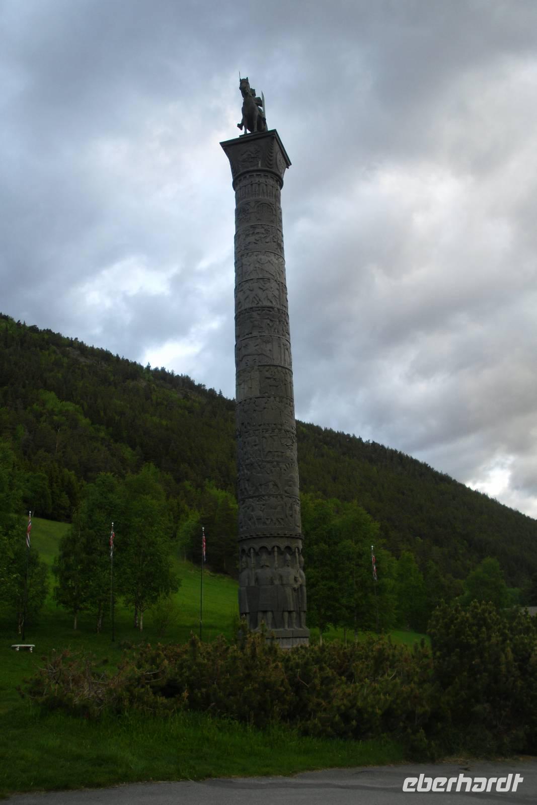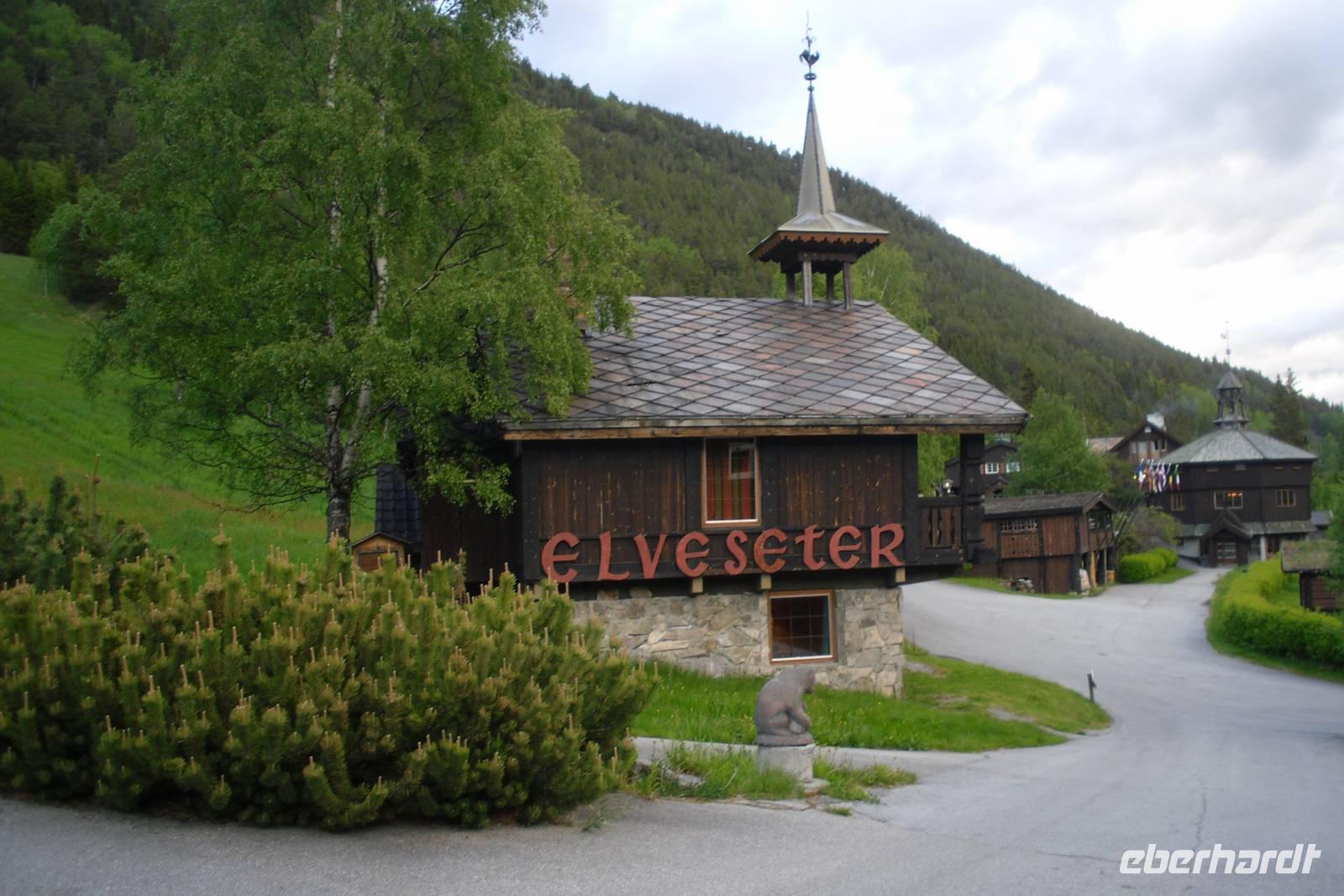 Heute starteten wir wieder gegen 8 Uhr, denn wir hatten volles Programm! Leider mussten wir von der schönen Stadt Ålesund Abschied nehmen, es ging nach Magerholm und von dort mit der Fähre über den Storfjord nach Ørsneset. Unser nächstes Ziel war Hellesylt, von wo wir zu einer etwa einstündigen Schifffahrt auf dem Geirangerfjord aufbrachen. Zuvor gab es noch ein kleines "Sektfrühstück" oberhalb des Sunnylvsfjordes - na dann "Prost" oder wie man hier sagt "Skål!"! Der Geirangerfjord ist etwa 16 Kilometer lang und das Aushängeschild des norwegischen Tourismus schlechthin. Vom Schiff aus sahen wir die berühmten Wasserfälle „Die Sieben Schwestern", „Brautschleier" und „Freier" - diese Fahrt war einzigartig, denn auch das Wetter spielte voll mit! Von Geiranger aus ging es mit dem Bus hinauf zum Dalsnibba, dem berühmten knapp 1.500 Meter hohen Aussichtsberg oberhalb des Geirangerfjordes. Wir hatten grandioses Wetter, schon die Auffahrt war lohnenswert und mit herrlichen Panoramablicken versehen. Oben angekommen, genossen wir die spektakulären Ausblicke auf die schroffen Berge rund um den Fjord! Anschließend ging es hinunter ins Ottatal und weiter nach Lom. Hier besichtigten wir am späten Nachmittag eine der bedeutendsten noch existierenden Stabkirchen Norwegens. Wer ist nicht fasziniert, wenn er vor einer alten, völlig aus Holz gebauten Stabkirche steht, deren Giebeldächer steil übereinander geschichtet sind. Aus den Giebeln weisen oft stilisierte Drachenköpfe, die eher an Asien erinnern, in alle Himmelsrichtungen. Von den einst angeblich fast 1.000 Stabkirchen sind keine dreißig mehr erhalten. Noch Mitte des 19. Jahrhunderts fehlte den Gemeinden in Norwegen jedes Verständnis über den Wert der alten Gebäude, die in großer Zahl abgerissen wurden, zumal sie auch zu klein geworden waren. Anschließend fuhren wir nach Bøverdalen, wo wir unser Domizil für die nächste Nacht ansteuerten. Elveseter (700 m ü. d. M.) ist ein alter Erbhof, den man in ein modernes Hotel umgewandelt hat und dessen Kulturschätze aus vergangenen Zeiten pietätvoll bewahrt wurden. Er ist dank seinen von den Besitzern selbst geschaffenen Holzschnitzereien eines der originellsten Hotels in Norwegen. Seit fünf Generationen ist der Hof im Besitz der Familie Elveseter. Das ganze Anwesen ist wie eine altnorwegische Götter-Wohnstätte gestaltet, und jeder Raum trägt einen Namen aus der nordischen Mythologie. Wie bei einem alten Bauerngehöft im Gudbrandsdaler Stil sind die Häuser um einen schönen Platz gruppiert. Auf dem hiesigen Anwesen steht übrigens auch seit 1992 die 33 Meter hohe geschichtsträchtige Saga-Säule, die einen Querschnitt durch die norwegische Geschichte zeigt - beginnend mit dem ersten vereinigten Reich 872 bis zur Reichsversammlung 1814. Entworfen wurde die Säule vom Bildhauer Rasmussen bereits vor dem Zweiten Weltkrieg und sollte ursprünglich vor dem Parlament in Oslo platziert werden. Wir waren alle begeistert von dem urigen Stil dieses Hotels und die meisten genossen den Abend ganz gemütlich bei Kaffee oder Tee am knisternden Feuer des Kamins; denn einen Fernseher auf den Zimmern gab es hier nicht - warum auch?, brauchten wir auch nicht...!