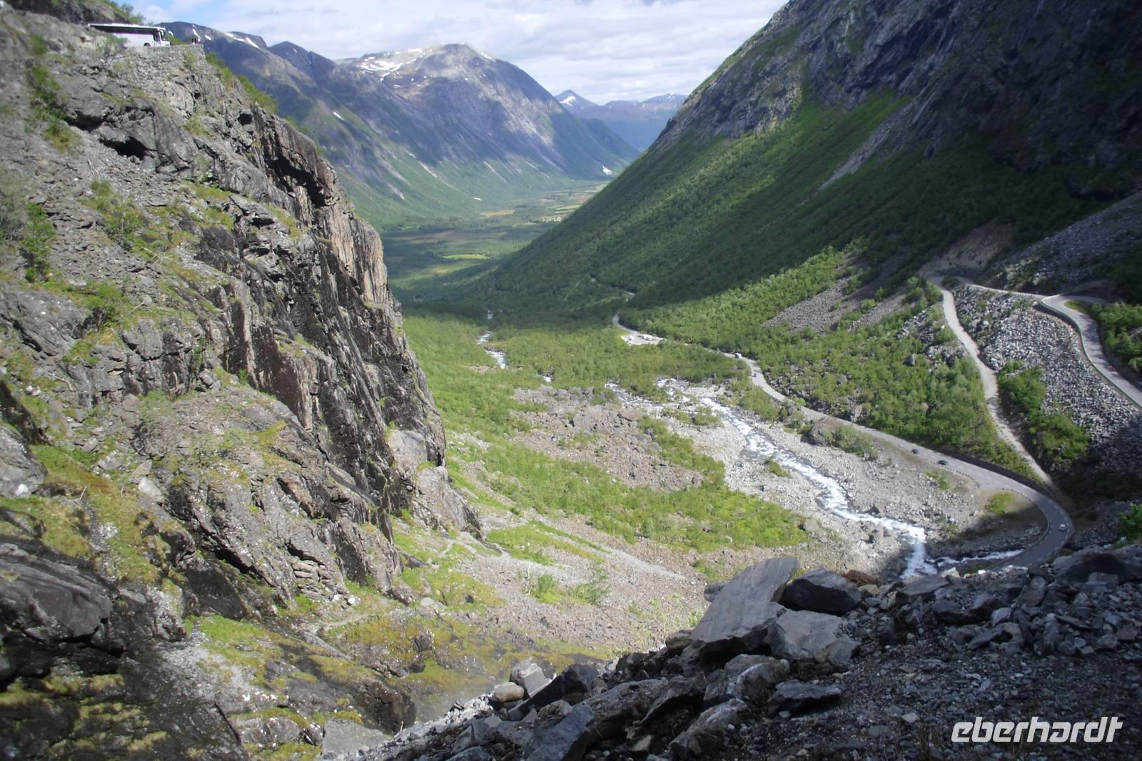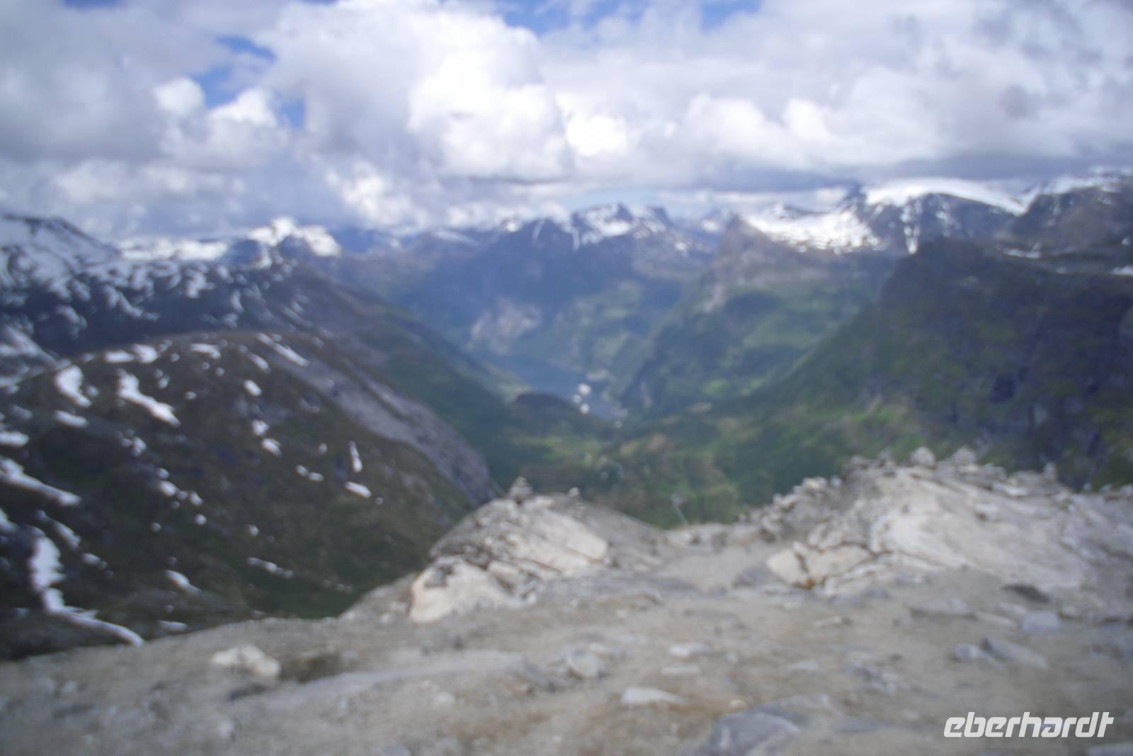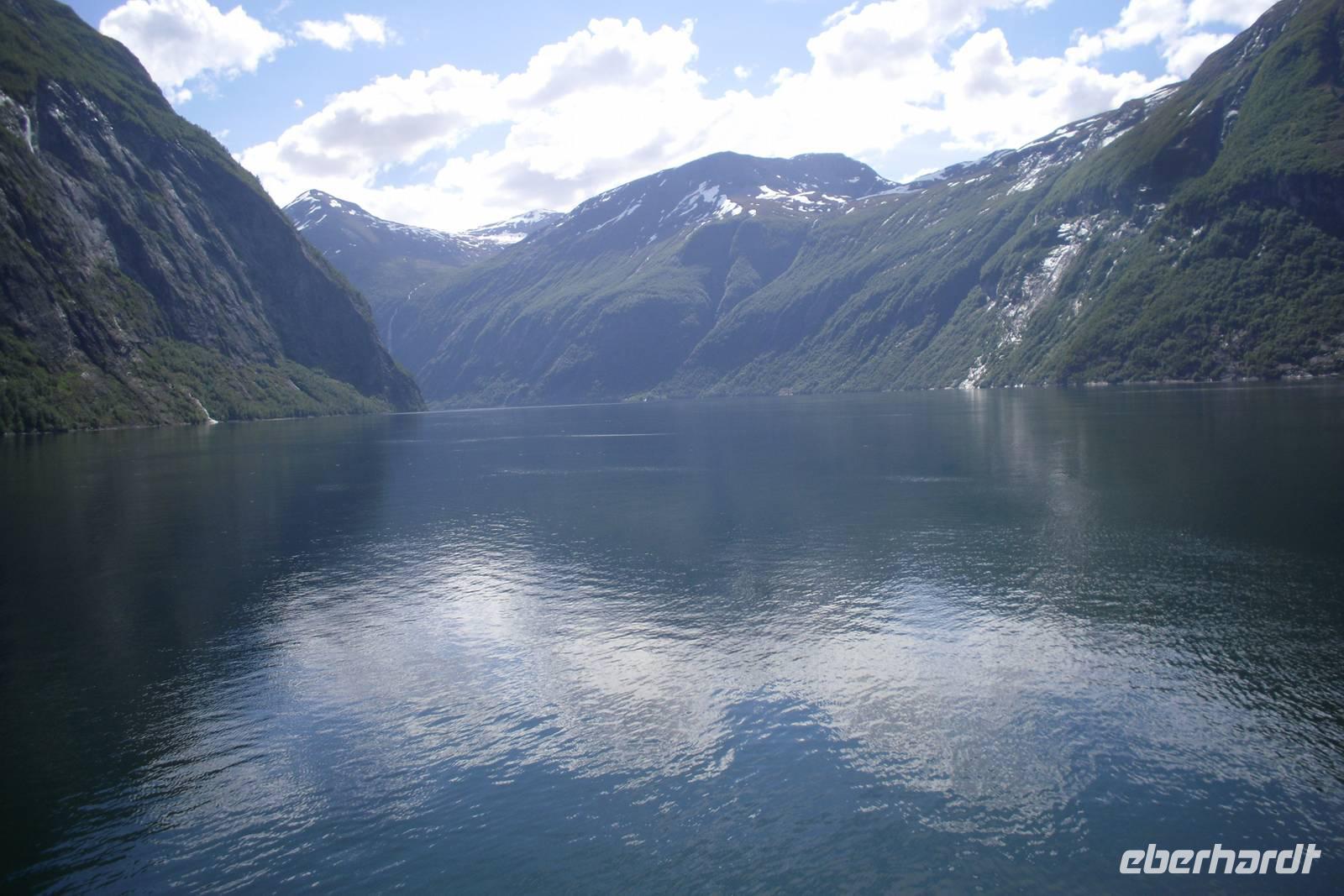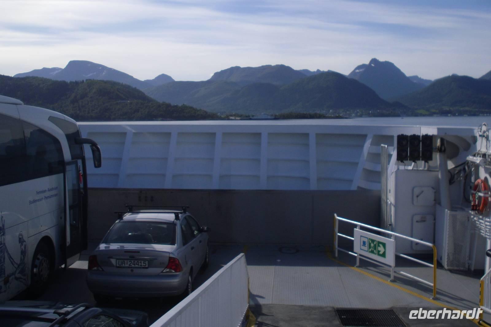 Heute starteten wir wieder gegen 8 Uhr, denn wir hatten volles Programm! Leider mussten wir von der schönen Stadt Ålesund Abschied nehmen, es ging nach Magerholm und von dort mit der Fähre über den Storfjord nach Ørsneset. Unser nächstes Ziel war Hellesylt, von wo wir zu einer etwa einstündigen Schifffahrt auf dem Geirangerfjord aufbrachen. Zuvor gab es noch ein kleines "Sektfrühstück" oberhalb des Sunnylvsfjordes - na dann "Prost" oder wie man hier sagt "Skål!"! Der Geirangerfjord ist etwa 16 Kilometer lang und das Aushängeschild des norwegischen Tourismus schlechthin. Vom Schiff aus sahen wir die berühmten Wasserfälle „Die Sieben Schwestern", „Brautschleier" und „Freier" - diese Fahrt war einzigartig, denn auch das Wetter spielte voll mit! Von Geiranger aus ging es mit dem Bus hinauf zum Dalsnibba, dem berühmten knapp 1.500 Meter hohen Aussichtsberg oberhalb des Geirangerfjordes. Wir hatten grandioses Wetter, schon die Auffahrt war lohnenswert und mit herrlichen Panoramablicken versehen. Oben angekommen, genossen wir die spektakulären Ausblicke auf die schroffen Berge rund um den Fjord! Anschließend ging es hinunter ins Ottatal und weiter nach Lom. Hier besichtigten wir am späten Nachmittag eine der bedeutendsten noch existierenden Stabkirchen Norwegens. Wer ist nicht fasziniert, wenn er vor einer alten, völlig aus Holz gebauten Stabkirche steht, deren Giebeldächer steil übereinander geschichtet sind. Aus den Giebeln weisen oft stilisierte Drachenköpfe, die eher an Asien erinnern, in alle Himmelsrichtungen. Von den einst angeblich fast 1.000 Stabkirchen sind keine dreißig mehr erhalten. Noch Mitte des 19. Jahrhunderts fehlte den Gemeinden in Norwegen jedes Verständnis über den Wert der alten Gebäude, die in großer Zahl abgerissen wurden, zumal sie auch zu klein geworden waren. Anschließend fuhren wir nach Bøverdalen, wo wir unser Domizil für die nächste Nacht ansteuerten. Elveseter (700 m ü. d. M.) ist ein alter Erbhof, den man in ein modernes Hotel umgewandelt hat und dessen Kulturschätze aus vergangenen Zeiten pietätvoll bewahrt wurden. Er ist dank seinen von den Besitzern selbst geschaffenen Holzschnitzereien eines der originellsten Hotels in Norwegen. Seit fünf Generationen ist der Hof im Besitz der Familie Elveseter. Das ganze Anwesen ist wie eine altnorwegische Götter-Wohnstätte gestaltet, und jeder Raum trägt einen Namen aus der nordischen Mythologie. Wie bei einem alten Bauerngehöft im Gudbrandsdaler Stil sind die Häuser um einen schönen Platz gruppiert. Auf dem hiesigen Anwesen steht übrigens auch seit 1992 die 33 Meter hohe geschichtsträchtige Saga-Säule, die einen Querschnitt durch die norwegische Geschichte zeigt - beginnend mit dem ersten vereinigten Reich 872 bis zur Reichsversammlung 1814. Entworfen wurde die Säule vom Bildhauer Rasmussen bereits vor dem Zweiten Weltkrieg und sollte ursprünglich vor dem Parlament in Oslo platziert werden. Wir waren alle begeistert von dem urigen Stil dieses Hotels und die meisten genossen den Abend ganz gemütlich bei Kaffee oder Tee am knisternden Feuer des Kamins; denn einen Fernseher auf den Zimmern gab es hier nicht - warum auch?, brauchten wir auch nicht...!