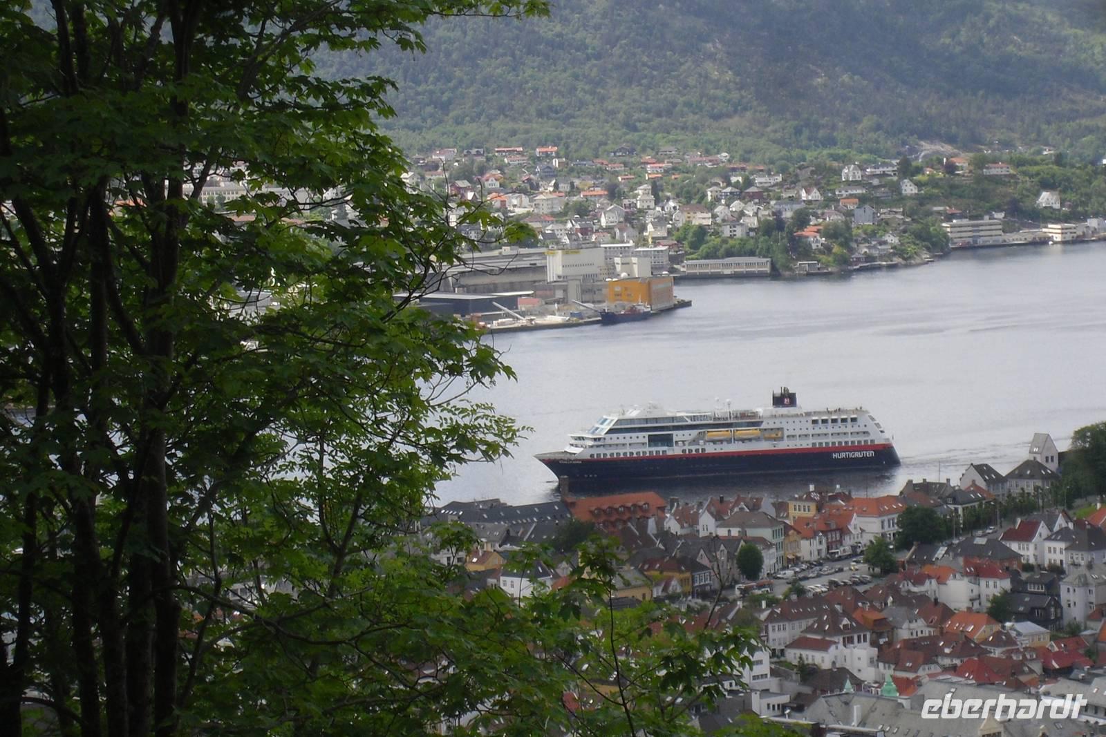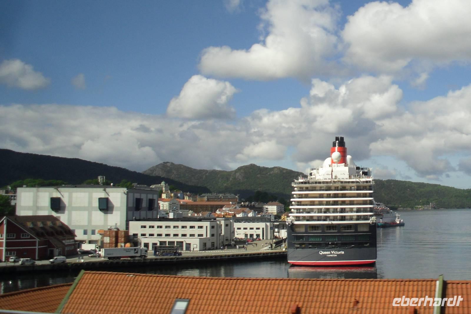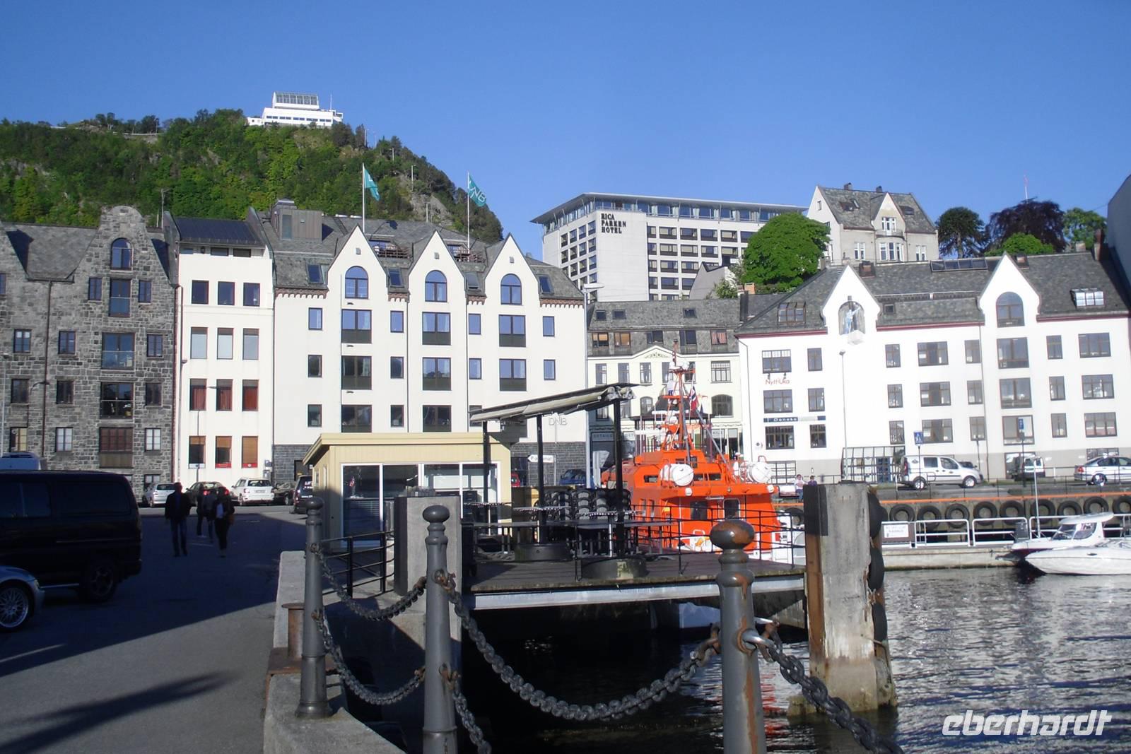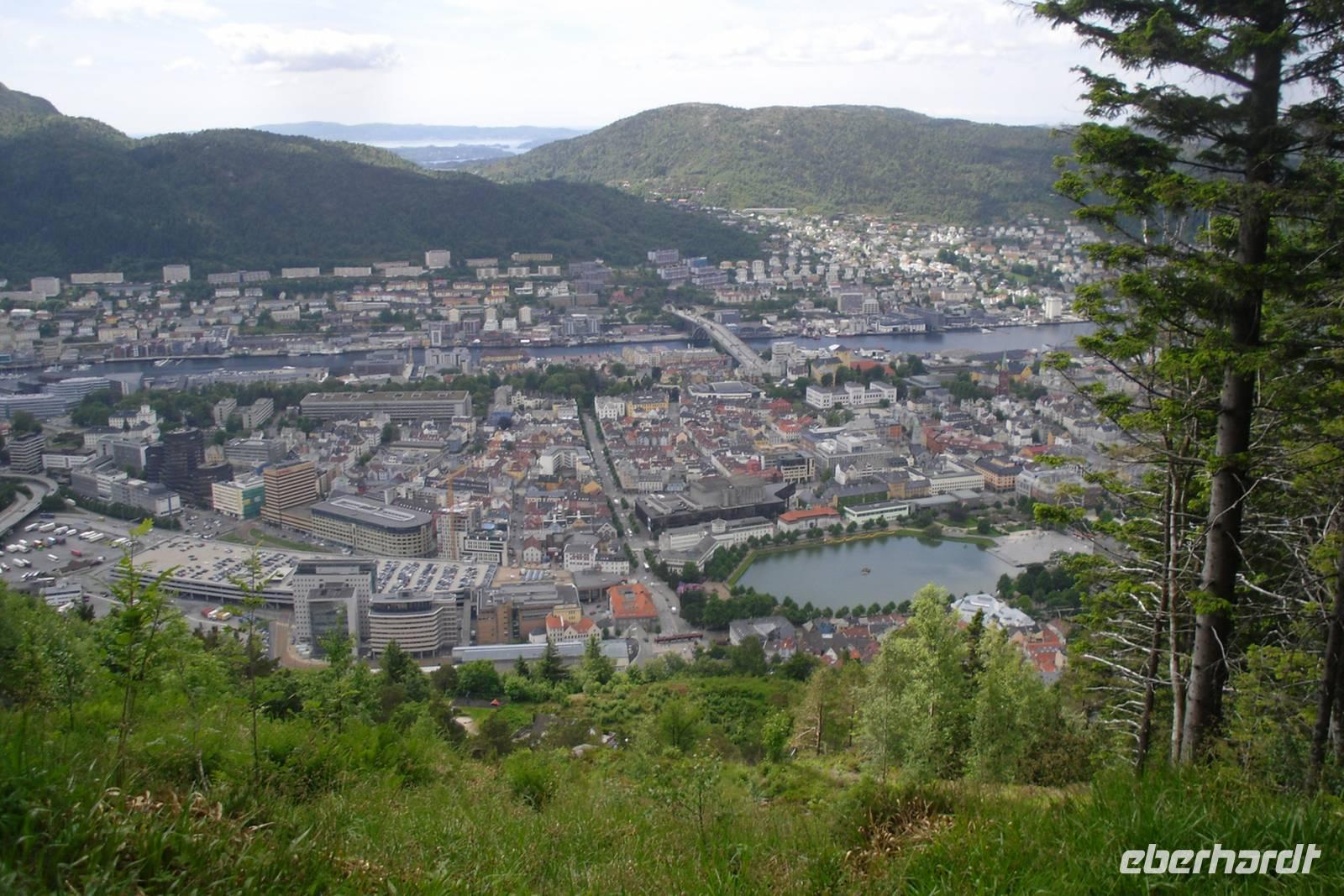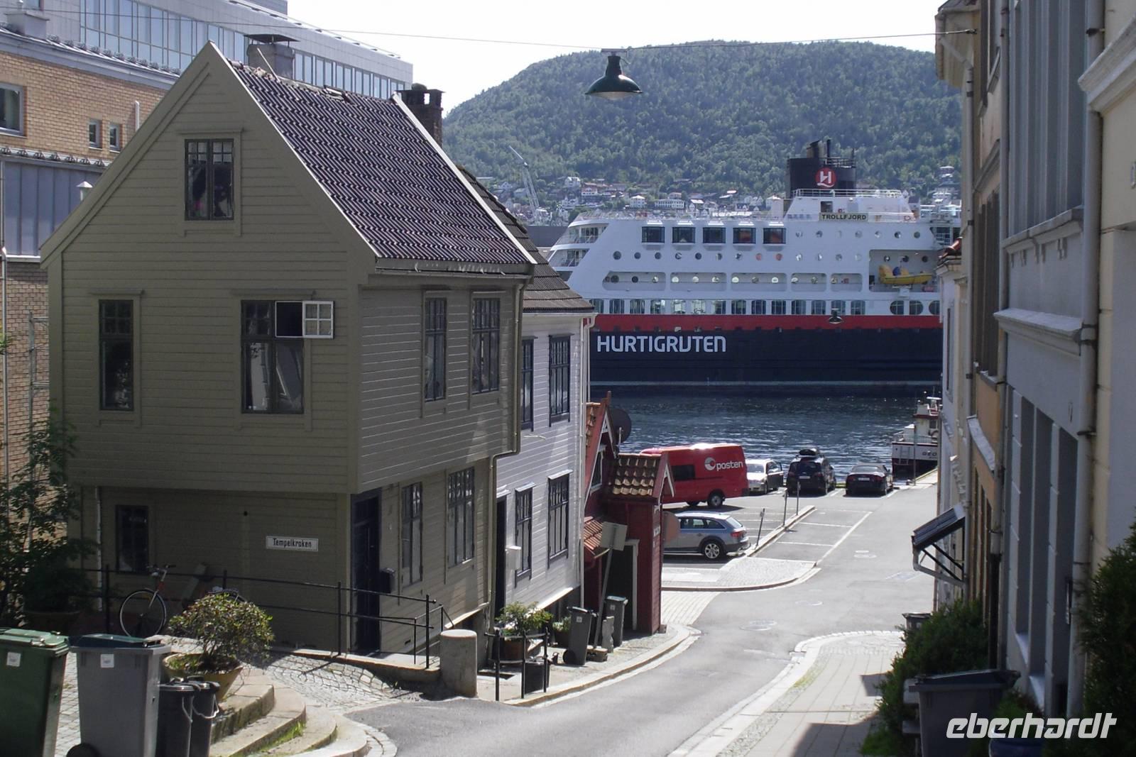 Nach einem reichhaltigen Frühstücksbuffet begannen wir mit unserer etwa 2-stündigen Stadtrundfahrt durch Bergen. Seit König Olaf Kyrre im 11. Jahrhundert mit seinen Wikingerschiffen in der Hafenbucht Vågen anlegte und Bergen dort gründete, zieht die Stadt Menschen aus aller Welt an. Viele Besucher kamen und gingen, andere ließen sich in der norwegischen Hafenstadt nieder. Viele Einheimische verließen ihre traute Umgebung und lernten während ihrer Wanderjahre andere Länder, Leute und Sitten kennen, ehe sie zurückkamen. So konnte sich Bergen zu einem Schmelztiegel verschiedener Kulturen und zu "Norwegens internationalster Stadt" entwickeln. Bergen wuchs um den Hafen herum nach und nach zu einer Stadt heran. Handel, Schifffahrt und Handwerk waren ihre Existenzgrundlage. Schon früh wurde Bergen die größte Stadt des Nordens und Norwegens erste Haupt- und Residenzstadt des Königs. Bereits im 14. Jahrhundert war die Stadt so bedeutend geworden, dass die Hanseaten auf Bryggen ein Kontor gründeten, das noch heute zu sehen ist. Nachdem wir interessante Informationen über diese Stadt erhalten hatten, konnten wir heute mal nach individuellen Bedürfnissen bummeln und etwas Freizeit genießen. Viele unserer Gäste nutzten dabei die Gelegenheit, mit der einzigen Standseilbahn Skandinaviens zum Berg Fløyen hinauf zu fahren. Vom sogenannten "Dach von Bergen" hat man eine fantastische Aussicht über die Stadt, den Schiffsverkehr, die Fjorde und nicht zuletzt die umliegenden Inseln. Eine Aussicht, die einen beeindruckenden Überblick über die Vielfalt der Stadt und der näheren Umgebung gewährt. Eine Aussicht, die den Blick auf das offene Meer, auf die 50 km nördlich gelegene Insel Fedje sowie auf die südlich gelegenen Inseln der Region Sunnhordaland erlaubt. Bergen machte übrigens heute seinem Ruf als regenreichste Großstadt keine Ehre, denn hier soll es an etwa 250 Tagen im Jahr regnen - wir durften hier einen traumhaften Sonnentag verleben!