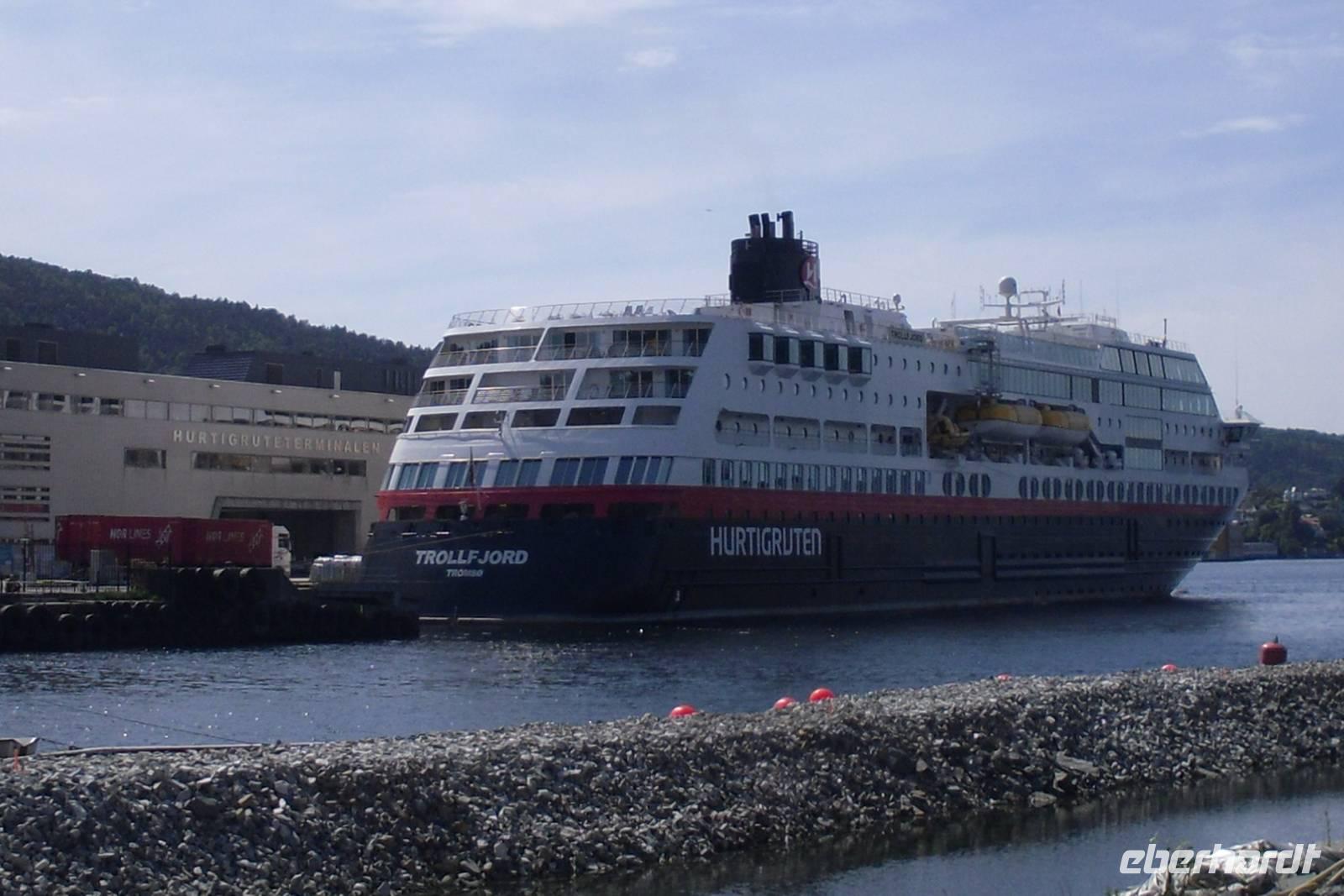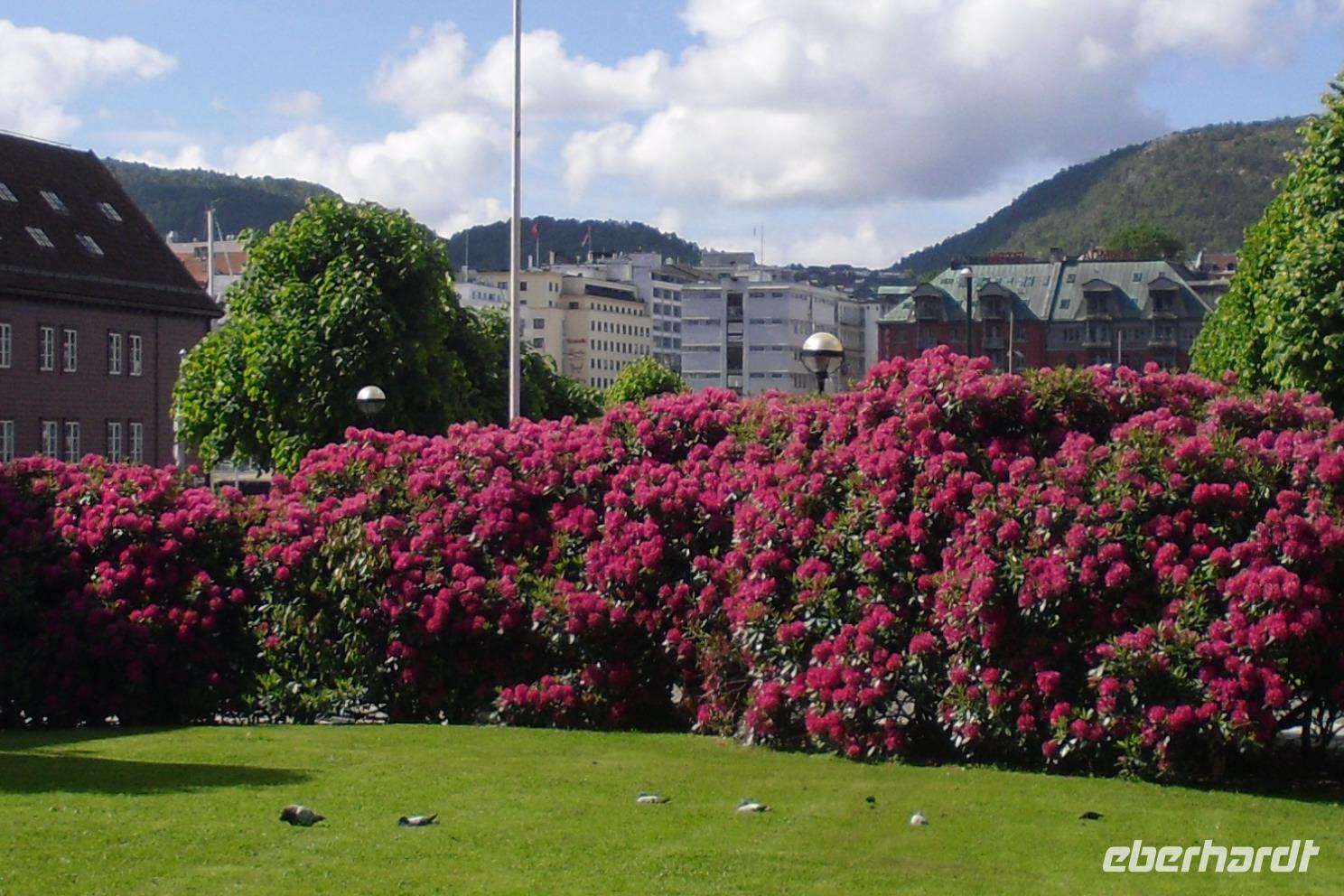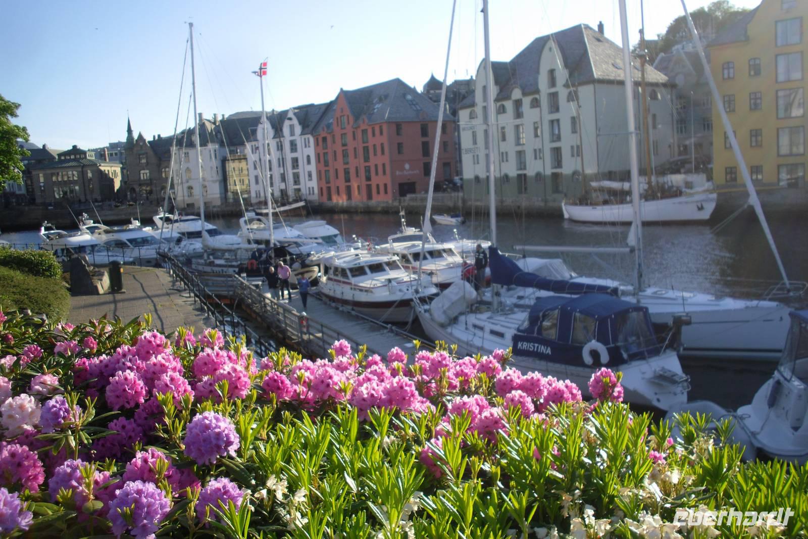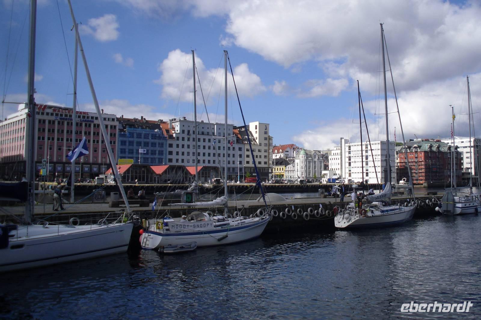 Nach einem reichhaltigen Frühstücksbuffet begannen wir mit unserer etwa 2-stündigen Stadtrundfahrt durch Bergen. Seit König Olaf Kyrre im 11. Jahrhundert mit seinen Wikingerschiffen in der Hafenbucht Vågen anlegte und Bergen dort gründete, zieht die Stadt Menschen aus aller Welt an. Viele Besucher kamen und gingen, andere ließen sich in der norwegischen Hafenstadt nieder. Viele Einheimische verließen ihre traute Umgebung und lernten während ihrer Wanderjahre andere Länder, Leute und Sitten kennen, ehe sie zurückkamen. So konnte sich Bergen zu einem Schmelztiegel verschiedener Kulturen und zu "Norwegens internationalster Stadt" entwickeln. Bergen wuchs um den Hafen herum nach und nach zu einer Stadt heran. Handel, Schifffahrt und Handwerk waren ihre Existenzgrundlage. Schon früh wurde Bergen die größte Stadt des Nordens und Norwegens erste Haupt- und Residenzstadt des Königs. Bereits im 14. Jahrhundert war die Stadt so bedeutend geworden, dass die Hanseaten auf Bryggen ein Kontor gründeten, das noch heute zu sehen ist. Nachdem wir interessante Informationen über diese Stadt erhalten hatten, konnten wir heute mal nach individuellen Bedürfnissen bummeln und etwas Freizeit genießen. Viele unserer Gäste nutzten dabei die Gelegenheit, mit der einzigen Standseilbahn Skandinaviens zum Berg Fløyen hinauf zu fahren. Vom sogenannten "Dach von Bergen" hat man eine fantastische Aussicht über die Stadt, den Schiffsverkehr, die Fjorde und nicht zuletzt die umliegenden Inseln. Eine Aussicht, die einen beeindruckenden Überblick über die Vielfalt der Stadt und der näheren Umgebung gewährt. Eine Aussicht, die den Blick auf das offene Meer, auf die 50 km nördlich gelegene Insel Fedje sowie auf die südlich gelegenen Inseln der Region Sunnhordaland erlaubt. Bergen machte übrigens heute seinem Ruf als regenreichste Großstadt keine Ehre, denn hier soll es an etwa 250 Tagen im Jahr regnen - wir durften hier einen traumhaften Sonnentag verleben!