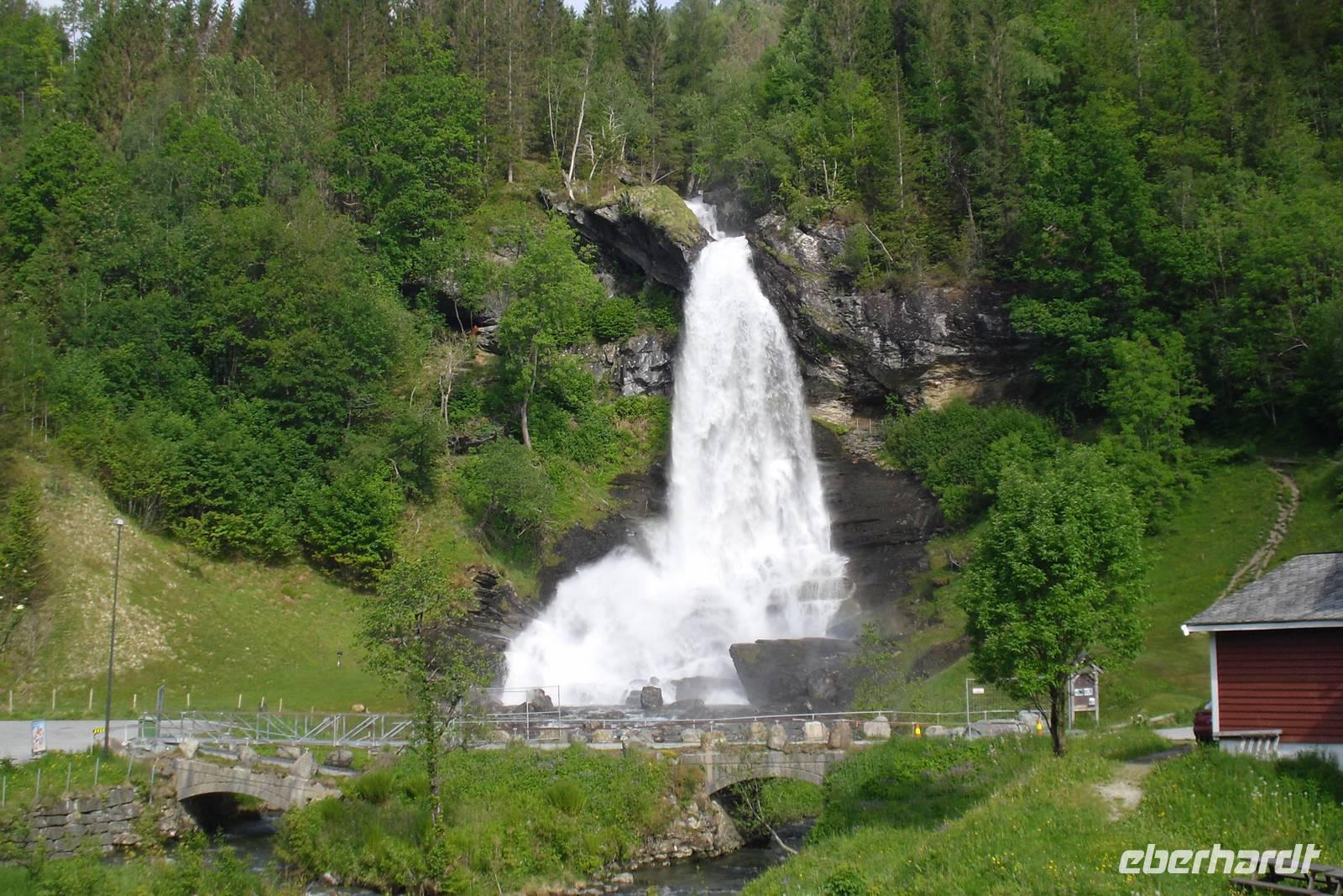 Nach einer schönen Zeit in Bergen ging es für uns auch schon wieder weiter. Eine erste kleine Pause legten wir heute am Wasserfall Steinsdalsfossen ein - hier sollte man sich die Chance nicht entgehen lassen, einmal einen Wasserfall "von hinten" zu betrachten, zwischen Felswand und Wasser führt ein schmaler Pfad entlang. Unser nächstes Ziel war der Hardangerfjord, der sich von der Küste über fast 180 Kilometer ins Land hinein erstreckt und in mehrere Fjordarme gliedert. Der König der Fjorde wird für seine weiß- und rosablühenden Obstgärten, das milde Klima, die leuchtend grünen Wiesenhänge und imponierenden Wasserfälle gepriesen. Zwischen Bruravik und Brimnes fuhren wir dann ein letztes Mal mit der Fähre über einen norwegischen Fjord und über Eidfjord gelangten wir weiter zum berühmten Wasserfall Vøringfossen. 182 Meter sind es, die die gewaltigen Wassermassen der Bjoreia in freiem Fall zurücklegen - vom Fossli-Hotel aus genossen wir herrliche Blicke auf diesen imposanten Wasserfall! Wenige Minuten später waren wir bereits in der Hardangervidda, hier erlebten wir die endlose Weite dieses faszinierenden Hochgebirgsplateaus, in der Europas größter Stamm wilder Rentiere zu Hause ist. Über Geilo, Gol und das fruchtbare Hallingdal kamen wir am Abend in unserem Hotel in Noresund an. Das Hotel liegt direkt am fischreichen Kröderensee, ungefähr 100 Kilometer von Oslo entfernt.