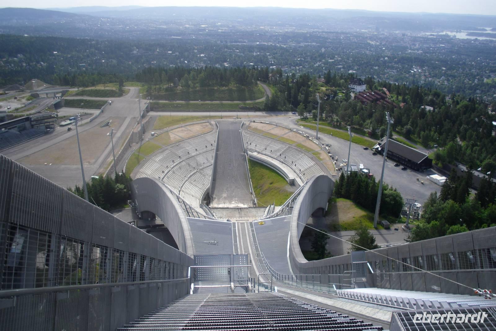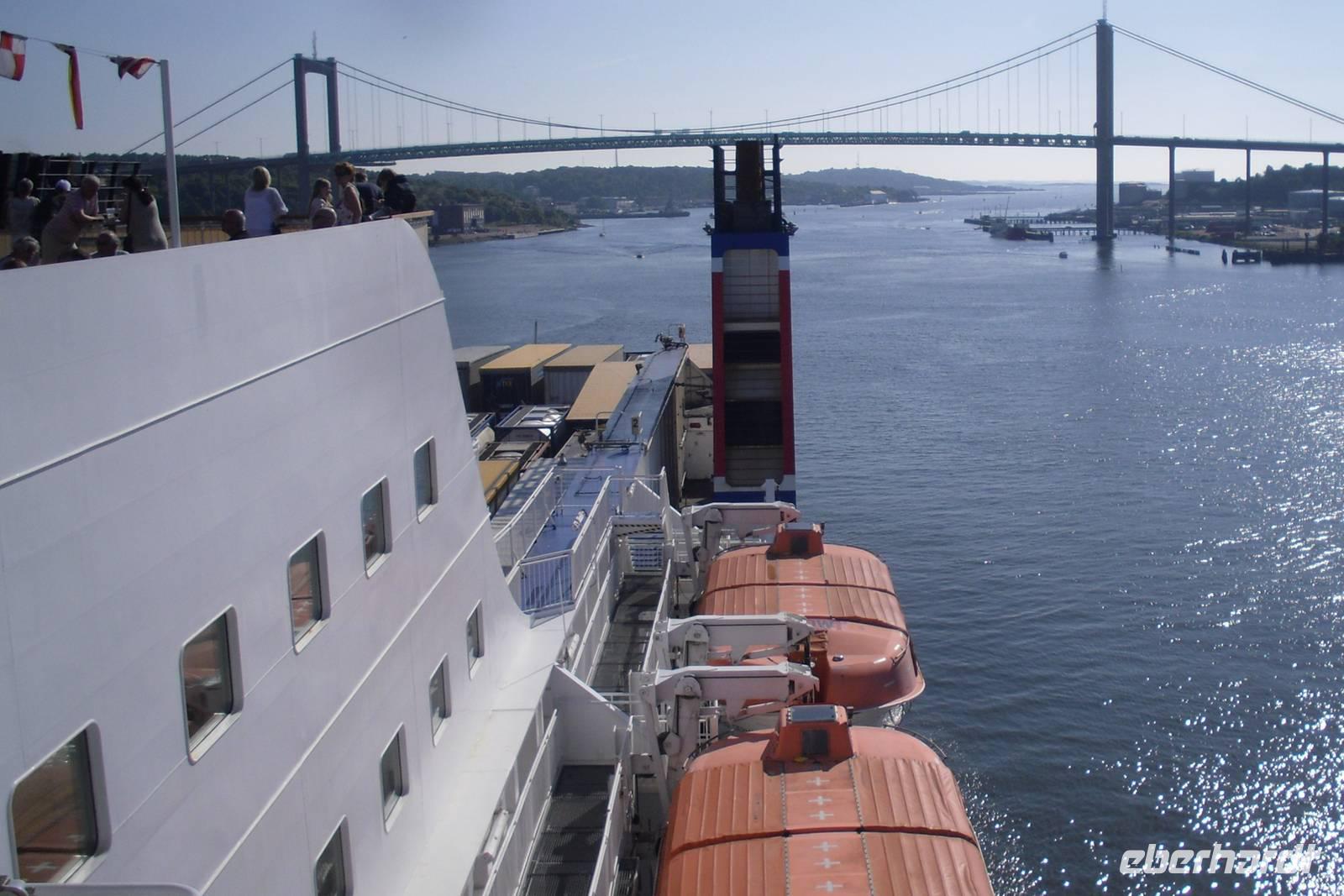 Die letzte Nacht auf norwegischem Boden lag nun hinter uns und so langsam traten wir unsere Heimreise an. Am Vormittag legten wir noch einen kurzen Stopp am Holmenkollen von Oslo ein. Hoch über der Stadt Oslo ragt die neue Holmenkollen Skisprunganlage, die modernste Sprungschanze der Welt. Ein imposantes Bauwerk aus Stahl und Beton. Es war für uns auch möglich, den Turm zu besichtigen, von dessen höchster Stelle man einen spektakulären Ausblick auf Oslo und den Oslofjord hat - einfach überwältigend und das auch noch bei Sonnenschein pur! Gegen Mittag hieß es dann Abschied nehmen von Norwegen, das südschwedische Göteborg war unser Ziel. Hier erwartete uns bereits die Fähre der "Stena Germanica", die pünktlich um 18.45 Uhr ablegte und die 437 Kilometer lange Seereise bis Kiel in Angriff nahm.