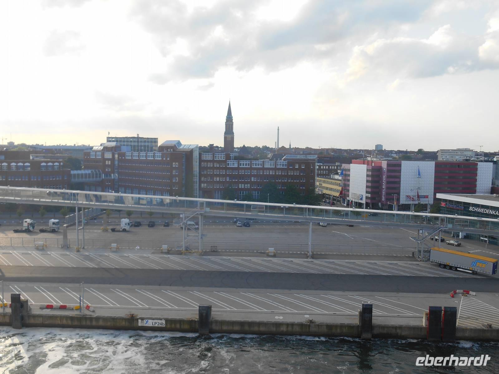 Mit einigen Gästen starteten wir bereits am Dresdner Flughafen, über Döbeln ging es dann zum Leipziger Flughafen und in der Nähe von Magdeburg war unsere Gruppe mit insgesamt 46 Gästen komplett. Die weitere Route führte uns vorbei an Braunschweig und Hannover über die A7 in Richtung Hamburg. Bedingt durch die zahlreichen Staus entlang der Strecke, erreichten wir erst am späten Nachmittag den Schwedenkai in Kiel. Gegen 17.30 Uhr betraten wir die Fähre der "Stena Germanica", welches insgesamt ca. 1.300 Personen fasst. Bereits kurz nach 18 Uhr trafen wir uns alle, um das Abendessen als Skandinavisches Buffet zu genießen - sogar die Getränke waren hier inklusive! Danach fielen die meisten von uns müde ins Bett. Einige unserer munteren Gäste erlebten allerdings gegen Mitternacht die imposante Fahrt durch den Großen Belt - unsere Fähre fuhr hier schließlich durch eine 18 km lange Brücke, die Ost- und Westdänemark miteinander verbindet; das wach bleiben lohnte sich also!