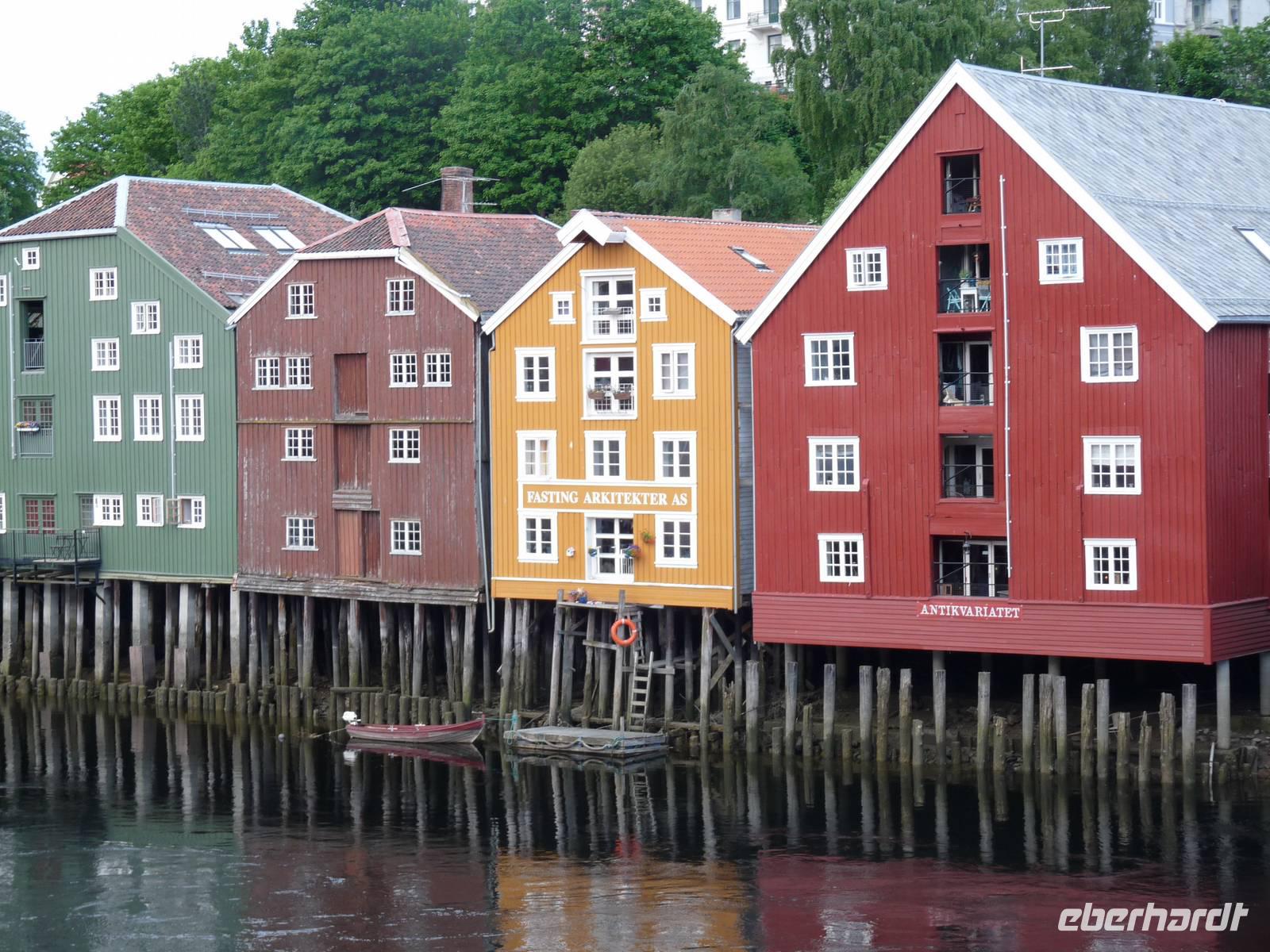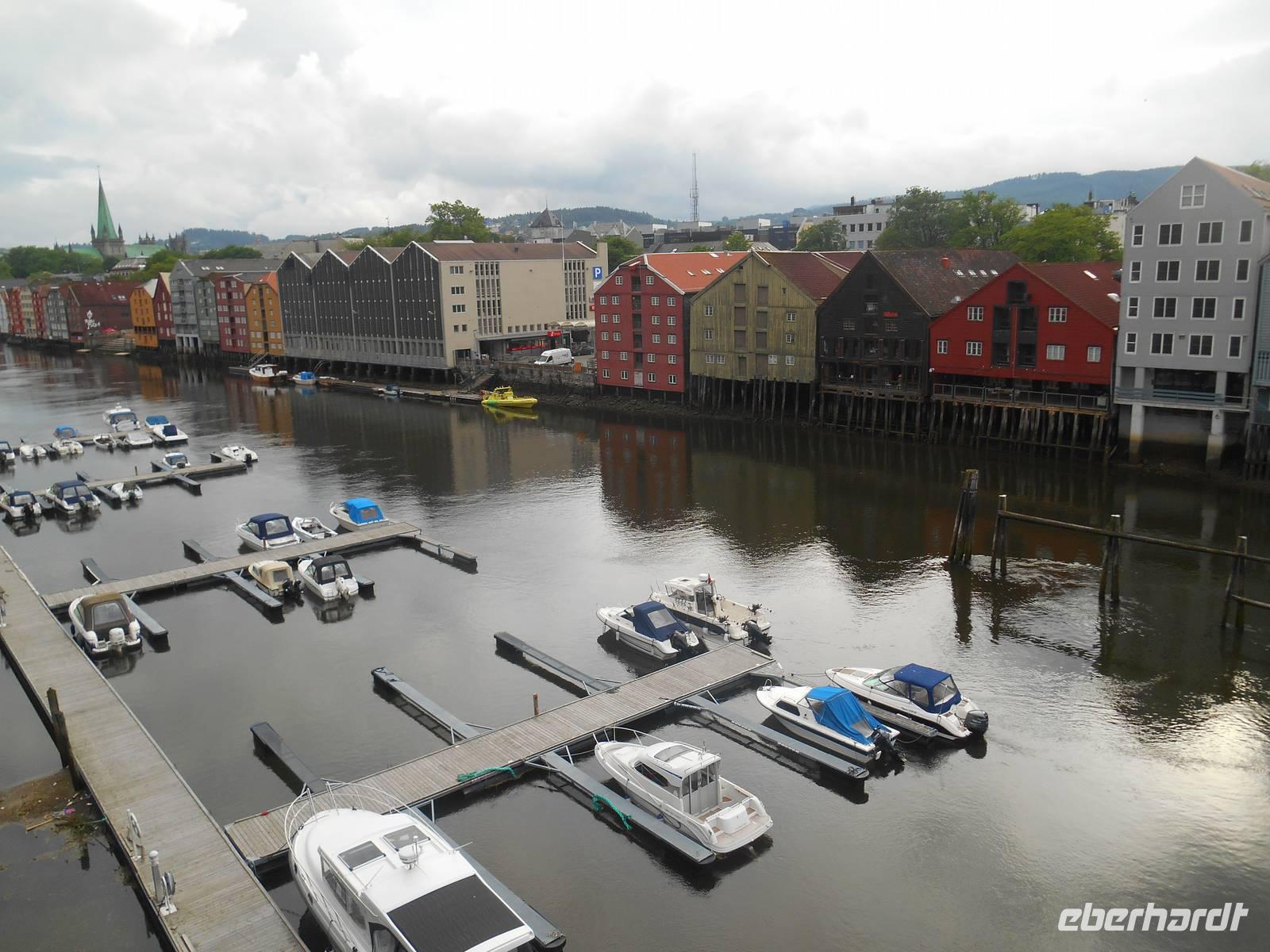 Am Morgen ging es weiter vorbei am Mjøsa-See, dem mit einer Fläche von 362 Quadratkilometern und einer Länge von 117 Kilometern größten See Norwegens, nach Lillehammer. Das Wetter war leider etwas regnerisch, aber als wir an den Schanzenanlagen von Lillehammer ankamen, war es zumindest trocken. Das nutzten einige Gäste unserer Gruppe, um mit dem Sessellift zum Schanzenturm hinauf zu fahren. Die Stadt war 1994 Austragungsort der Olympischen Winterspiele und dafür wurden damals zahlreiche neue Sportanlagen errichtet. Unser nächstes Ziel war das Freilichtmuseum Maihaugen. Dort erlebten wir lebendige Geschichte, hier findet man Häuser aus dem Dorf und aus der Stadt vom Mittelalter bis zum heutigen Tag. Im Dorf selbst kann man mit den Bewohnern an der täglichen Arbeit in den 1890er Jahren teilnehmen - ein tolles Erlebnis! Gegen Mittag fuhren wir bereits weiter, denn schließlich lag noch ein weiter Weg bis Trondheim vor uns! Wir erlebten nun eine landschaftlich beschauliche Fahrt durch das Gudbrandsdal, das sogenannte "Tal der Täler", das vom Fluss Lågen bestimmt wird. In Dombås legten wir einen Stopp ein, bevor sich die Landschaft nunmehr vollständig veränderte - jetzt ging es nämlich weiter über das Dovrefjell! Das Dovrefjell gilt als eines der unberührtesten Gebiete Norwegens. Der heutige Nationalpark besteht aus zwei Teilen, die durch das tiefe Tal der Driva getrennt werden. Entlang des Tales verläuft die E6, unsere Hauptverkehrsachse zwischen Nord- und Südnorwegen. Früher verlief hier bereits der alte Königsweg, auf dem die norwegischen Könige von Oslo zur Krönung nach Trondheim reisten, und dem auch viele Pilger folgten. Teile des alten Königsweges sind heute restauriert und für Wanderer erschlossen. Am Abend erreichten wir Trondheim, die drittgrößte Stadt Norwegens. Unser zentral gelegenes Hotel im Stadtteil Bakklandet war für viele unserer Gäste Anstoß genug, einen abendlichen Bummel durch die Stadt zu unternehmen. Manch einer genoss auch einfach nur das Flair um unser Hotel herum, das für seine kleinen Holzhäuser bekannt ist, die heute Cafés, Werkstätten und Boutiquen beherbergen.