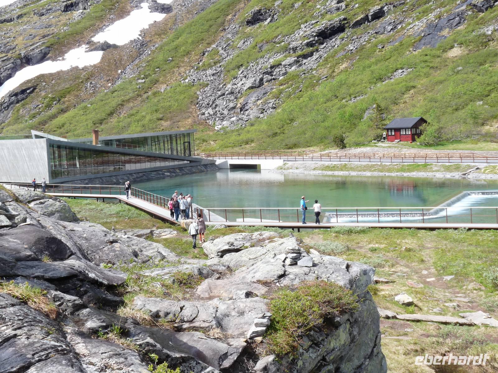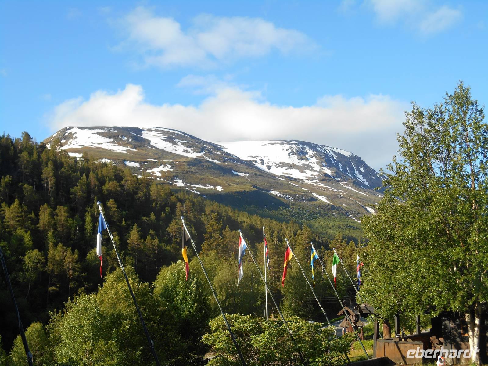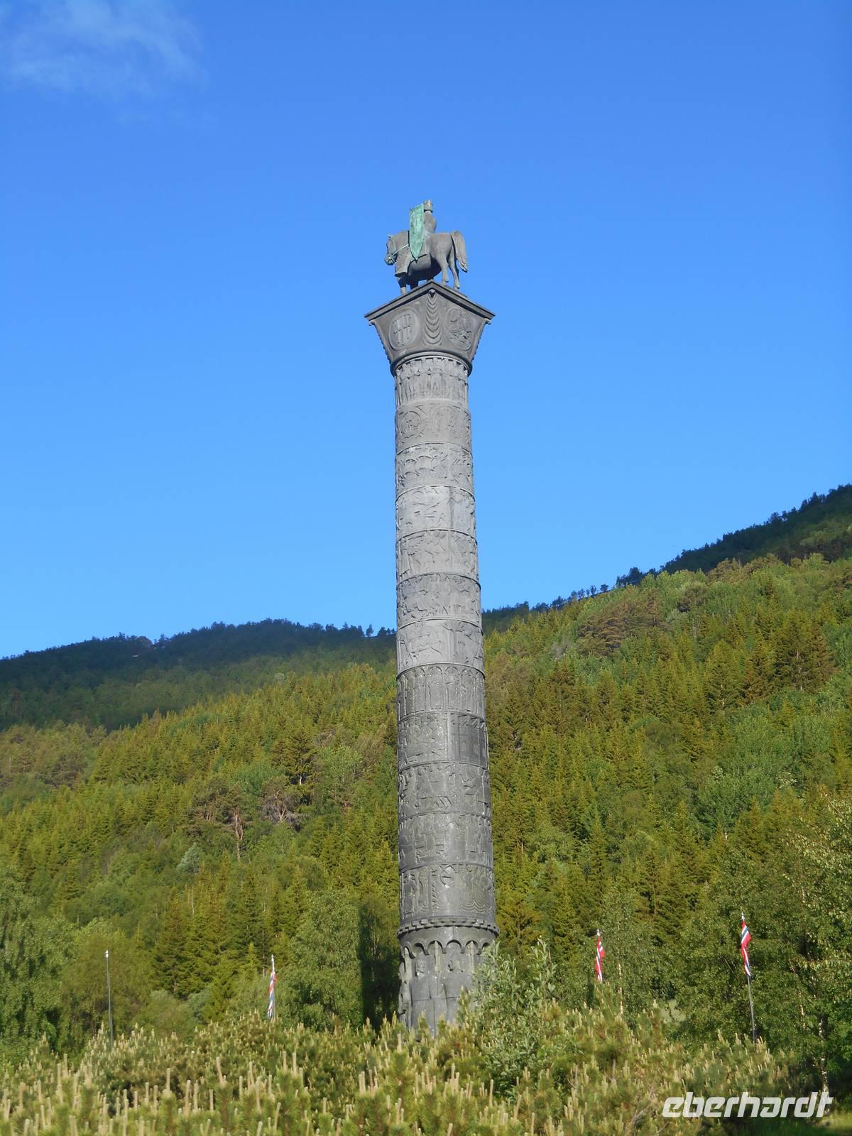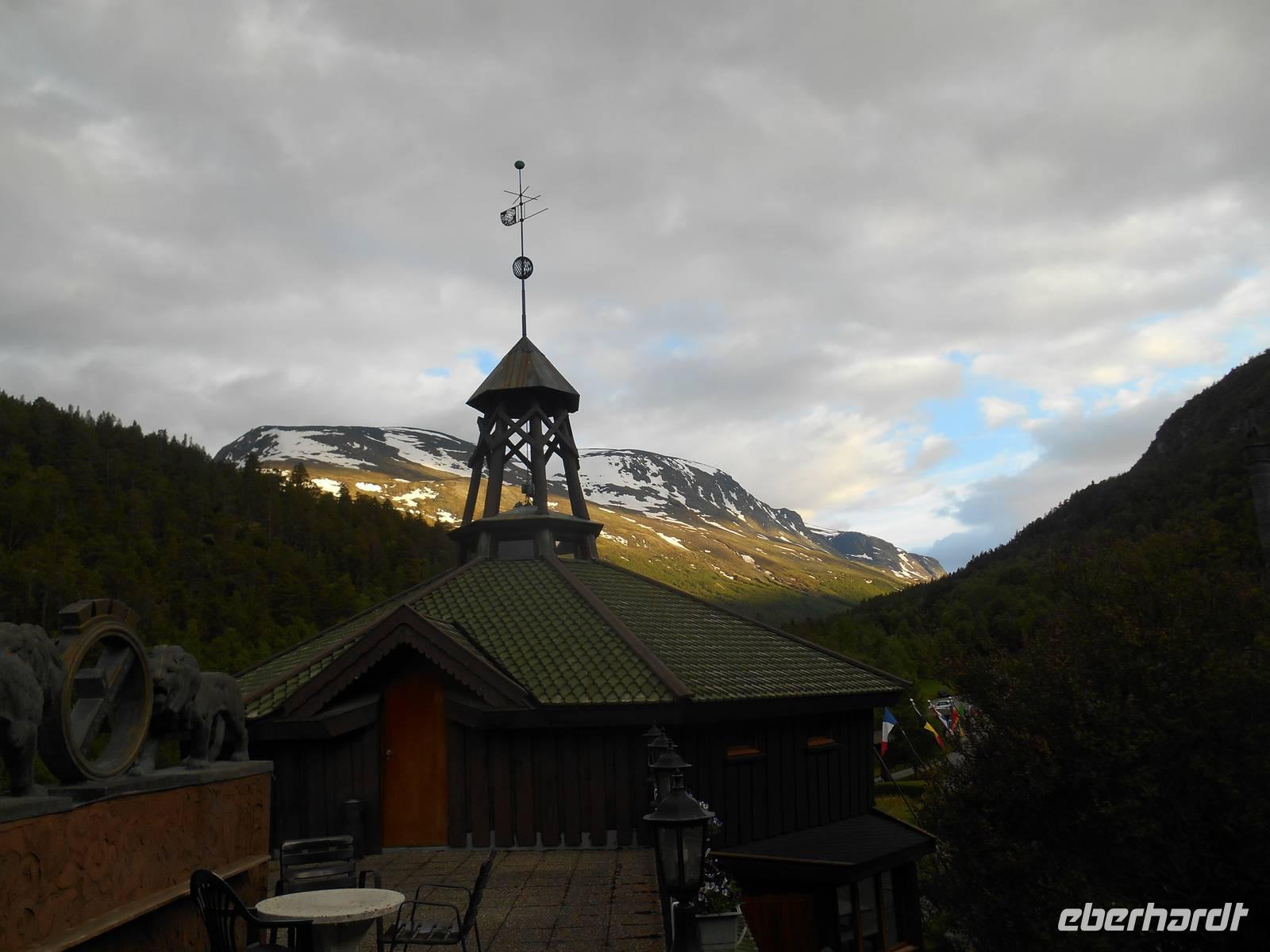 Heute starteten wir wieder gegen 8 Uhr, denn wir hatten volles Programm! Leider mussten wir von der schönen Stadt Ålesund Abschied nehmen, es ging nach Magerholm und von dort mit der Fähre über den Storfjord nach Ørsneset. Unser nächstes Ziel war Hellesylt, von wo wir zu einer etwa einstündigen Schifffahrt auf dem Geirangerfjord aufbrachen. Zuvor gab es noch ein kleines "Sektfrühstück" oberhalb des Sunnylvsfjordes - na dann "Prost" oder wie man hier sagt "Skål!"! Der Geirangerfjord ist etwa 16 Kilometer lang und das Aushängeschild des norwegischen Tourismus schlechthin. Vom Schiff aus sahen wir die berühmten Wasserfälle „Die Sieben Schwestern", „Brautschleier" und „Freier" - diese Fahrt war einzigartig, denn auch das Wetter spielte mit! Von Geiranger aus fuhren wir mit unserem Bus zum Dalsnibba hinauf, dem berühmten knapp 1.500 Meter hohen Aussichtsberg oberhalb des Geirangerfjordes. Wir hatten angenehmes Wetter, schon die Auffahrt war lohnenswert und mit herrlichen Panoramablicken versehen. Oben angekommen, genossen wir die spektakulären Ausblicke auf die schroffen Berge rund um den Fjord! Anschließend gelangten wir hinunter ins Ottatal und weiter nach Lom. Hier besichtigten wir am späten Nachmittag eine der bedeutendsten noch existierenden Stabkirchen Norwegens. Wer ist nicht fasziniert, wenn er vor einer alten, völlig aus Holz gebauten Stabkirche steht, deren Giebeldächer steil übereinander geschichtet sind. Aus den Giebeln weisen oft stilisierte Drachenköpfe, die eher an Asien erinnern, in alle Himmelsrichtungen. Von den einst angeblich fast 1.000 Stabkirchen sind keine dreißig mehr erhalten. Noch Mitte des 19. Jahrhunderts fehlte den Gemeinden in Norwegen jedes Verständnis über den Wert der alten Gebäude, die in großer Zahl abgerissen wurden, zumal sie auch zu klein geworden waren. Anschließend fuhren wir nach Bøverdalen, wo wir unser Domizil für die nächste Nacht ansteuerten. Elveseter (700 m ü. d. M.) ist ein alter Erbhof, den man in ein modernes Hotel umgewandelt hat und dessen Kulturschätze aus vergangenen Zeiten pietätvoll bewahrt wurden. Er ist dank seinen von den Besitzern selbst geschaffenen Holzschnitzereien eines der originellsten Hotels in Norwegen. Seit fünf Generationen ist der Hof im Besitz der Familie Elveseter. Das ganze Anwesen ist wie eine altnorwegische Götter-Wohnstätte gestaltet, und jeder Raum trägt einen Namen aus der nordischen Mythologie. Wie bei einem alten Bauerngehöft im Gudbrandsdaler Stil sind die Häuser um einen schönen Platz gruppiert. Auf dem hiesigen Anwesen steht übrigens auch seit 1992 die 33 Meter hohe geschichtsträchtige Saga-Säule, die einen Querschnitt durch die norwegische Geschichte zeigt - beginnend mit dem ersten vereinigten Reich 872 bis zur Reichsversammlung 1814. Entworfen wurde die Säule vom Bildhauer Rasmussen bereits vor dem Zweiten Weltkrieg und sollte ursprünglich vor dem Parlament in Oslo platziert werden. Wir waren alle begeistert von dem urigen Stil dieses Hotels und die meisten genossen den Abend ganz gemütlich bei Kaffee oder Tee am knisternden Feuer des Kamins; denn einen Fernseher auf den Zimmern gab es hier nicht - warum auch?, brauchten wir auch nicht...!